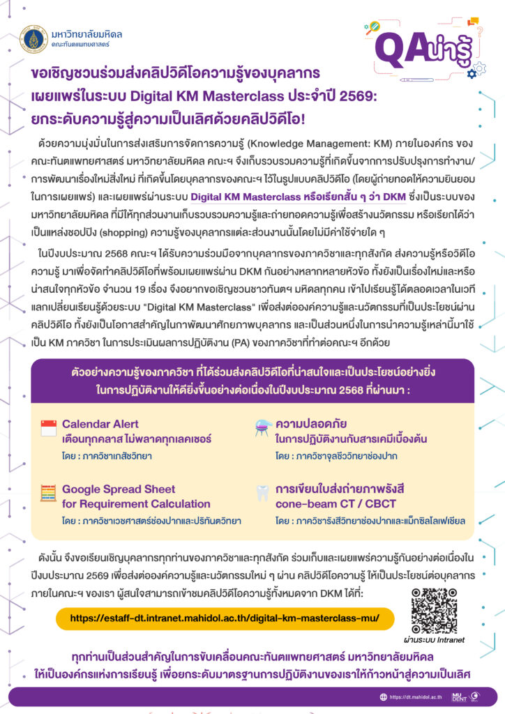 ช่องทางการรับชม บันทึกการประชุมวิชาการสัญจร ทันตฯ มหิดล ผ่านระบบ DT MOODLE