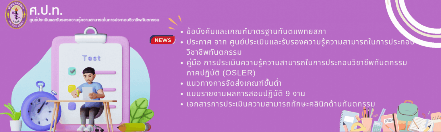 ประกาศ จาก ศูนย์ประเมินและรับรองความรู้ความสามารถในการประกอบวิชาชีพทันตกรรม