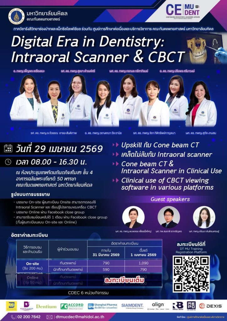 ขอเชิญร่วมรับฟัง แลกเปลี่ยนประสบการณ์ เรียนรู้โปรแกรมของเครื่อง CBCT และทดลองใช้ Intraoral Scanner