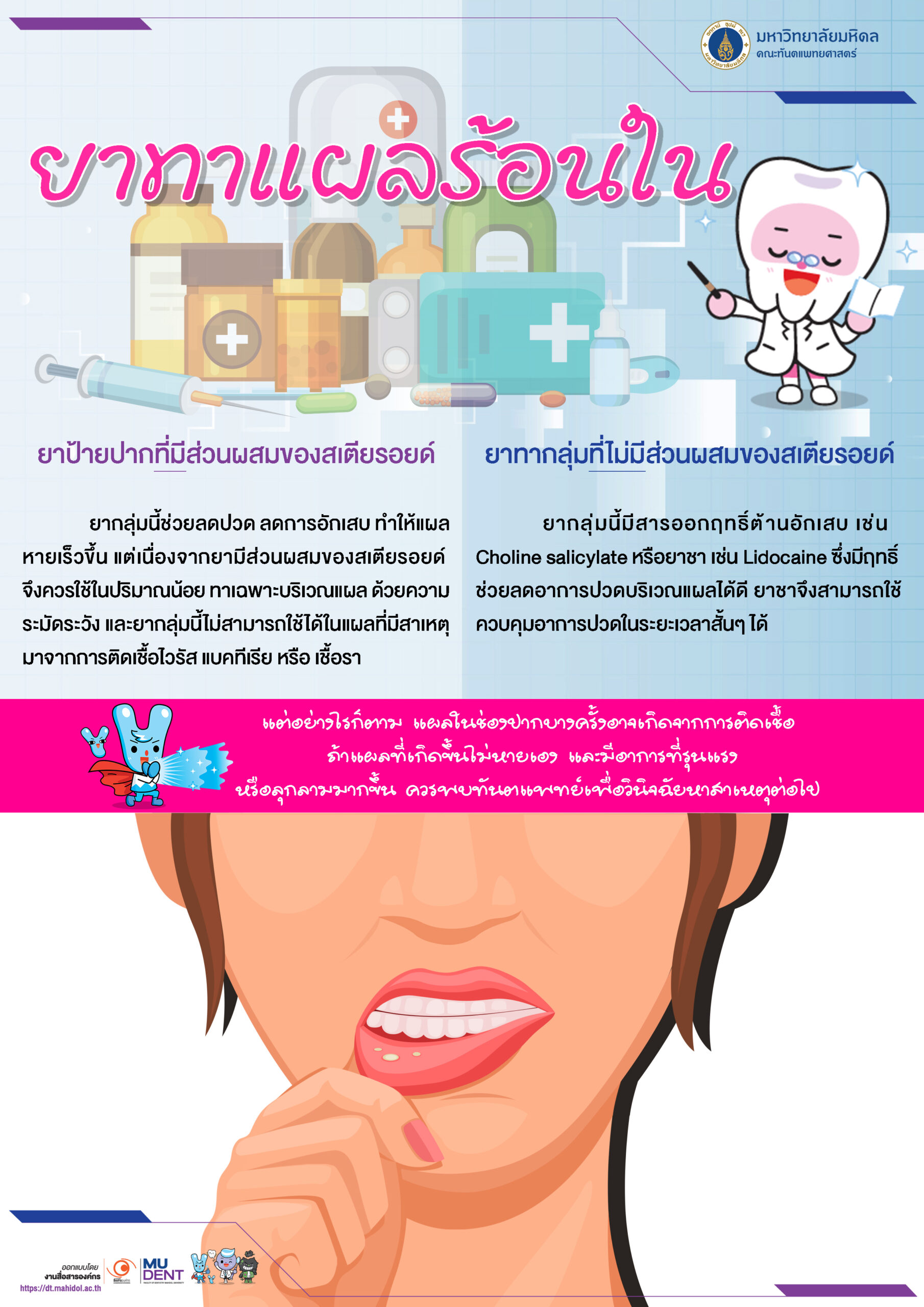แผลในปาก • ปวดฟัน • หน้าบวม — ใช้ยาอย่างไรให้ถูกต้อง? ดูแลสุขภาพช่องปากอย่างปลอดภัย รู้ก่อน ใช้ยาเป็น ยิ่งหายเร็ว