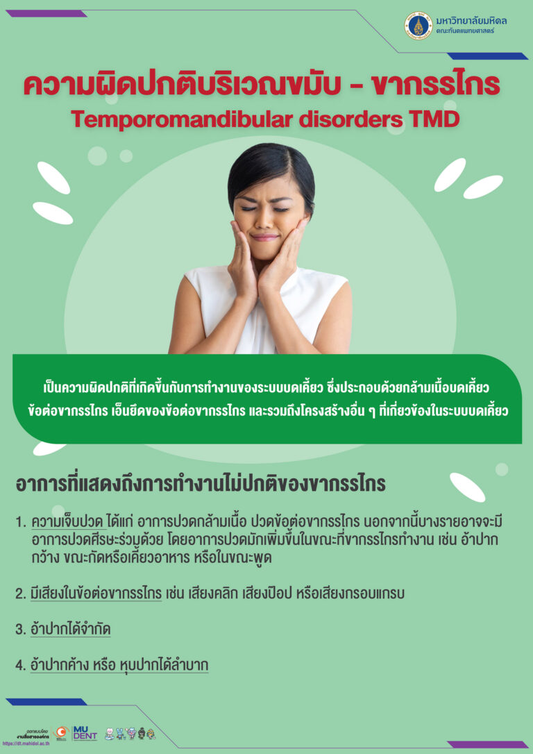 – เวลาทำฟันให้แจ้งทันตแพทย์หากมีประวัติเคยมีขากรรไกรค้าง หรือขอพักเป็นระยะเพื่อหุบปากลงหากรู้สึกเมื่อย