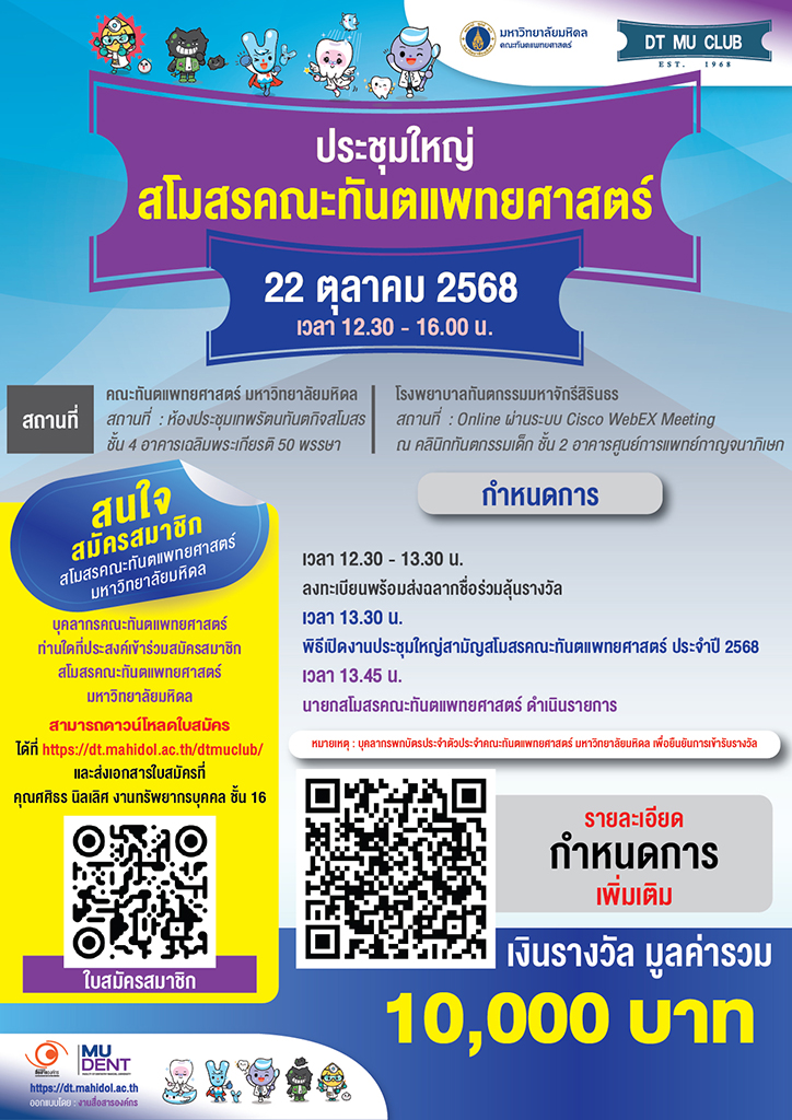 งานประชุมใหญ่สามัญสภาอาจารย์ ประจำปีงบประมาณ 2568 และกิจกรรมคณบดีพบประชาคม คณะทันตแพทยศาสตร์ มหาวิทยาลัยมหิดล