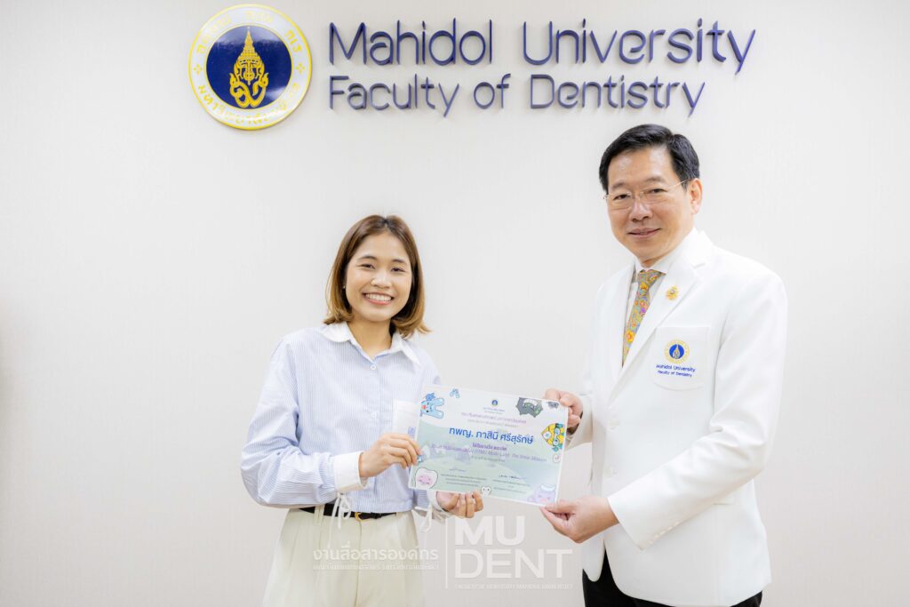 เมื่อวันที่ 1 ตุลาคม 2568 รองศาสตราจารย์ ทันตแพทย์บัณฑิต จิรจริยาเวช คณบดีคณะทันตแพทยศาสตร์ พร้อมด้วย รองศาสตราจารย์ ดร. ทันตแพทย์หญิงทิพนาถ วิชญาณรัตน์ รองคณบดีฝ่ายวิเทศสัมพันธ์และสื่อสารองค์กร และคณะกรรมการจัดการประกวด ให้เกียรติมอบเกียรติบัตรและรางวัลแก่ผู้ชนะการประกวดทั้งสองโครงการ ณ บริเวณโถง ชั้น 17 อาคารเฉลิมพระเกียรติ 50 พรรษา คณะทันตแพทยศาสตร์ มหาวิทยาลัยมหิดล