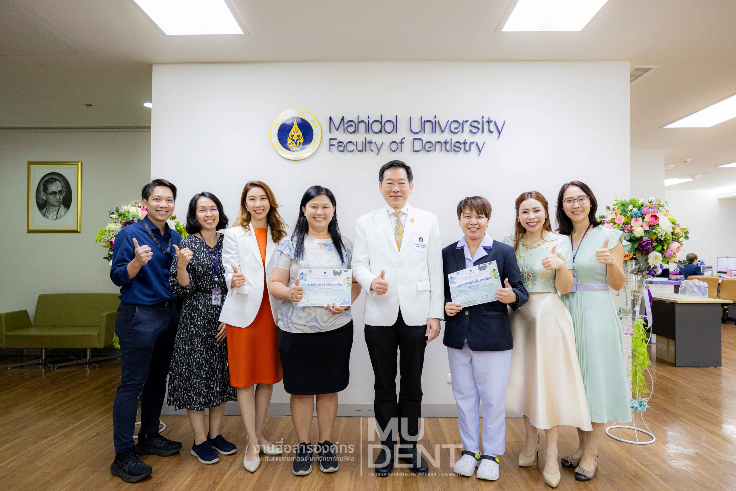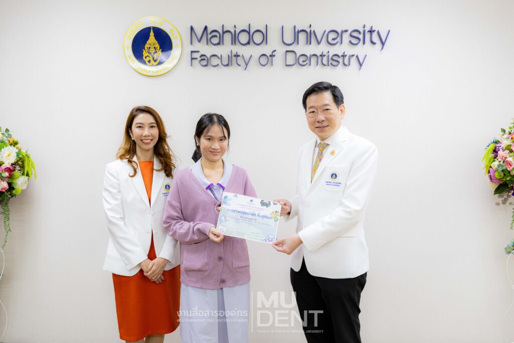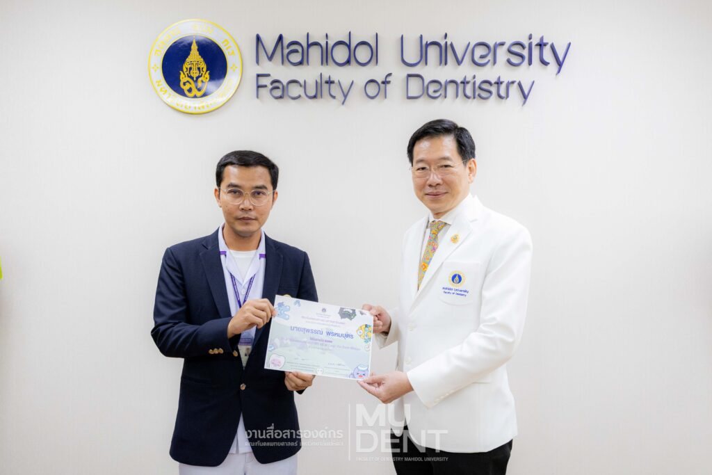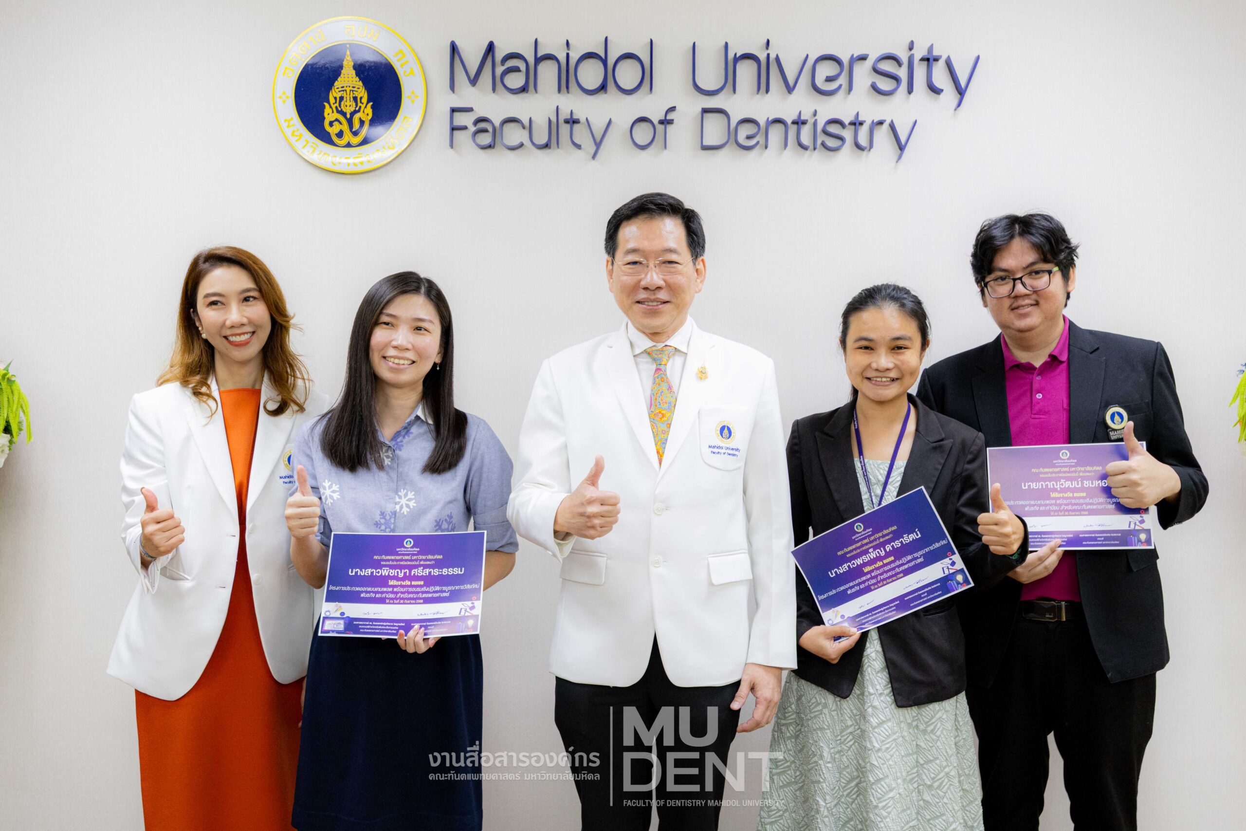 เมื่อวันที่ 1 ตุลาคม 2568 รองศาสตราจารย์ ทันตแพทย์บัณฑิต จิรจริยาเวช คณบดีคณะทันตแพทยศาสตร์ พร้อมด้วย รองศาสตราจารย์ ดร. ทันตแพทย์หญิงทิพนาถ วิชญาณรัตน์ รองคณบดีฝ่ายวิเทศสัมพันธ์และสื่อสารองค์กร และคณะกรรมการจัดการประกวด ให้เกียรติมอบเกียรติบัตรและรางวัลแก่ผู้ชนะการประกวดทั้งสองโครงการ ณ บริเวณโถง ชั้น 17 อาคารเฉลิมพระเกียรติ 50 พรรษา คณะทันตแพทยศาสตร์ มหาวิทยาลัยมหิดล