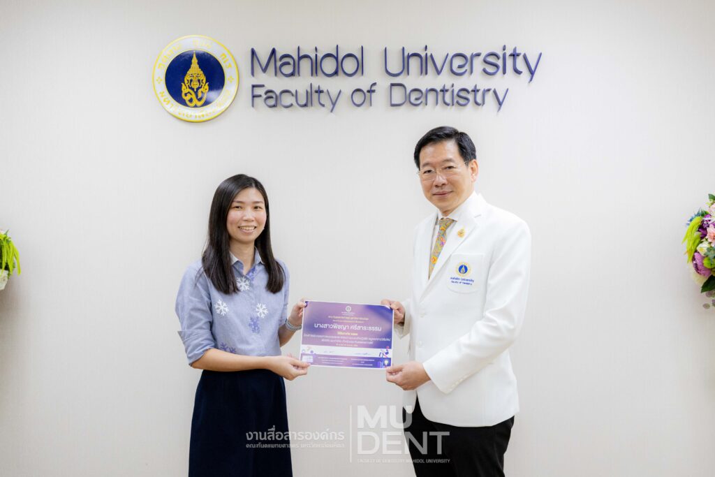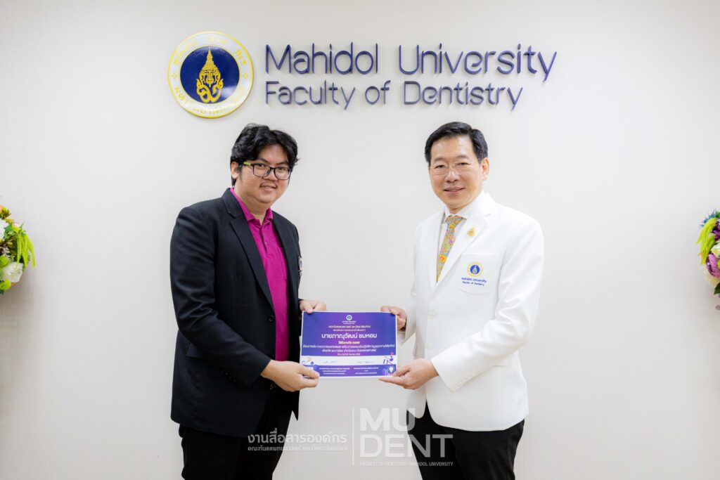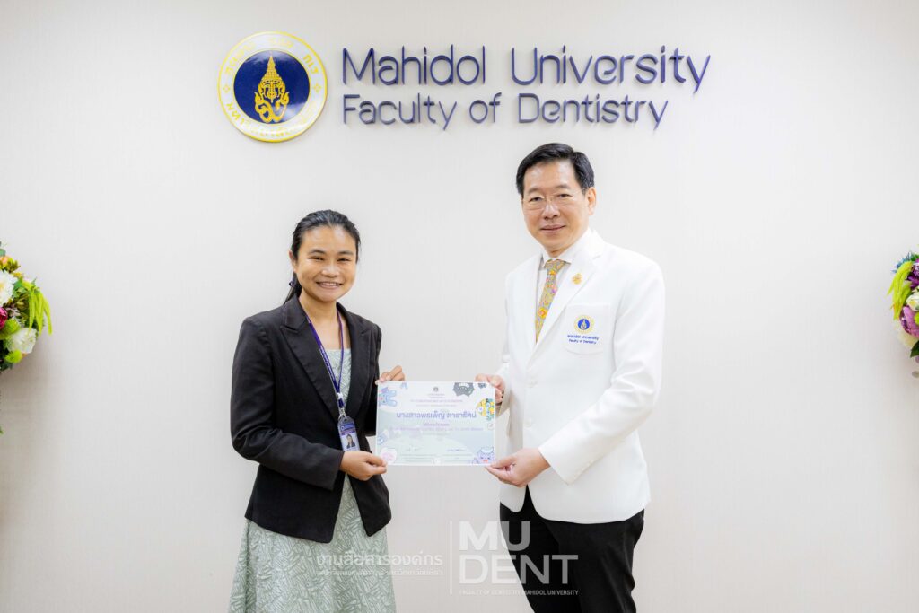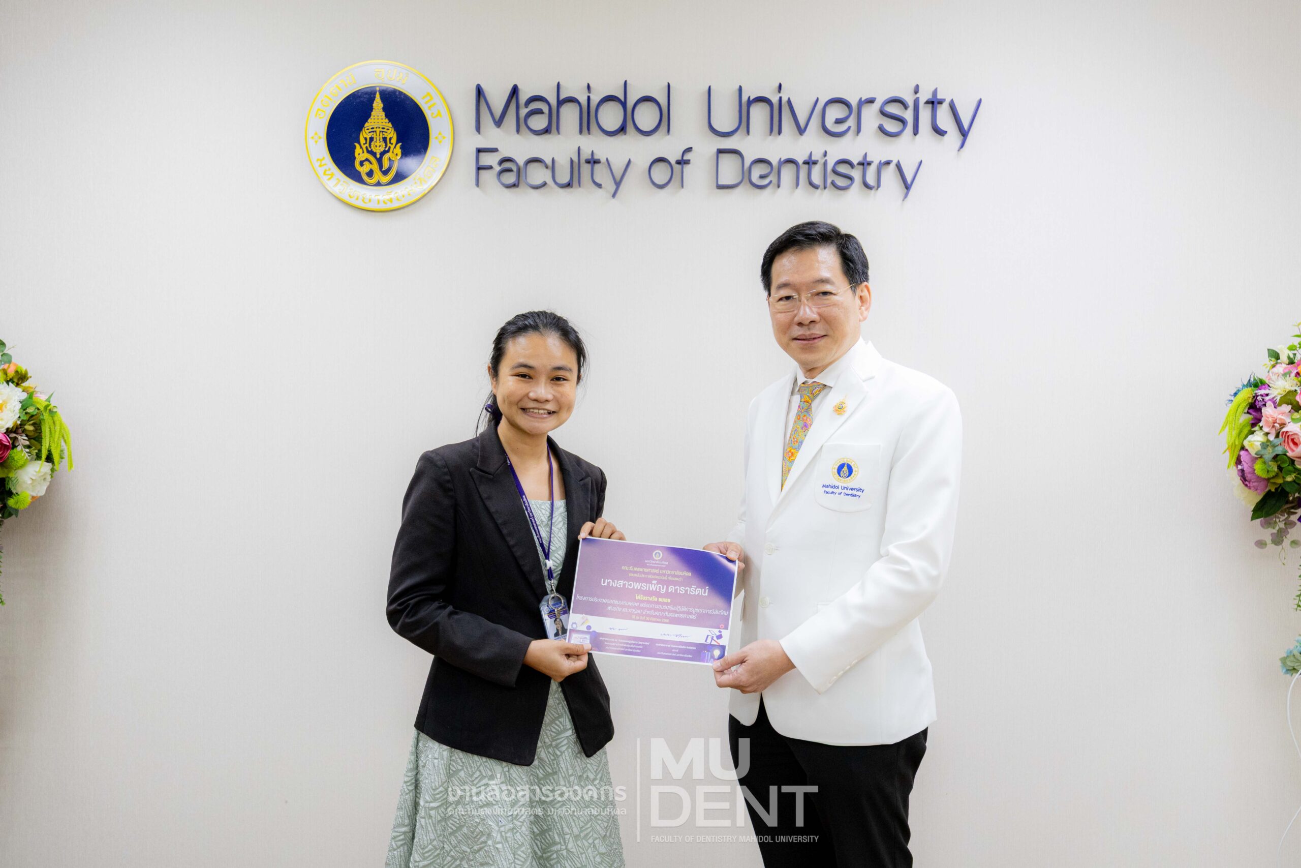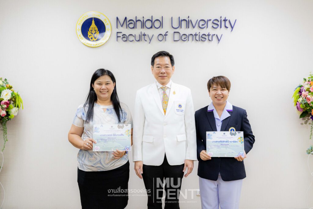 เมื่อวันที่ 1 ตุลาคม 2568 รองศาสตราจารย์ ทันตแพทย์บัณฑิต จิรจริยาเวช คณบดีคณะทันตแพทยศาสตร์ พร้อมด้วย รองศาสตราจารย์ ดร. ทันตแพทย์หญิงทิพนาถ วิชญาณรัตน์ รองคณบดีฝ่ายวิเทศสัมพันธ์และสื่อสารองค์กร และคณะกรรมการจัดการประกวด ให้เกียรติมอบเกียรติบัตรและรางวัลแก่ผู้ชนะการประกวดทั้งสองโครงการ ณ บริเวณโถง ชั้น 17 อาคารเฉลิมพระเกียรติ 50 พรรษา คณะทันตแพทยศาสตร์ มหาวิทยาลัยมหิดล
