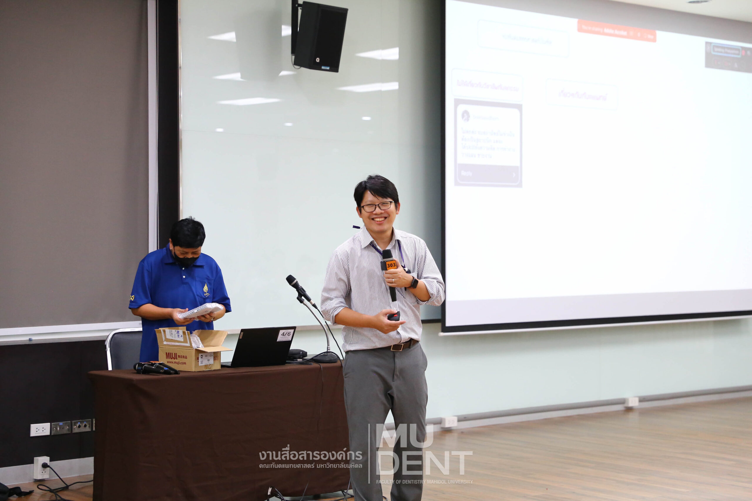 ดำเนินรายการโดย ผู้ช่วยศาสตราจารย์ ทันตแพทย์คมสัน ลาภาอุตย์ ผู้ช่วยคณบดีฝ่ายโครงการพิเศษ ณ ห้องประชุม 302 – 303 ชั้น 3 อาคารเฉลิมพระเกียรติ 50 พรรษา คณะทันตแพทยศาสตร์ มหาวิทยาลัยมหิดล