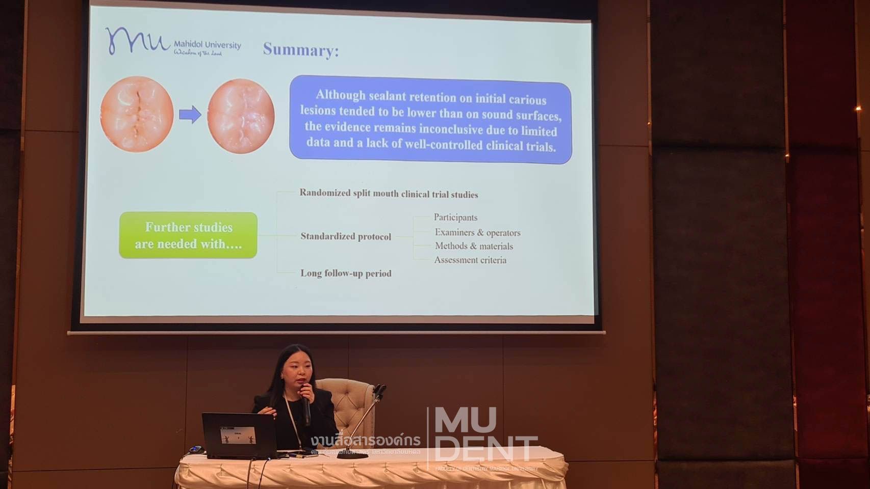 นอกจากนี้ คณาจารย์ บุคลากร และนักศึกษาหลังปริญญาสาขาทันตกรรมเด็ก รวมถึงนักศึกษาทันตแพทยศาสตรบัณฑิต มหาวิทยาลัยมหิดล ยังได้ร่วม นำเสนอผลงานทางวิชาการ ทั้งในรูปแบบ Oral Presentation และ Poster Presentation