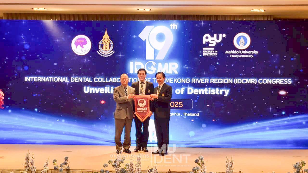 เมื่อวันที่ 16 – 17 ตุลาคม 2568 รองศาสตราจารย์ ทันตแพทย์บัณฑิต จิรจริยาเวช คณบดีคณะทันตแพทยศาสตร์ มหาวิทยาลัยมหิดล พร้อมด้วยผู้บริหาร คณาจารย์ นักศึกษา และบุคลากร เข้าร่วมงานประชุมวิชาการนานาชาติ The 19ᵗʰ International Dental Collaboration of the Mekong River Region (IDCMR) Congress 2025 ภายใต้หัวข้อ “Unveiling the Future of Dentistry” จัดโดยคณะทันตแพทยศาสตร์ มหาวิทยาลัยสงขลานครินทร์