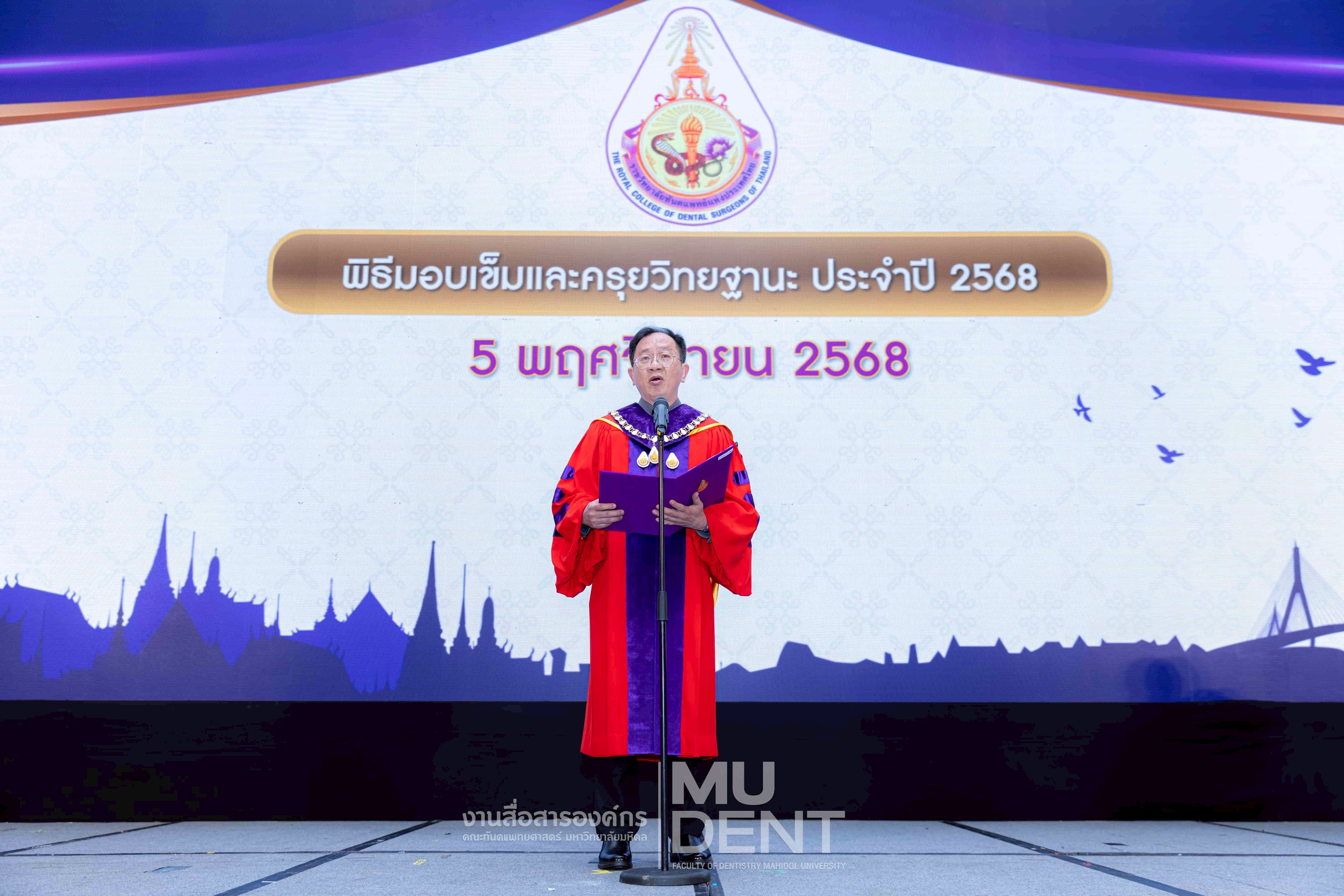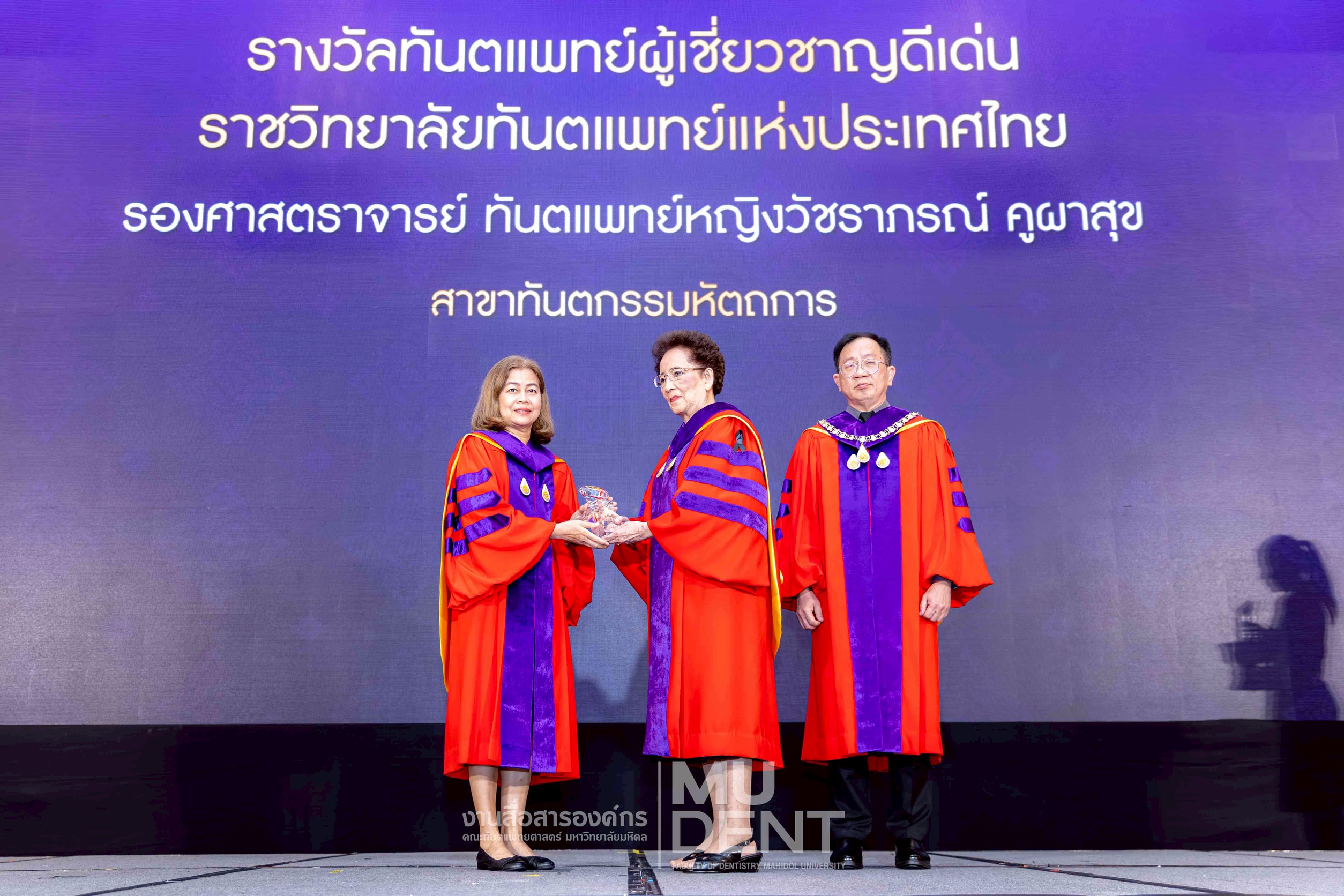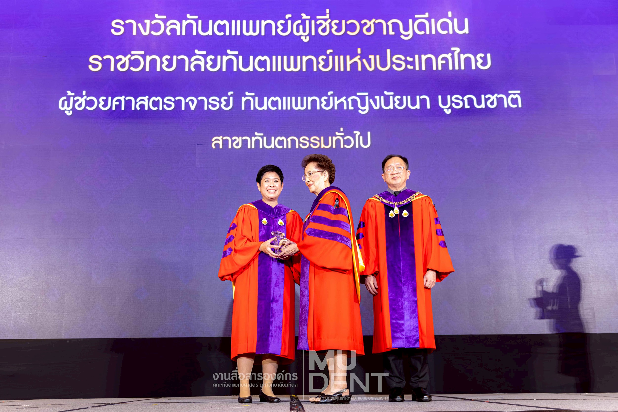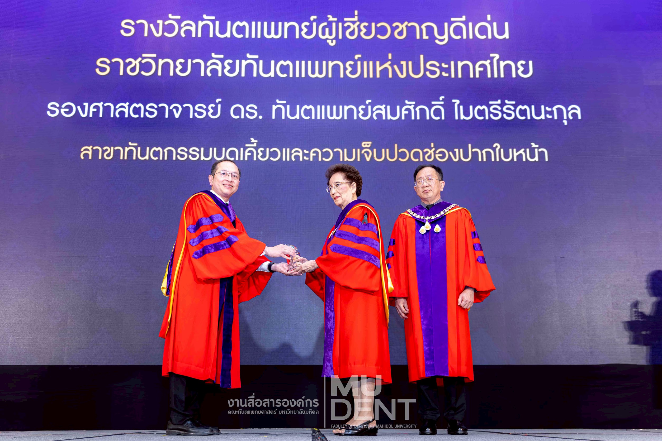 เมื่อวันที่ 5 พฤศจิกายน 2568 ผู้บริหารและคณาจารย์ คณะทันตแพทยศาสตร์ มหาวิทยาลัยมหิดล เข้ารับ รางวัล “ทันตแพทย์ผู้เชี่ยวชาญดีเด่น” ของ ราชวิทยาลัยทันตแพทย์แห่งประเทศไทย วาระที่ 8 ซึ่งเป็นรางวัลอันทรงเกียรติที่มอบให้แก่ทันตแพทย์ผู้มีความเชี่ยวชาญและมีผลงานโดดเด่นในสาขาวิชาต่าง ๆ