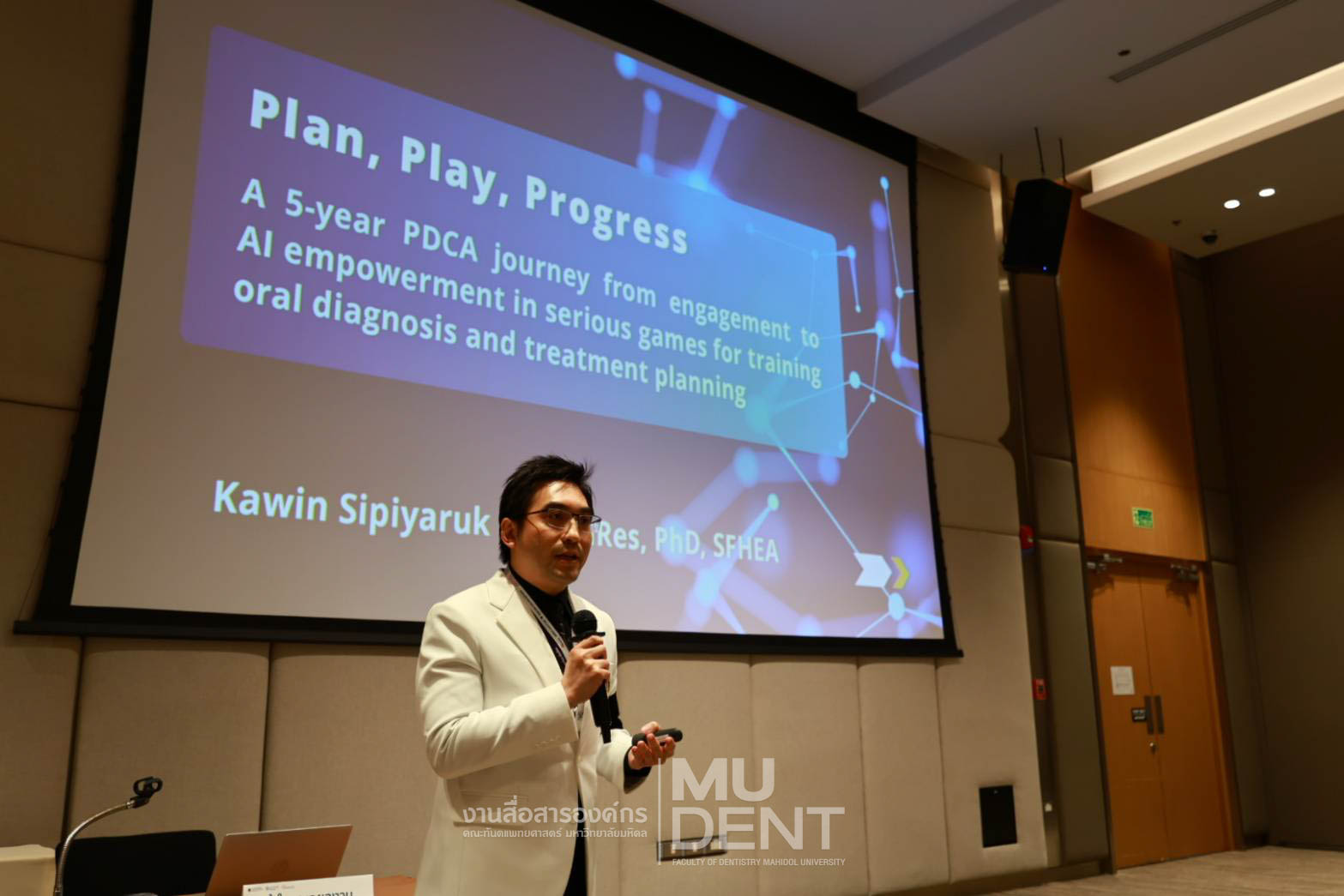 โดยผลงานนวัตกรรมเรื่อง “Plan, Play, Progress: A 5-year PDCA journey from engagement to AI Empowerment In Serious Games For Training Oral Diagnosis and Treatment Planning” โดย รองศาสตราจารย์ ดร. ทันตแพทย์กวิน สิปิยารักษ์ ผู้ช่วยคณบดีฝ่ายทรัพยากรบุคคล และ ศาสตราจารย์ ดร. ทันตแพทย์หญิงวรานันท์ บัวจีบ ที่ปรึกษาคณบดี คณะทันตแพทยศาสตร์ มหาวิทยาลัยมหิดล ได้รับรางวัล Innovation Teaching Award ในงานดังกล่าว