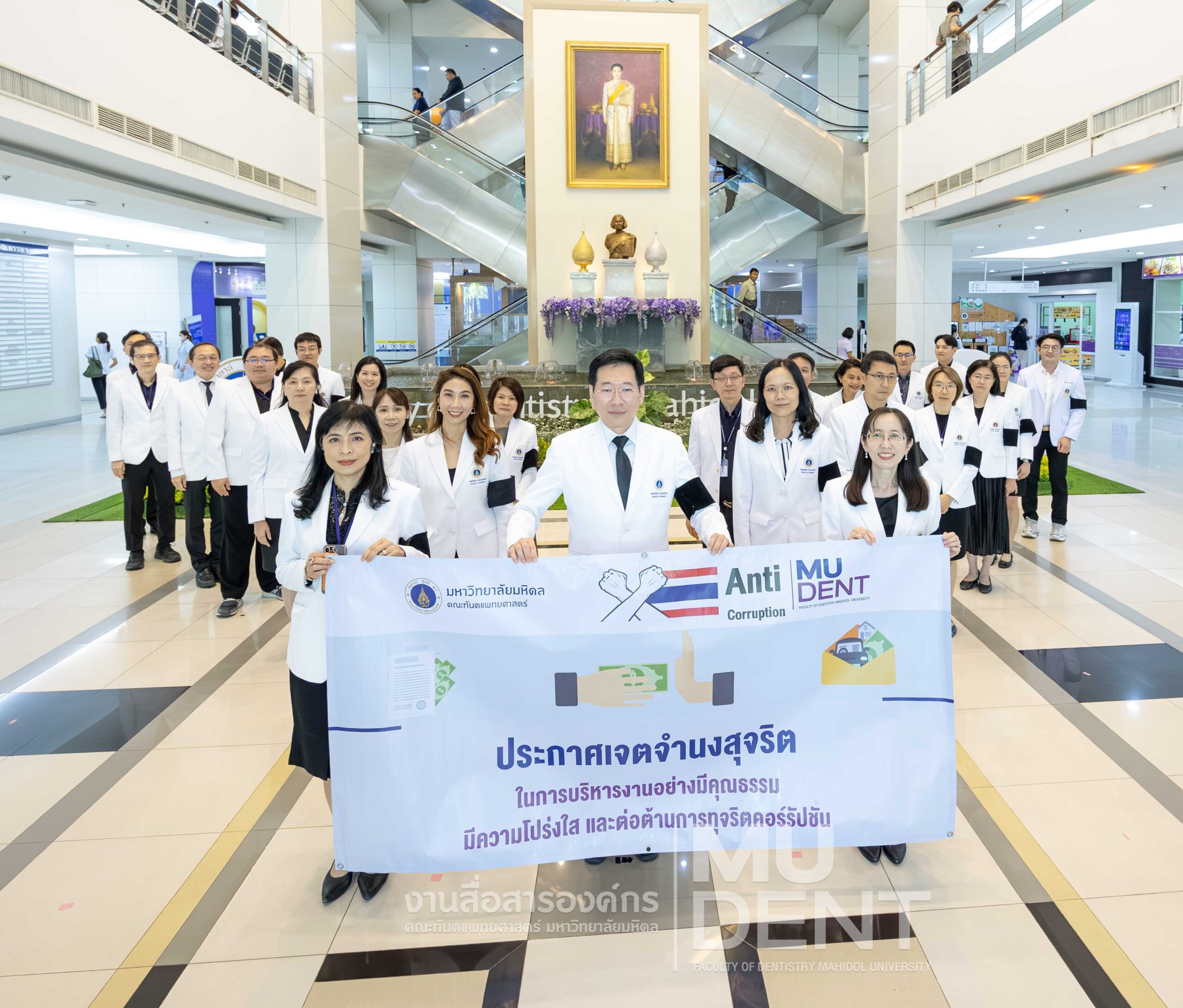 เมื่อวันที่ 4 ธันวาคม 2568 คณะทันตแพทยศาสตร์ มหาวิทยาลัยมหิดล นำโดย รองศาสตราจารย์ ทันตแพทย์บัณฑิต จิรจริยาเวช คณบดี พร้อมด้วยคณะผู้บริหาร ได้ร่วมประกาศเจตจำนงสุจริตในการบริหารงานด้วยความโปร่งใสและยึดหลักคุณธรรมอย่างเป็นทางการ ณ บริเวณโถงชั้น 1 อาคารเฉลิมพระเกียรติ 50 พรรษา คณะทันตแพทยศาสตร์ มหาวิทยาลัยมหิดล