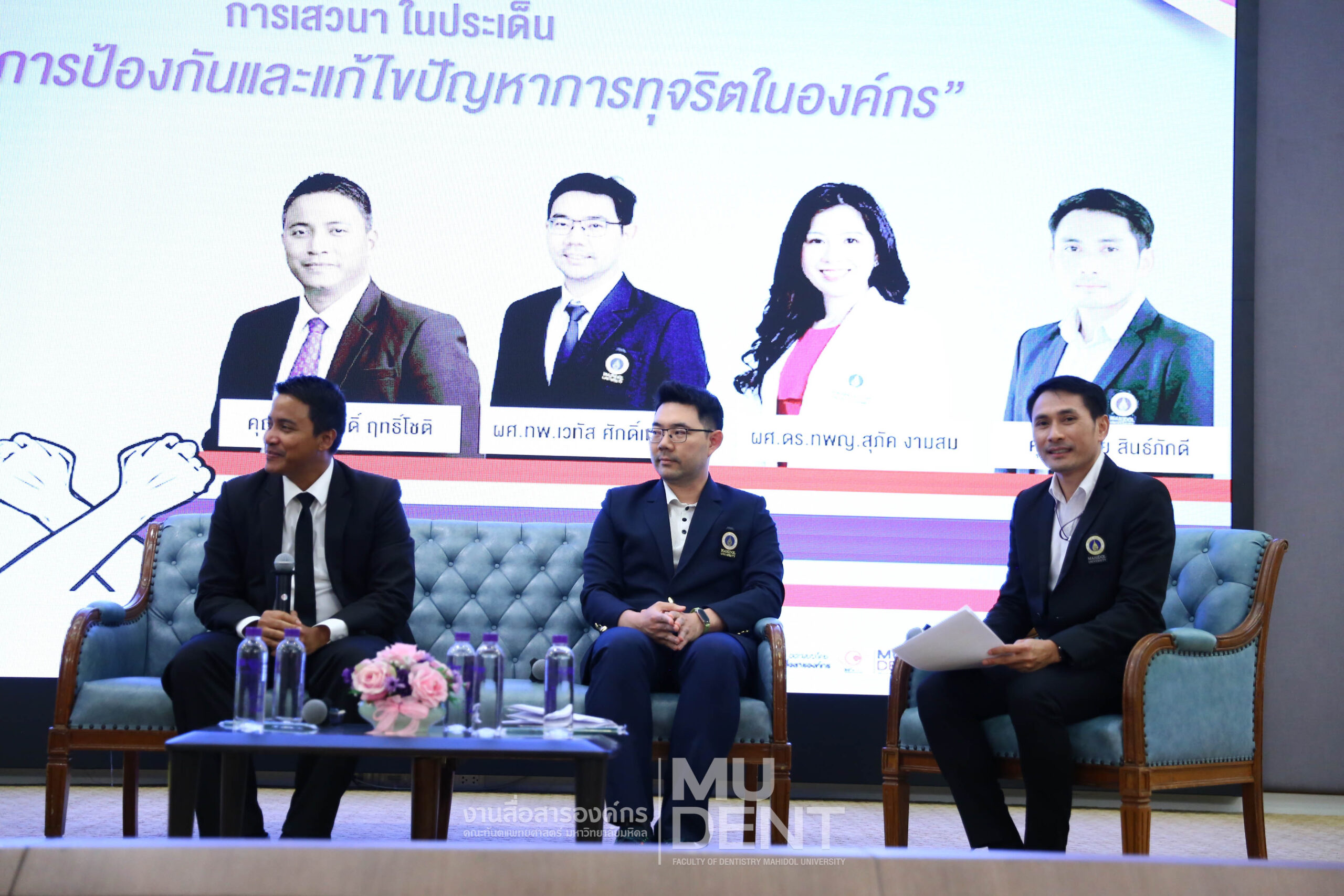 รองศาสตราจารย์ ทันตแพทย์บัณฑิต จิรจริยาเวช คณบดีคณะทันตแพทยศาสตร์ มหาวิทยาลัยมหิดล ให้เกียรติเป็นประธานกล่าวเปิดงาน พร้อมเน้นย้ำถึงความสำคัญของการส่งเสริมวัฒนธรรมองค์กรที่ยึดหลักธรรมาภิบาล โปร่งใส และตรวจสอบได้ จากนั้นผู้บริหาร คณาจารย์ และบุคลากร ได้ร่วมกัน ถ่ายภาพเชิงสัญลักษณ์ เพื่อรณรงค์และแสดงพลังร่วมกันในการต่อต้านการทุจริตอย่างพร้อมเพรียง