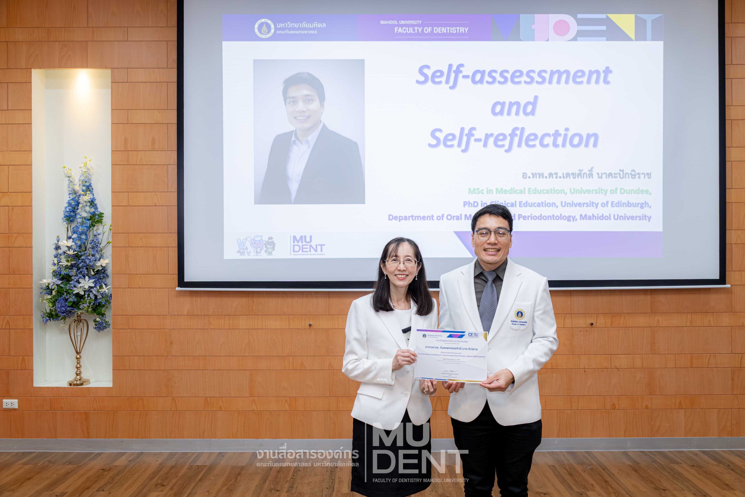 เมื่อวันที่ 18 กุมภาพันธ์ 2569 ศูนย์การศึกษาต่อเนื่องและบริการวิชาการ คณะทันตแพทยศาสตร์ มหาวิทยาลัยมหิดล จัดการบรรยายวิชาการ เรื่อง “THE ART & SCIENCE OF ASSESSMENT IN OUTCOME-BASED DENTAL EDUCATION: วัดผลอย่างไรให้มีประสิทธิภาพ?” โดยได้รับเกียรติจาก อาจารย์ ดร. ทันตแพทย์เดชศักดิ์ นาคะปักษิราช เป็นวิทยากรบรรยายในหัวข้อ “การประเมินตนเองและการสะท้อนคิด (Self-Assessment and Self-Reflection)”