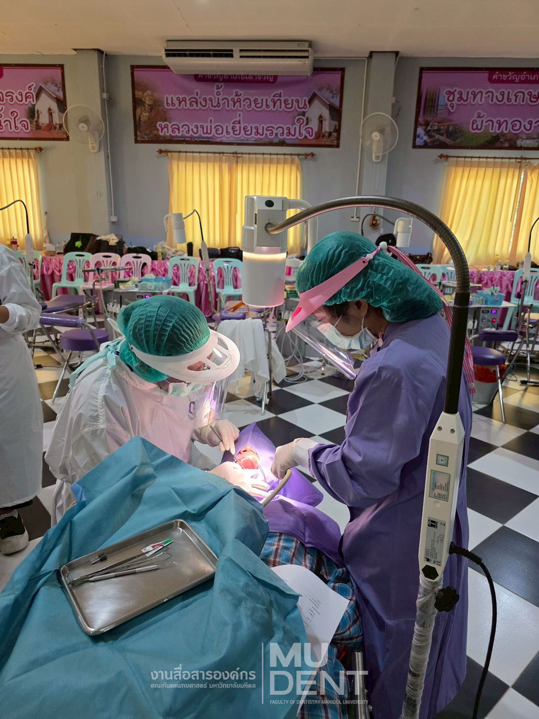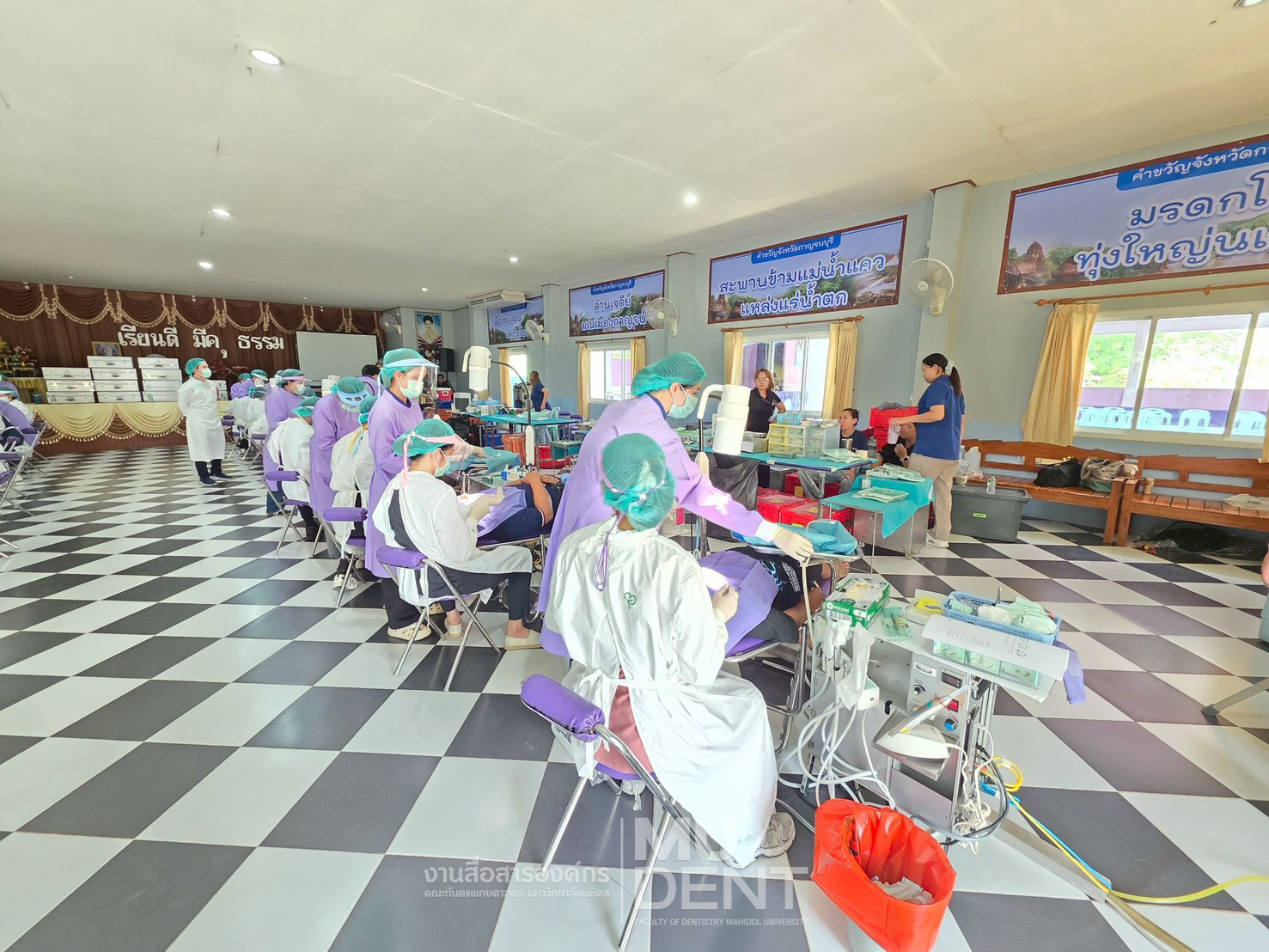 ศูนย์ทันตกรรมพระราชทานสมเด็จพระกนิษฐาธิราชเจ้า กรมสมเด็จพระเทพรัตนราชสุดา ฯ สยามบรมราชกุมารี คณะทันตแพทยศาสตร์ มหาวิทยาลัยมหิดล ร่วมกับภาควิชาเวชศาสตร์ช่องปากและปริทันตวิทยา จัดหน่วยให้บริการทางทันตกรรมแก่ประชาชนในพื้นที่ โดยได้รับเกียรติจาก รองศาสตราจารย์ ทันตแพทย์หญิงกันยวัชร์ รัตนสุวรรณ หัวหน้าภาควิชาเวชศาสตร์ช่องปากและปริทันตวิทยา เป็นหัวหน้าคณะ นำทีมคณาจารย์ ทันตแพทย์ นักศึกษาหลังปริญญา ผู้ปฏิบัติงานทางทันตกรรม และเจ้าหน้าที่ ร่วมให้บริการตรวจ วินิจฉัย และรักษาทางทันตกรรม พร้อมทั้งให้ความรู้ด้านการดูแลสุขภาพช่องปากและฟันแก่ประชาชน เพื่อส่งเสริมการมีสุขภาพช่องปากที่ดีอย่างยั่งยืน
