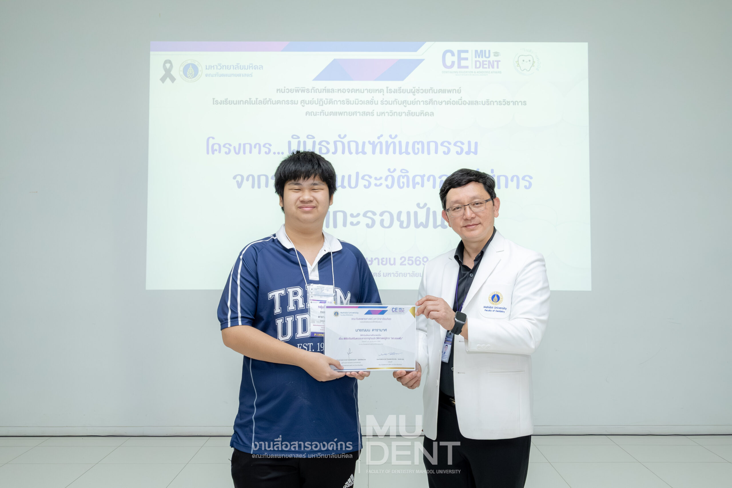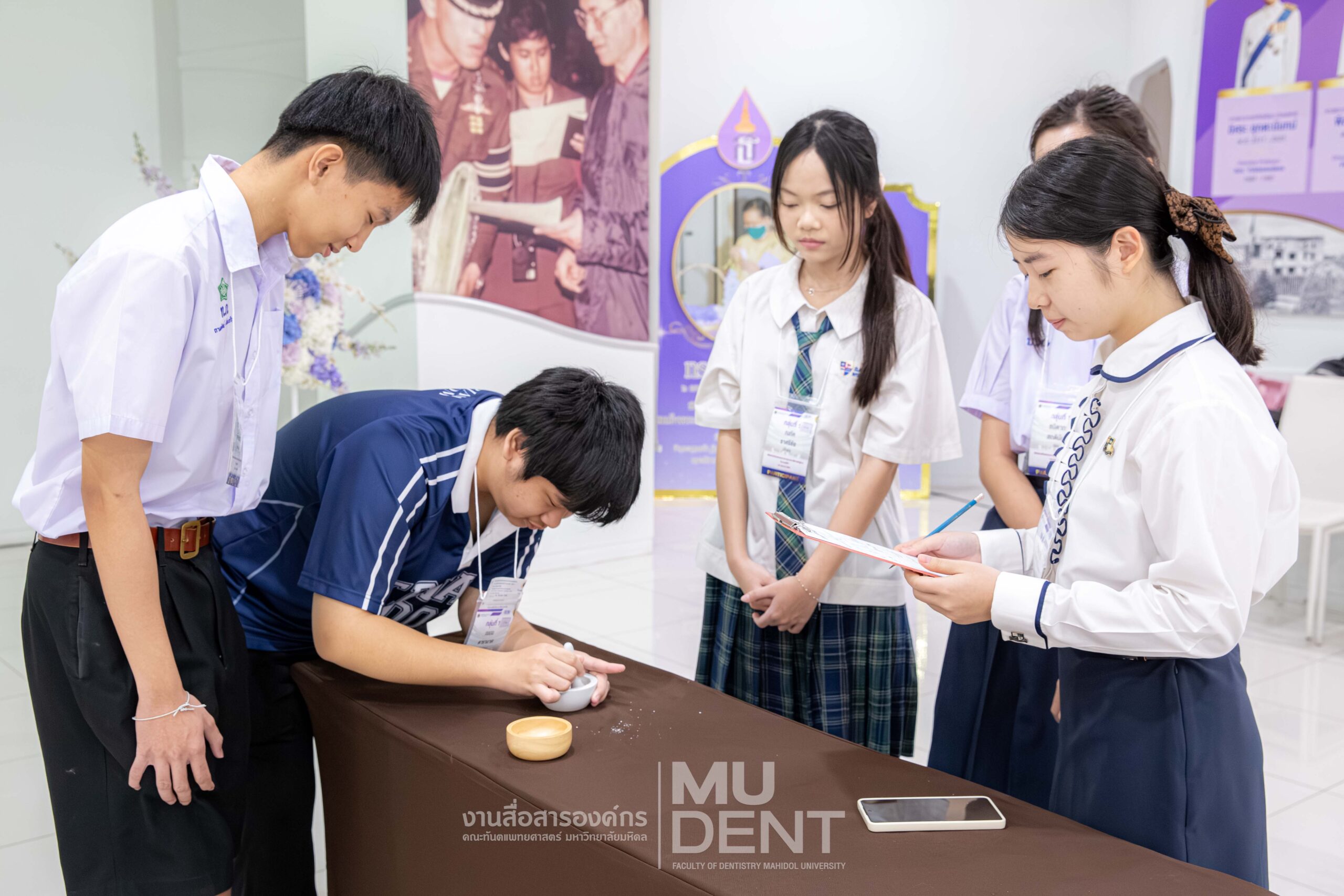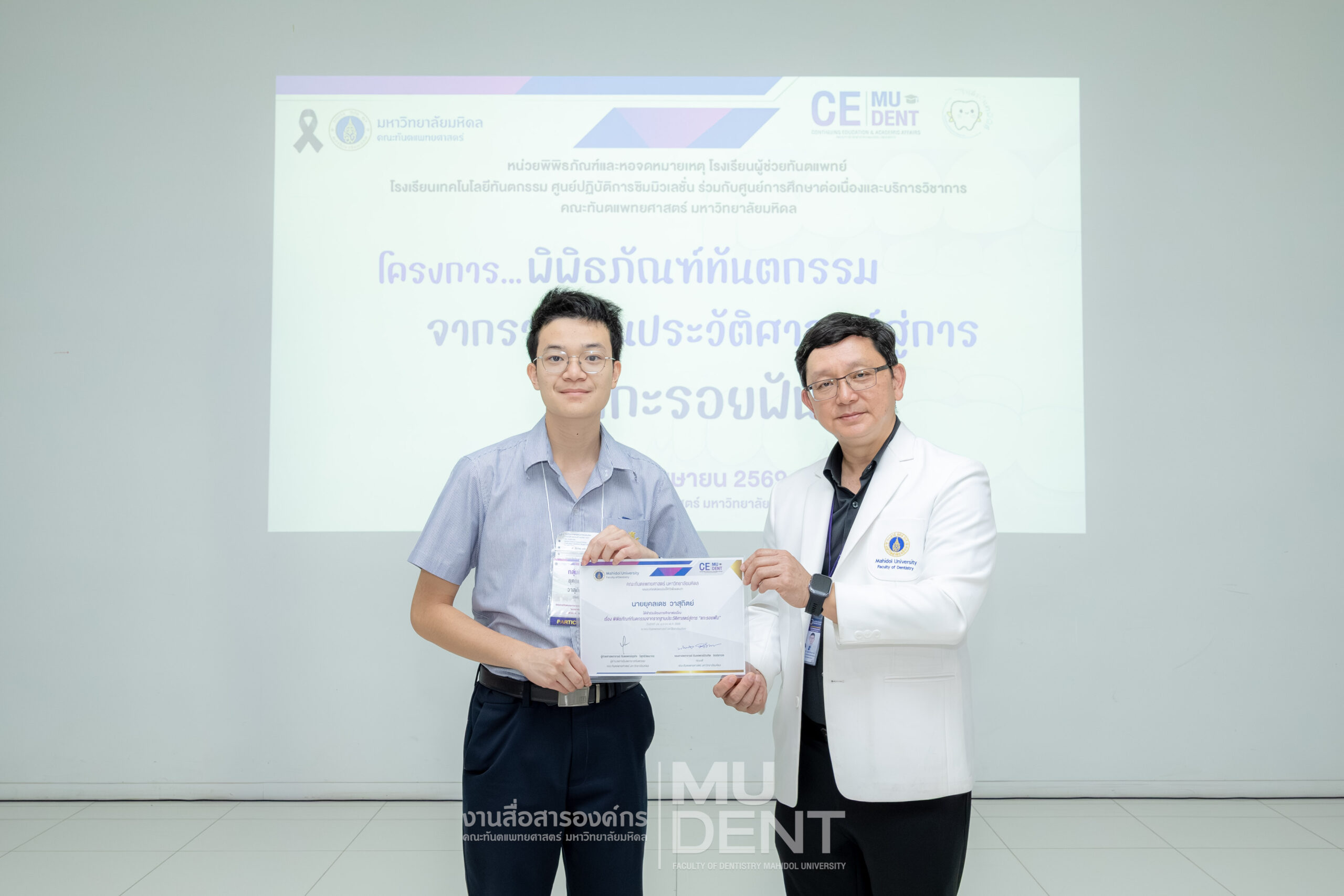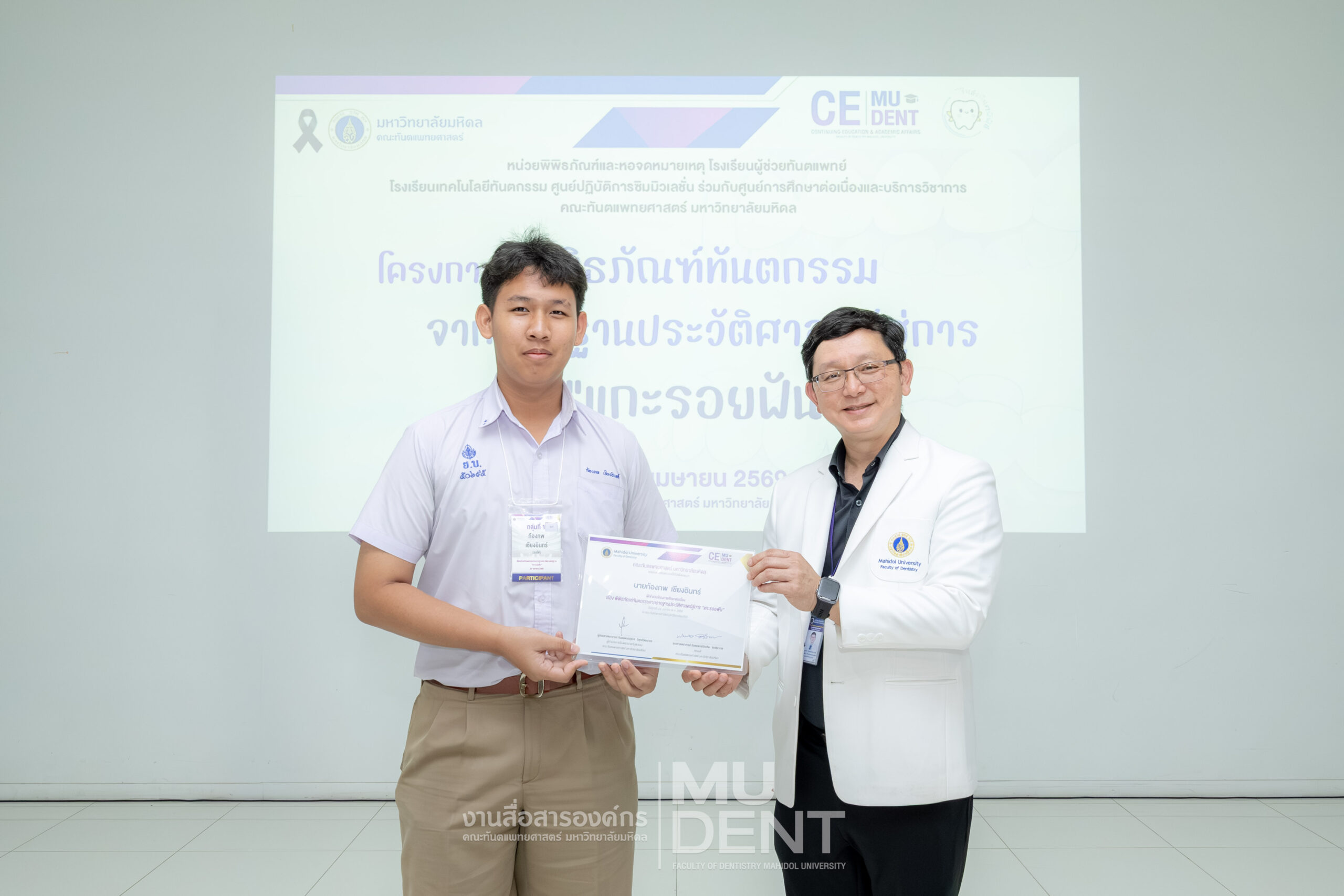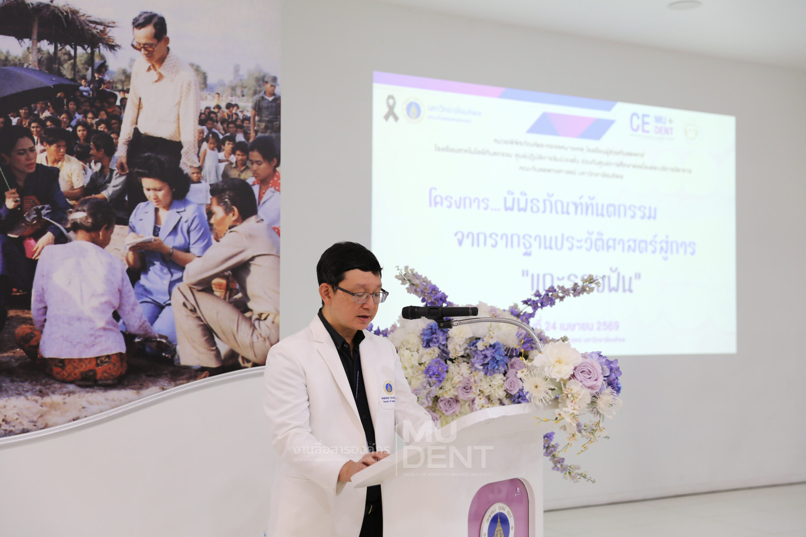 เมื่อวันที่ 24 เมษายน 2569 รองศาสตราจารย์ ทันตแพทย์บัณฑิต จิรจริยาเวช คณบดีคณะทันตแพทยศาสตร์ มหาวิทยาลัยมหิดล ให้เกียรติเป็นประธานในพิธีเปิดโครงการ “พิพิธภัณฑ์ทันตกรรมจากรากฐานประวัติศาสตร์สู่การ ‘แกะรอยฟัน’” สำหรับนักเรียนระดับมัธยมศึกษาตอนปลาย รุ่นที่ 1 ประจำปีงบประมาณ 2569 ณ สิรินธรทันตพิพิธ ชั้น 1 อาคารเฉลิมพระเกียรติ 50 พรรษา คณะทันตแพทยศาสตร์ มหาวิทยาลัยมหิดล