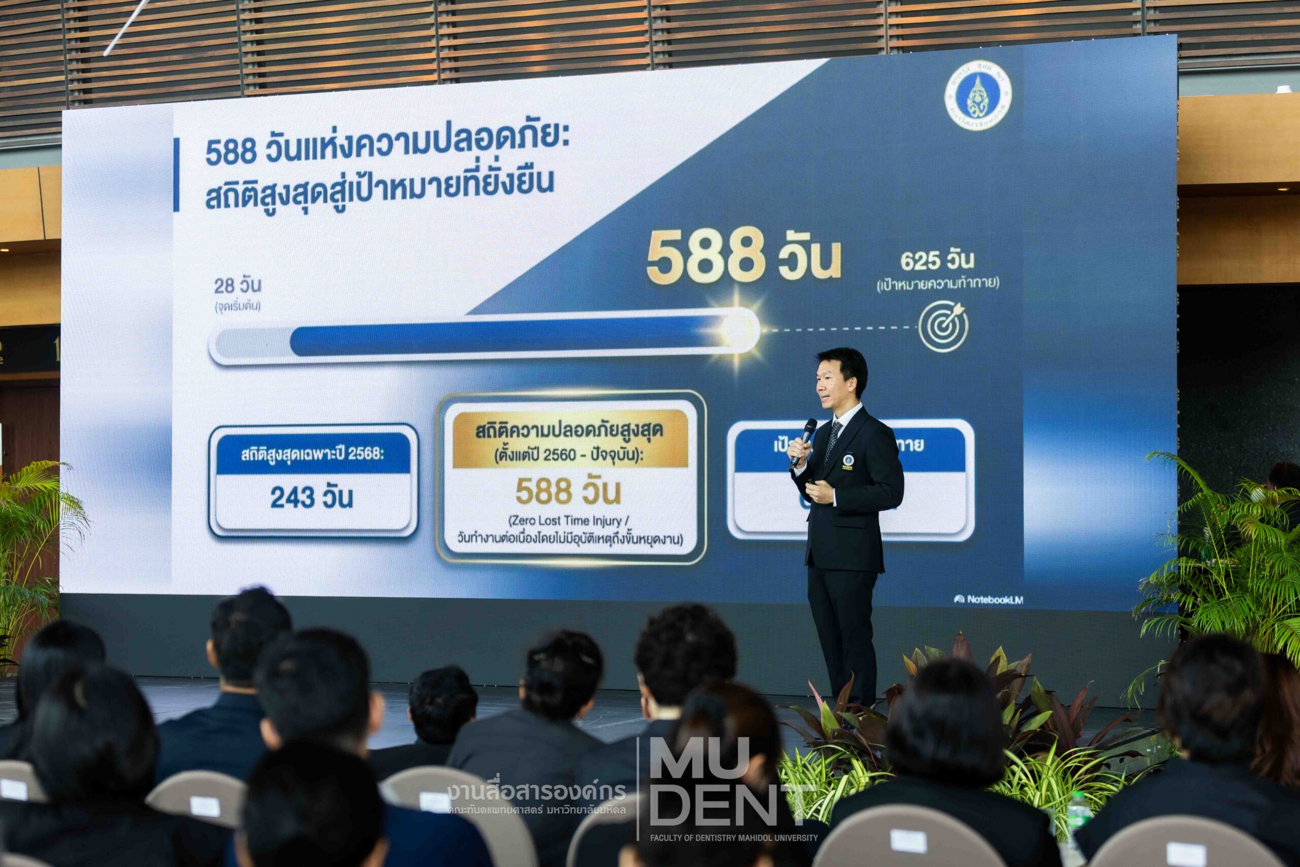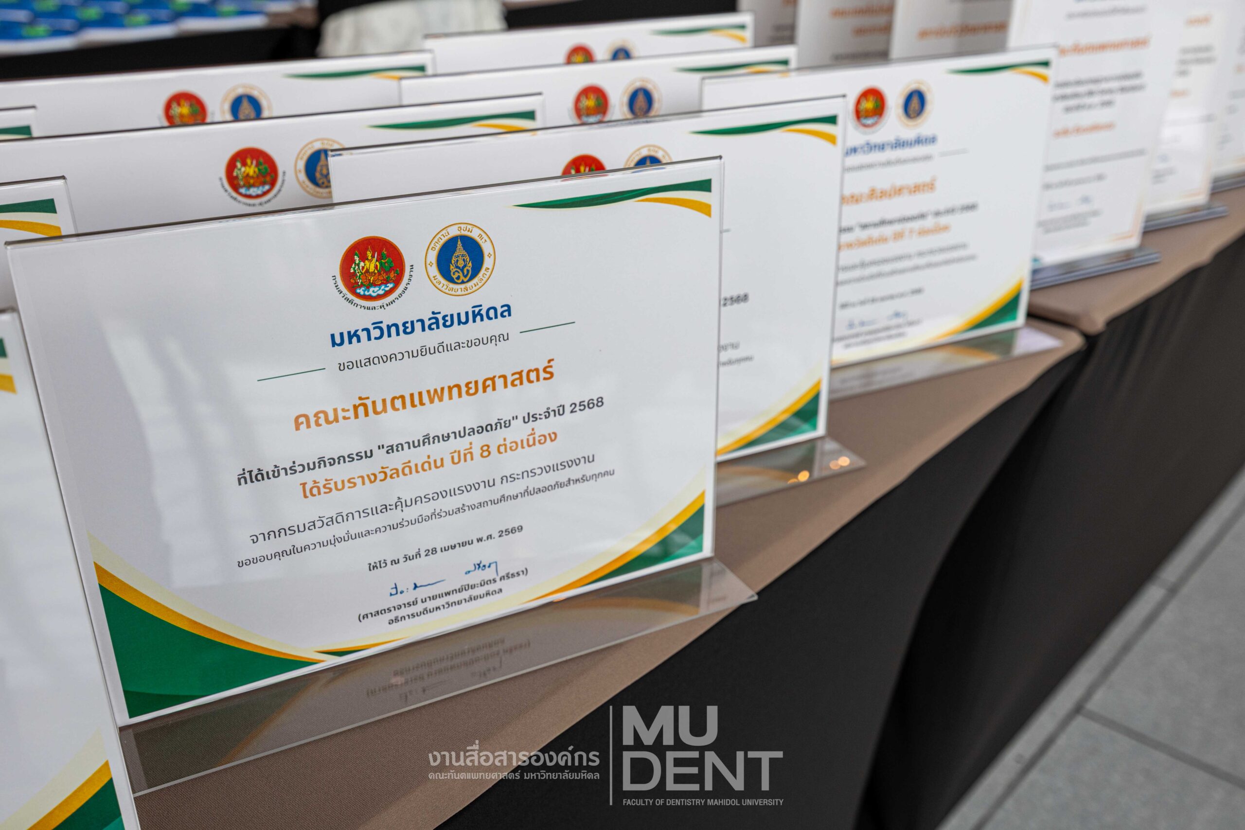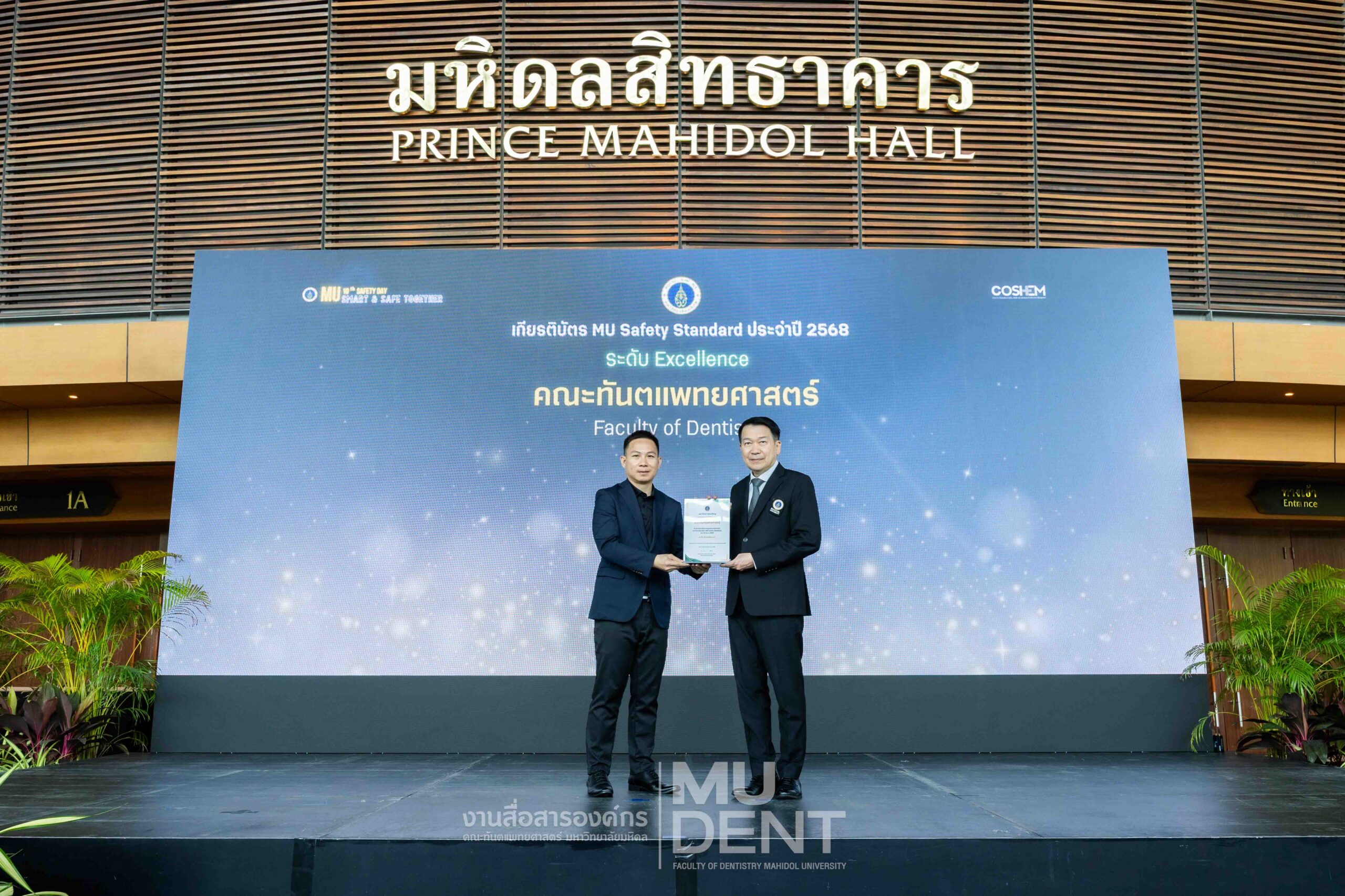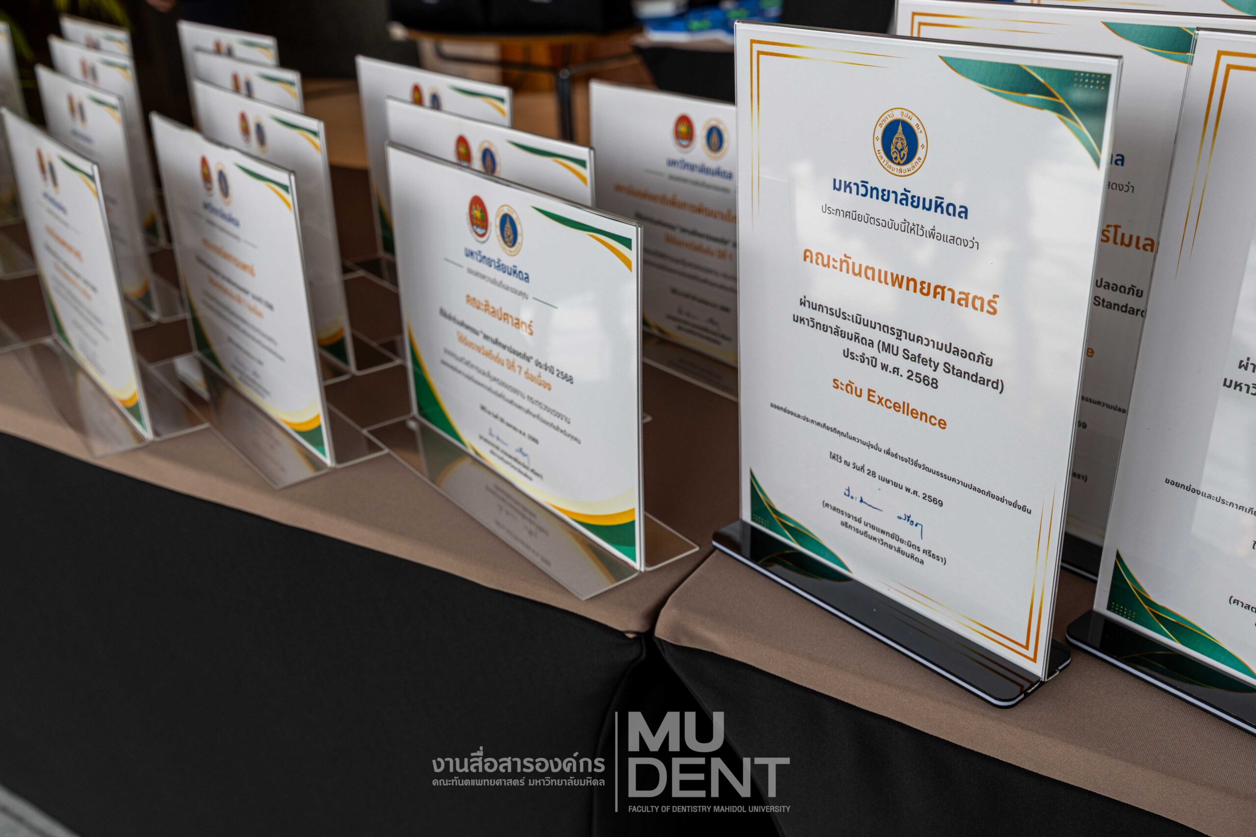 เมื่อวันที่ 28 เมษายน 2569 คณะทันตแพทยศาสตร์ มหาวิทยาลัยมหิดล เข้าร่วมพิธีรับมอบรางวัลเชิดชูเกียรติในงาน MU Safety Day ครั้งที่ 10 ซึ่งจัดขึ้นเพื่อส่งเสริมมาตรฐานความปลอดภัยและสภาพแวดล้อมที่ดีภายในมหาวิทยาลัย