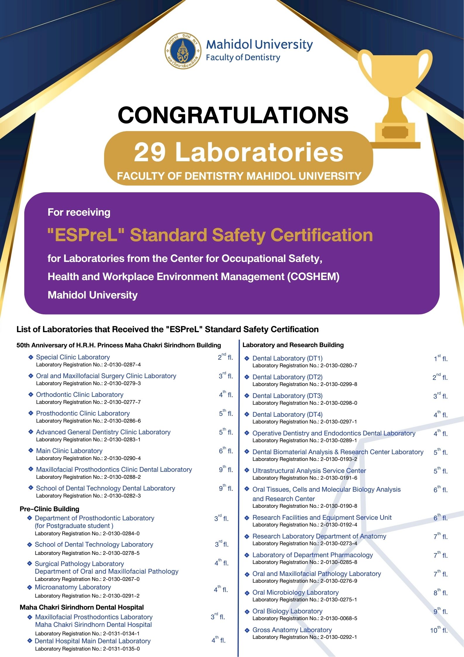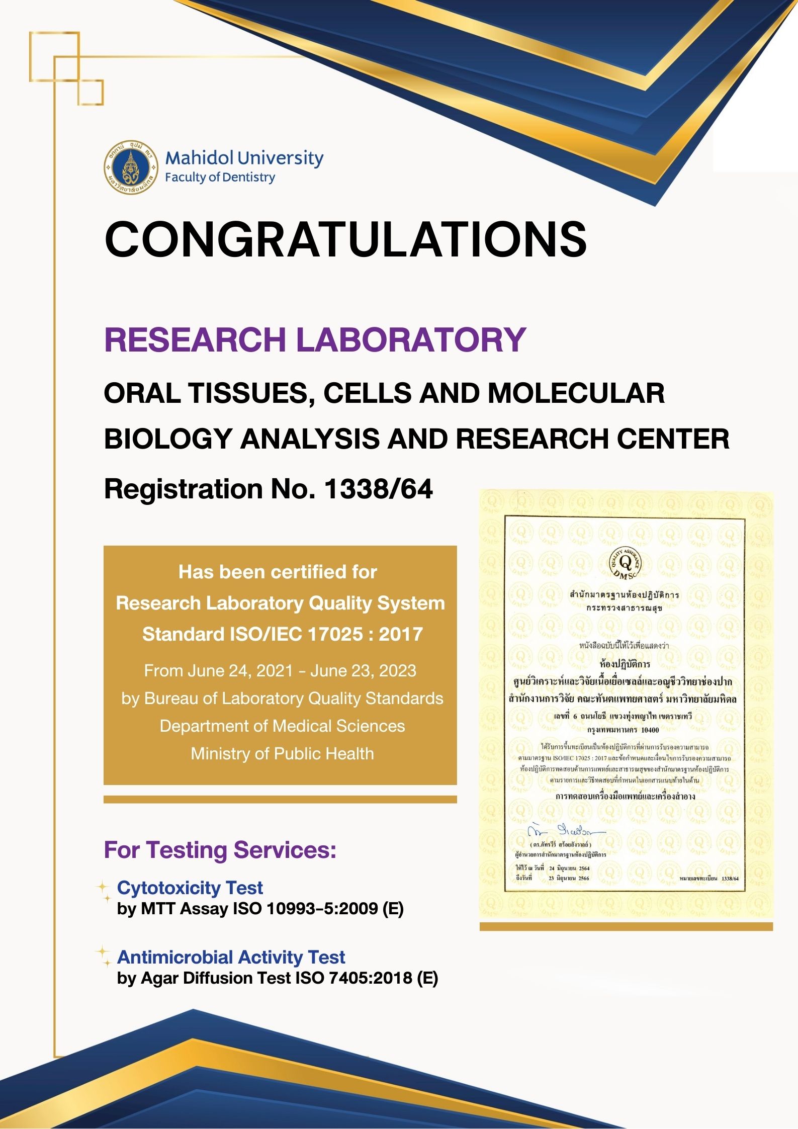 No. 6, Yothi Road, Ratchathewi District, Bangkok 10400, Mahidol University Faculty of Dentistry,15th floor
