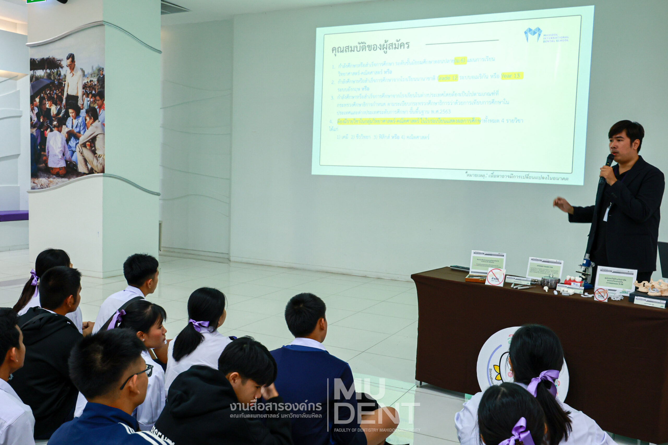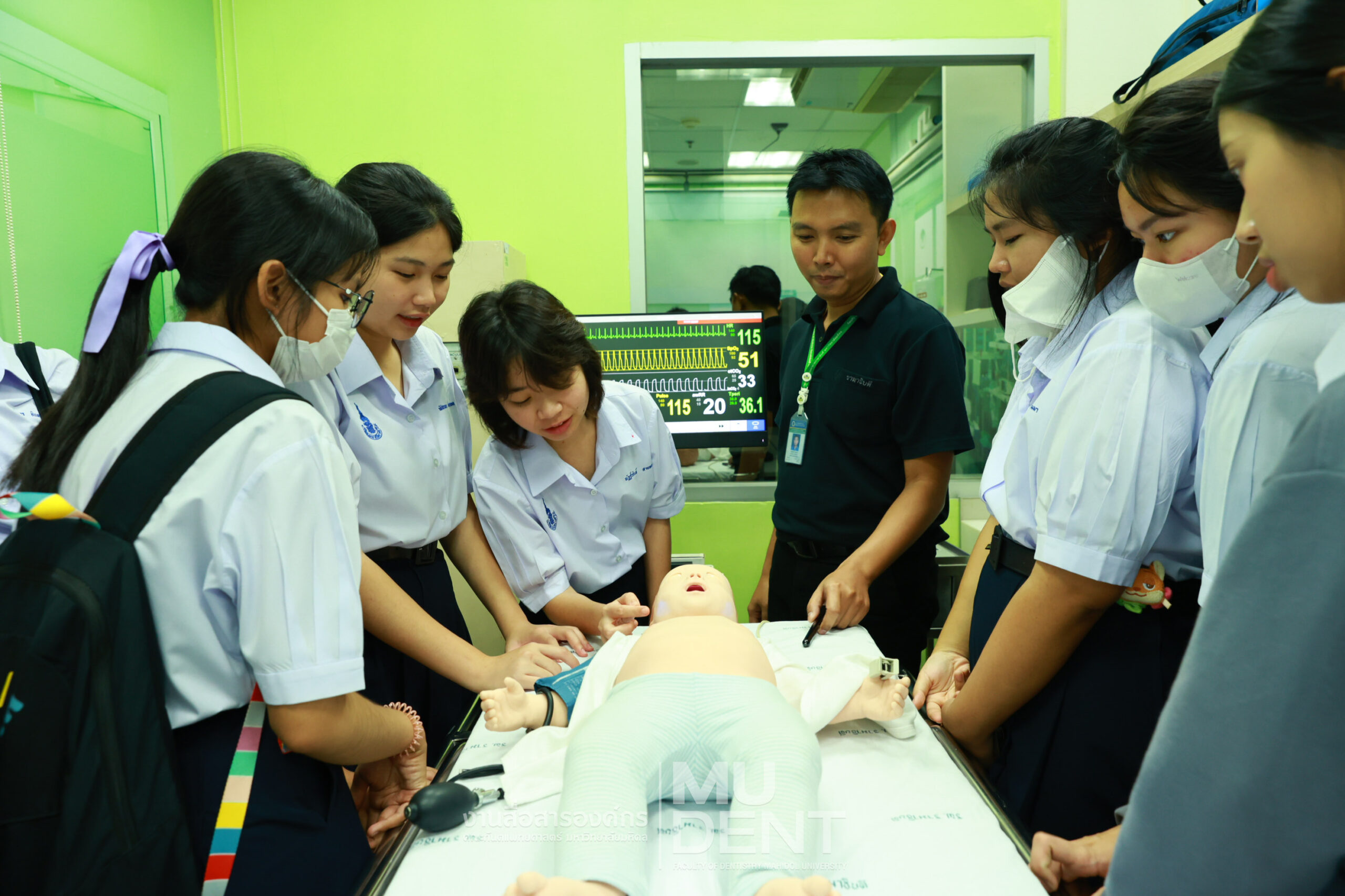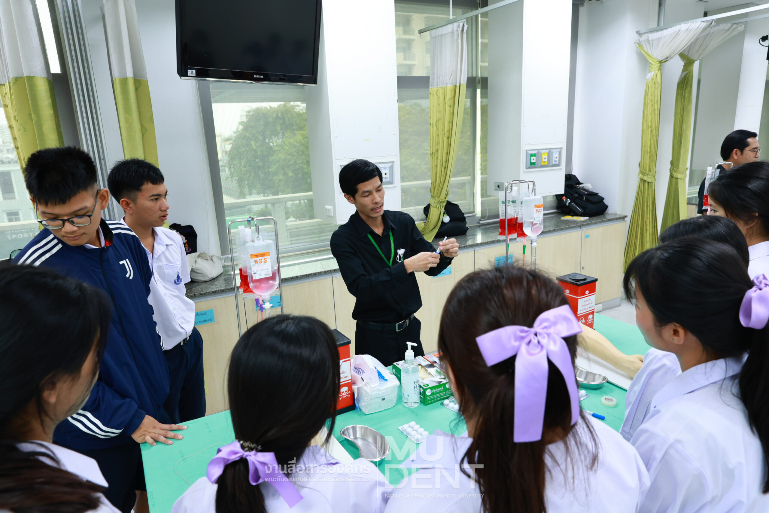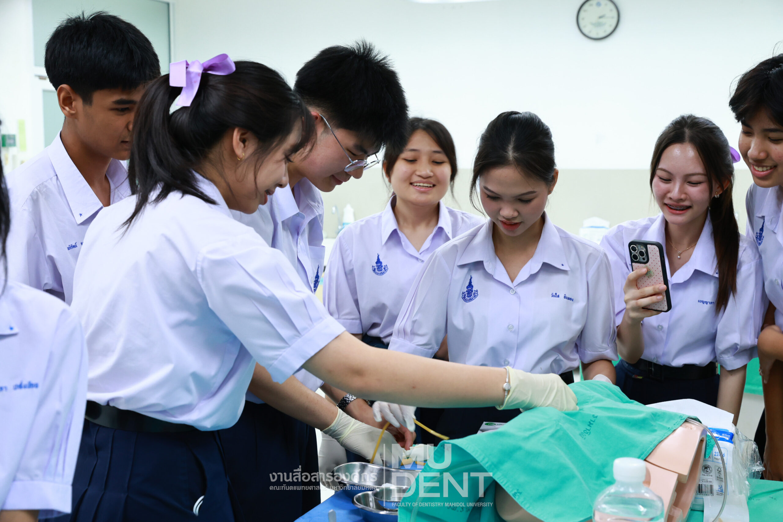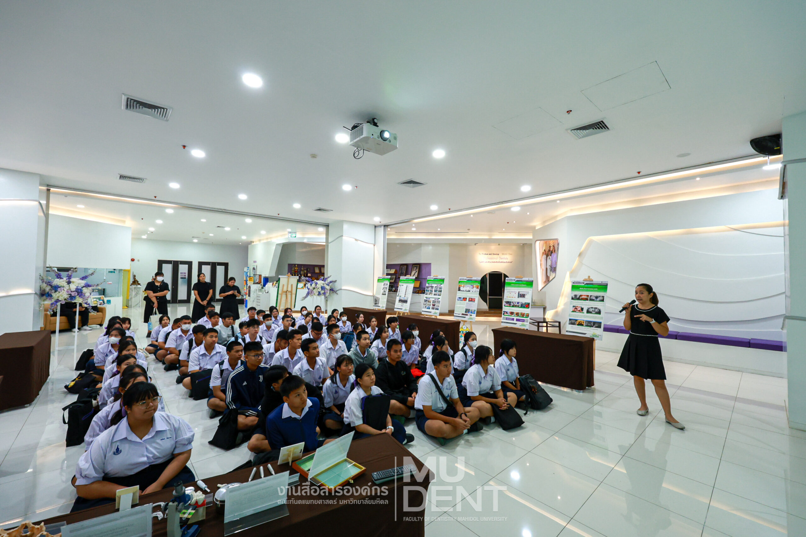 During the visit, students attended lectures on admission to the Doctor of Dental Surgery (DDS) program (Thai and International Programs). These were presented by the Head of the Undergraduate Education Administration Section and representatives from the Mahidol International Dental School (MIDS). The group also toured the Mahidol Simulation Center to observe the dental teaching environment and learned about the Advanced Dental Assistant Certificate Program (2-year curriculum).