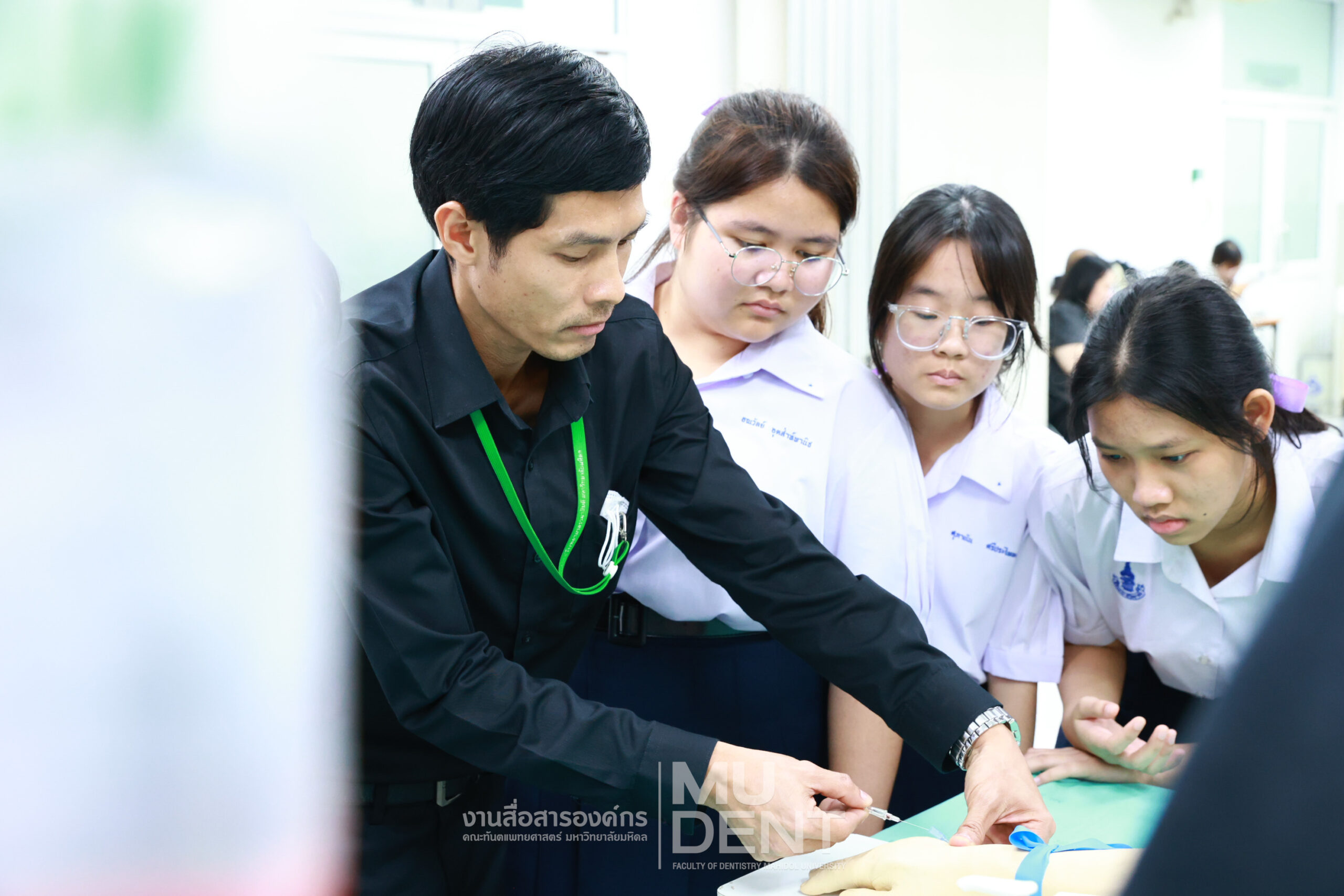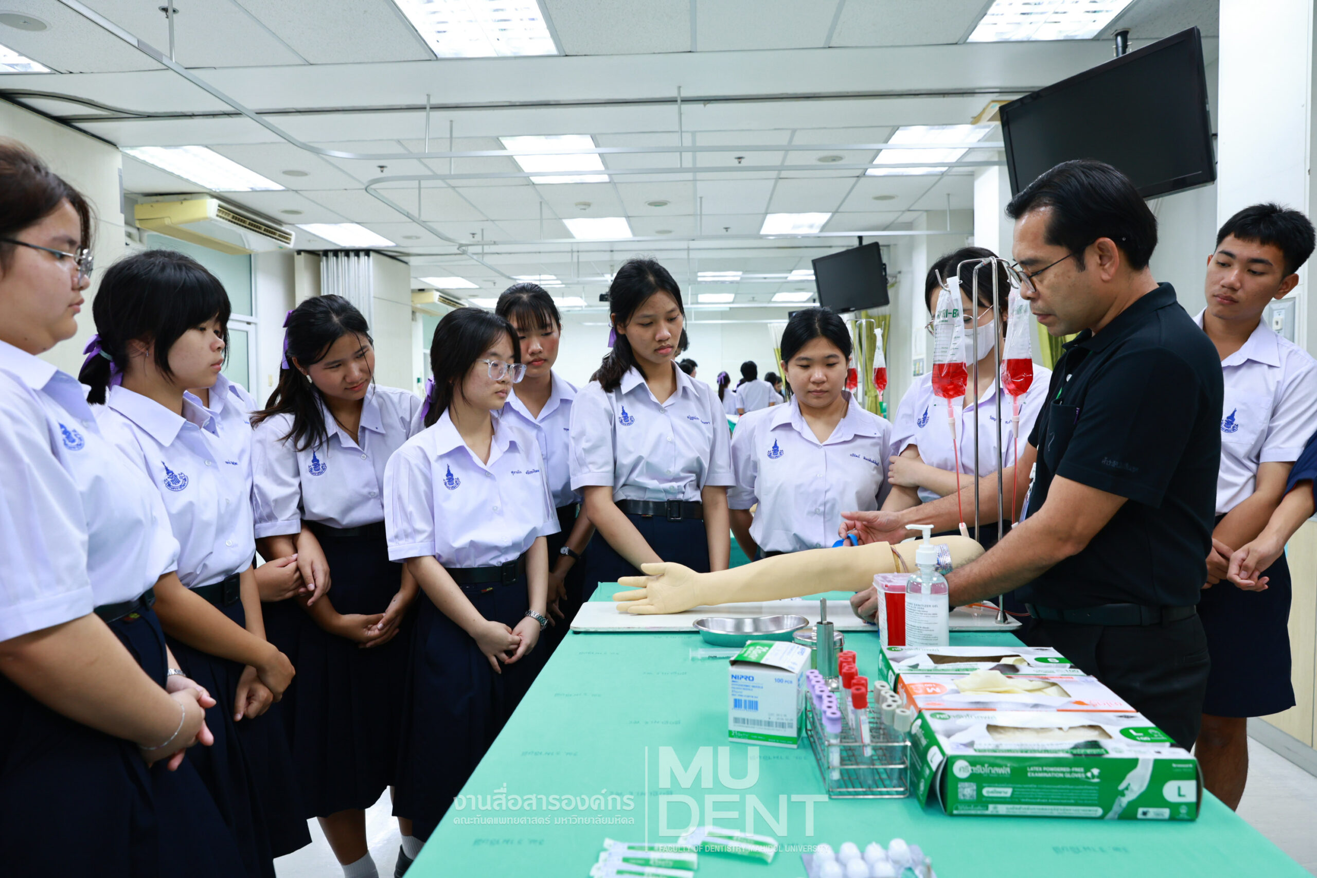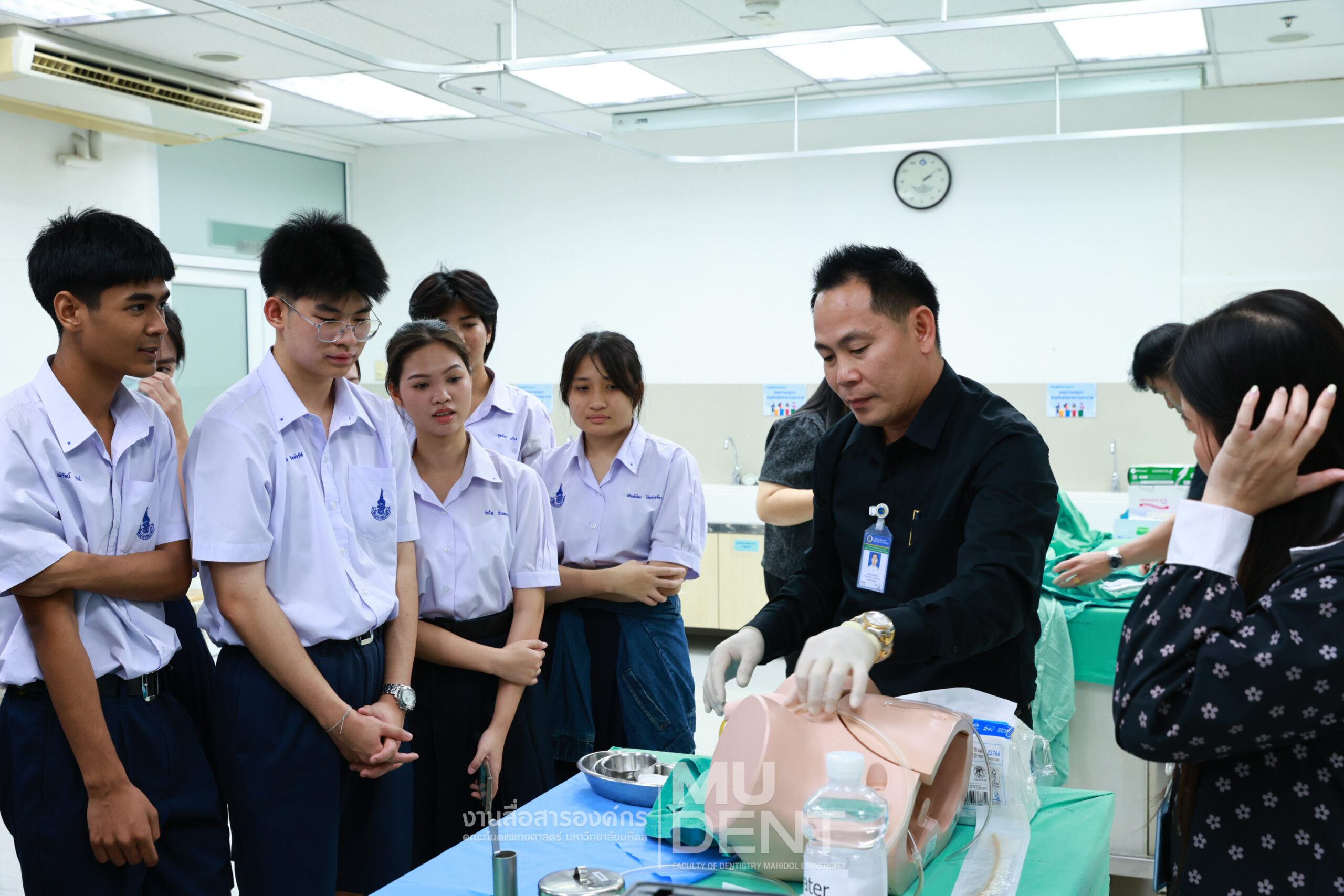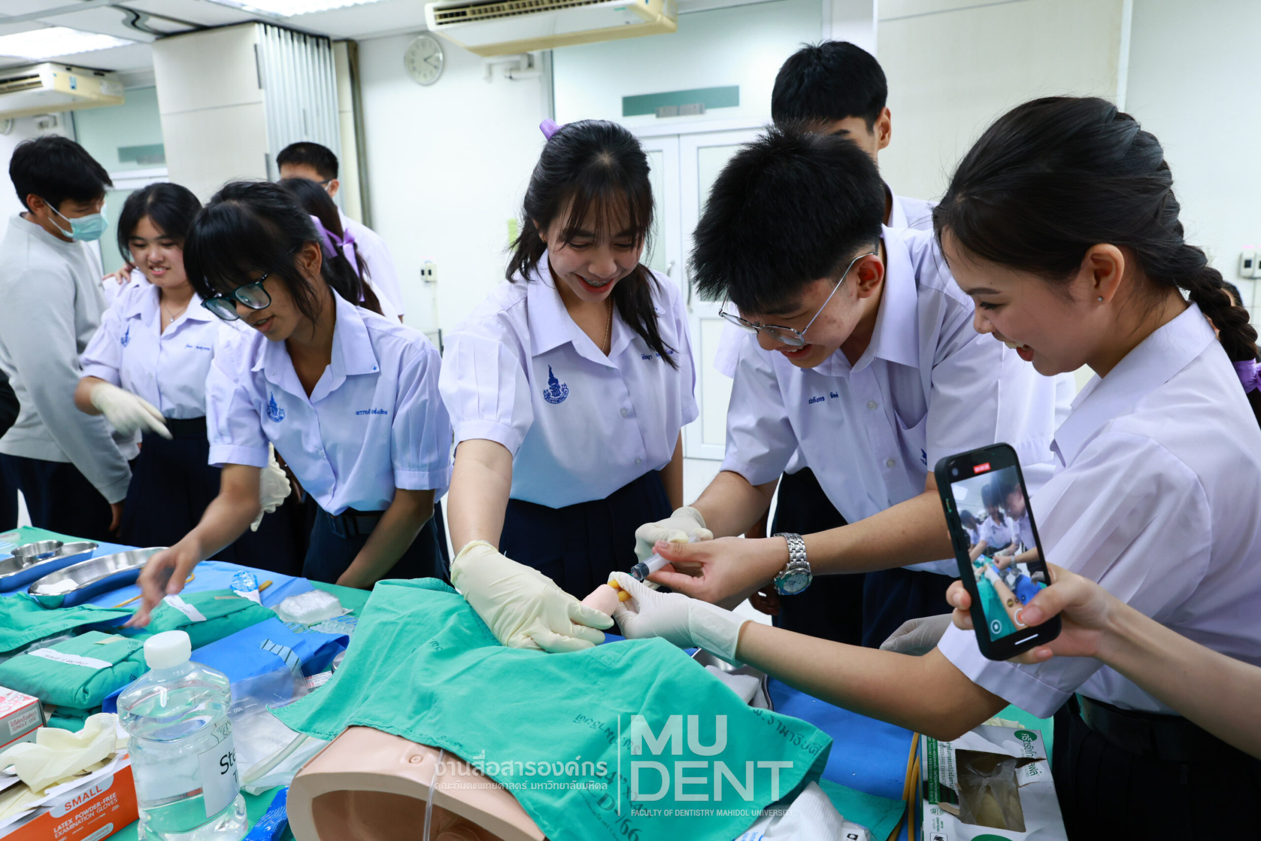 During the visit, students attended lectures on admission to the Doctor of Dental Surgery (DDS) program (Thai and International Programs). These were presented by the Head of the Undergraduate Education Administration Section and representatives from the Mahidol International Dental School (MIDS). The group also toured the Mahidol Simulation Center to observe the dental teaching environment and learned about the Advanced Dental Assistant Certificate Program (2-year curriculum).