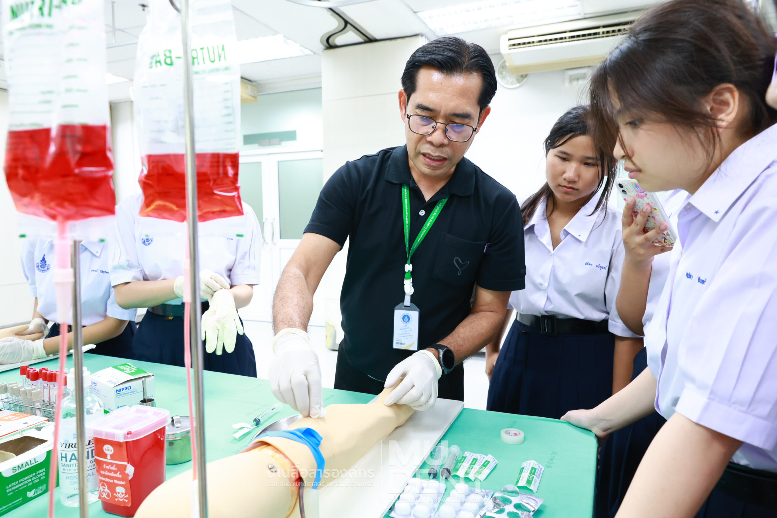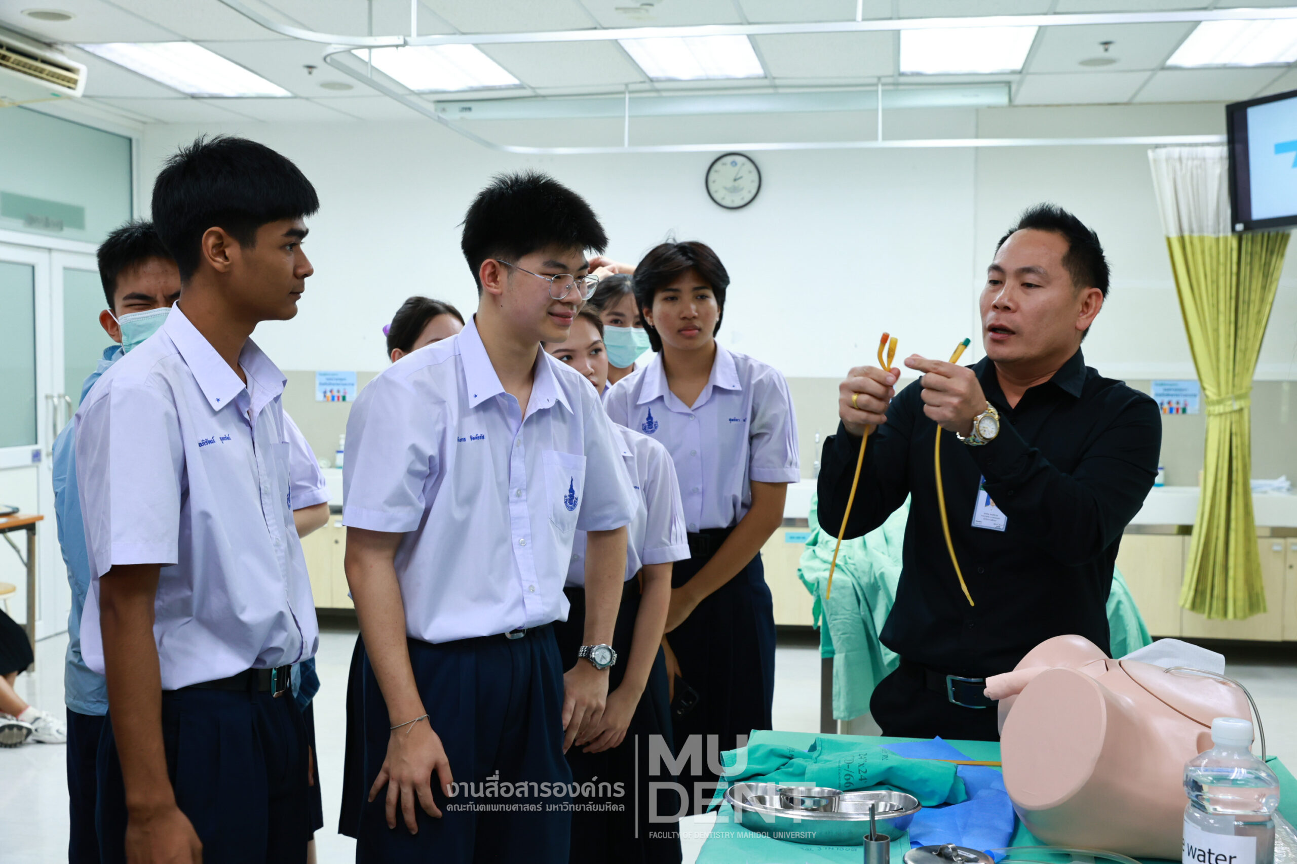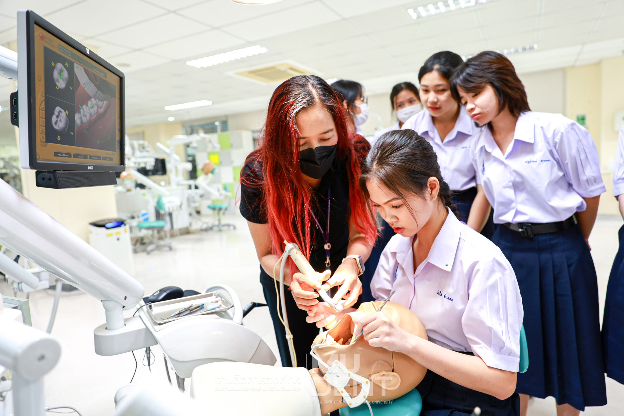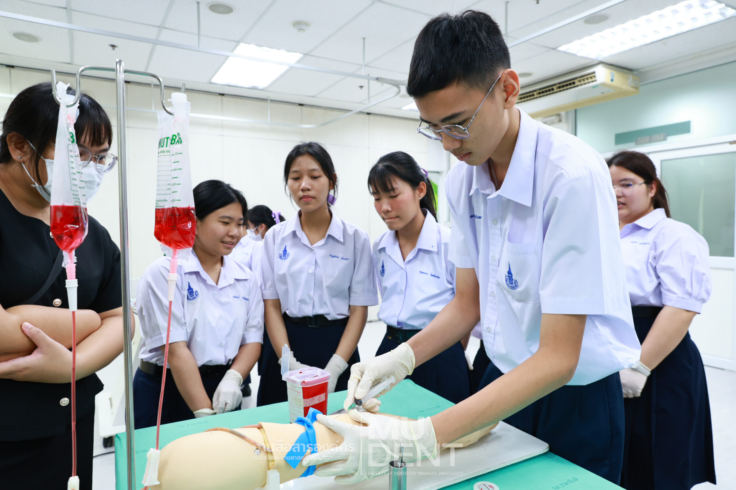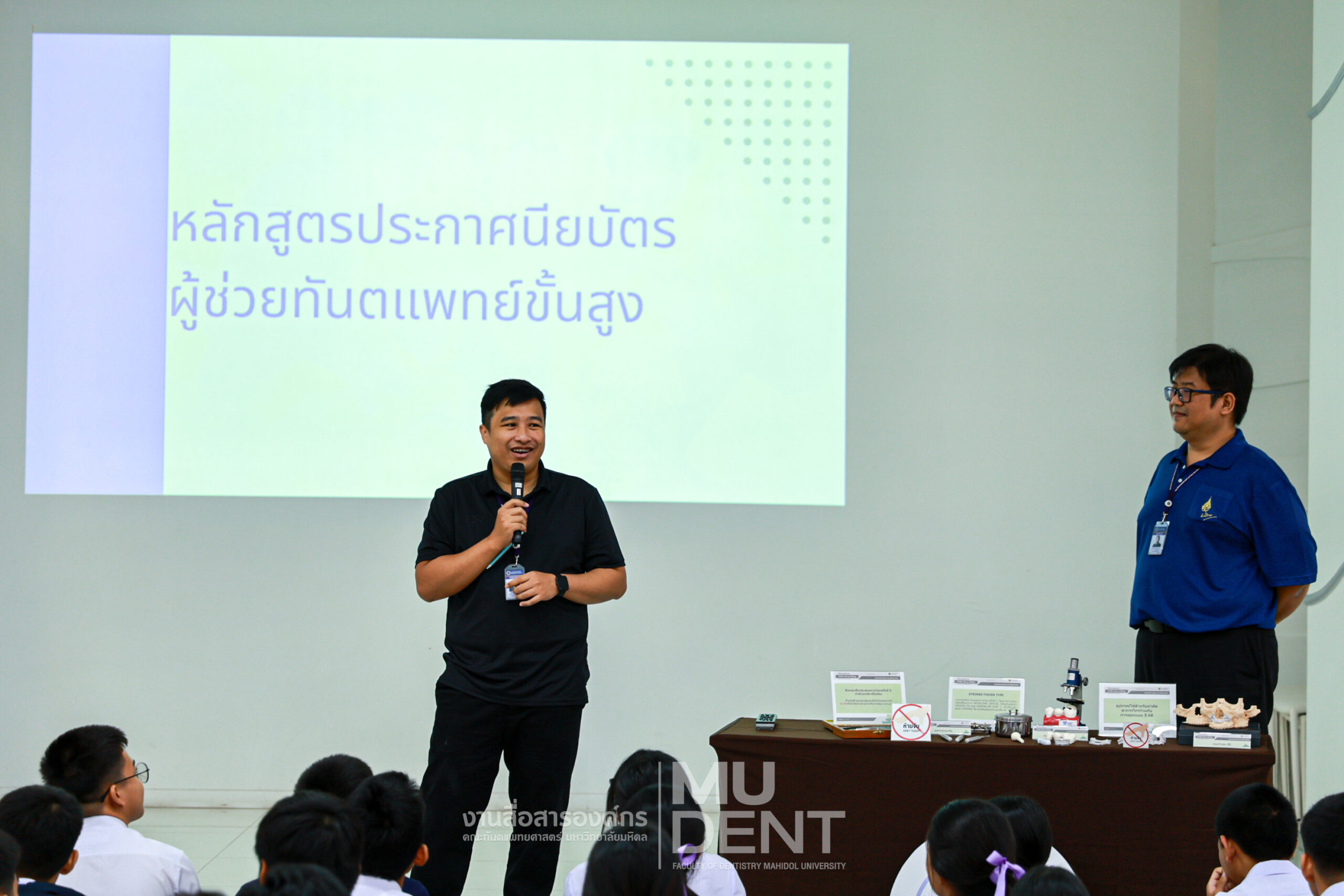 During the visit, students attended lectures on admission to the Doctor of Dental Surgery (DDS) program (Thai and International Programs). These were presented by the Head of the Undergraduate Education Administration Section and representatives from the Mahidol International Dental School (MIDS). The group also toured the Mahidol Simulation Center to observe the dental teaching environment and learned about the Advanced Dental Assistant Certificate Program (2-year curriculum).