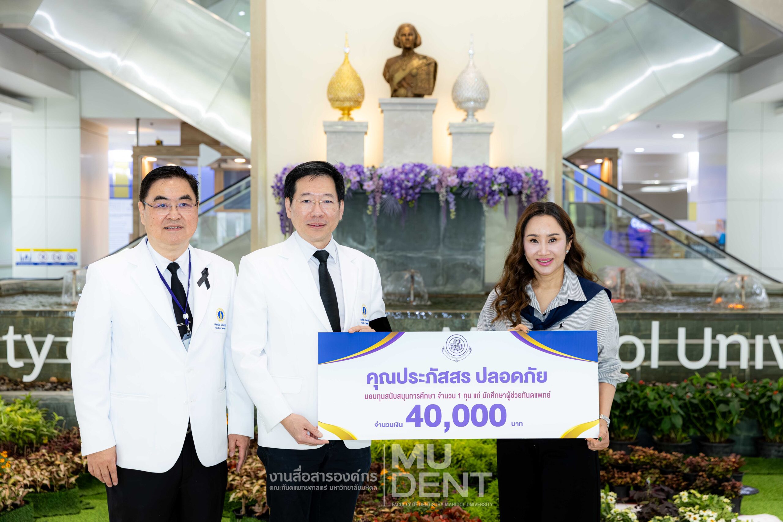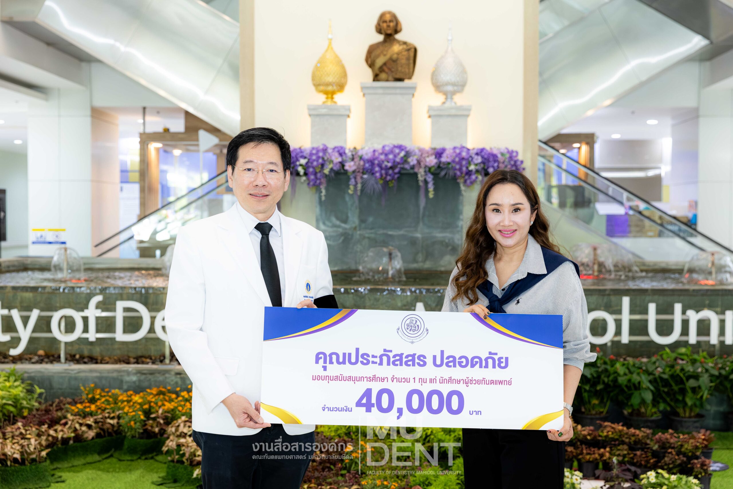 On December 25, 2025, Associate Professor Bundhit Jirajariyavej, Chairman of the Mahidol Dental Foundation and Dean of Faculty of Dentistry, Mahidol University (DTMU), received a donation of 40,000 THB from Ms. Prapatsorn Plodpai.
