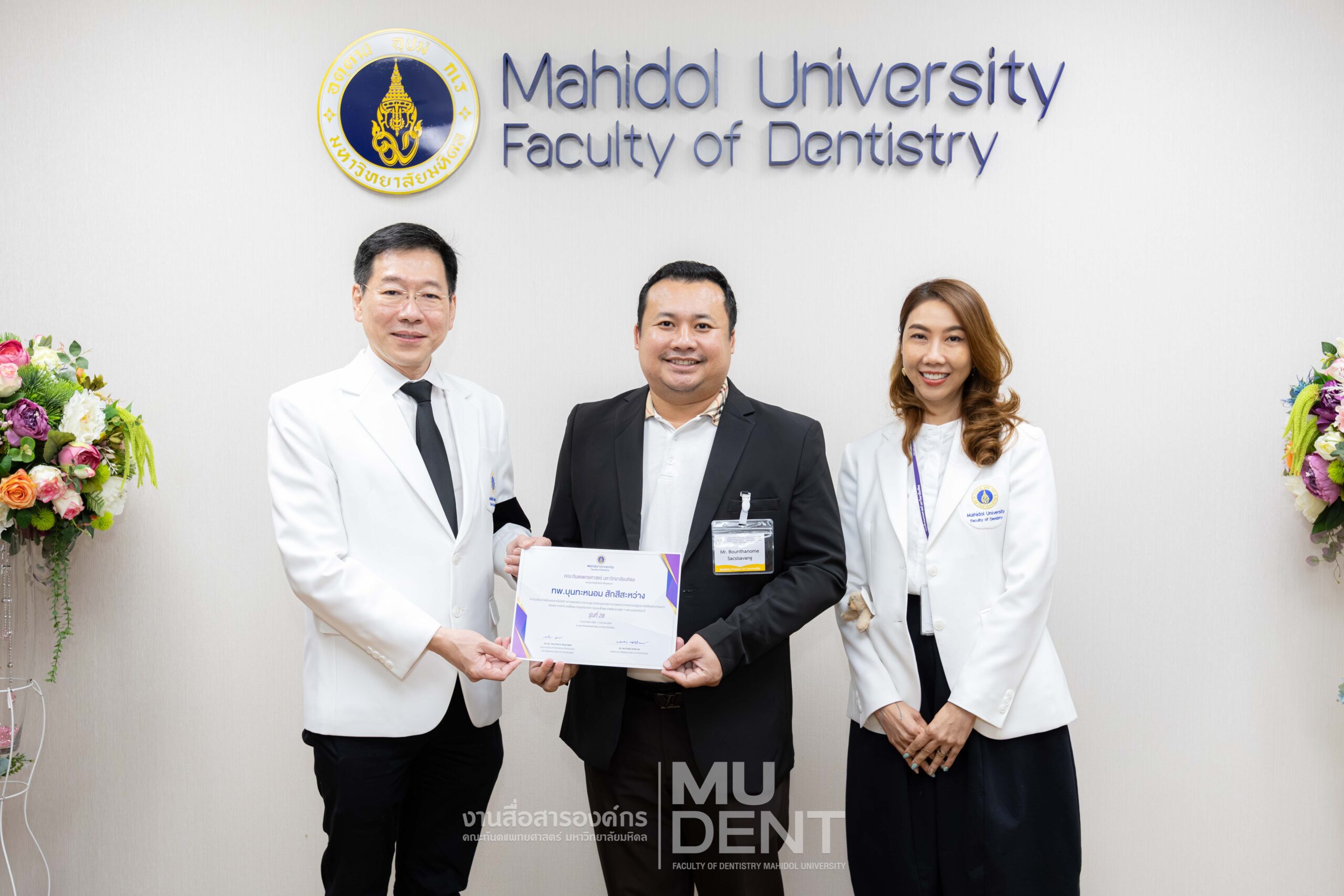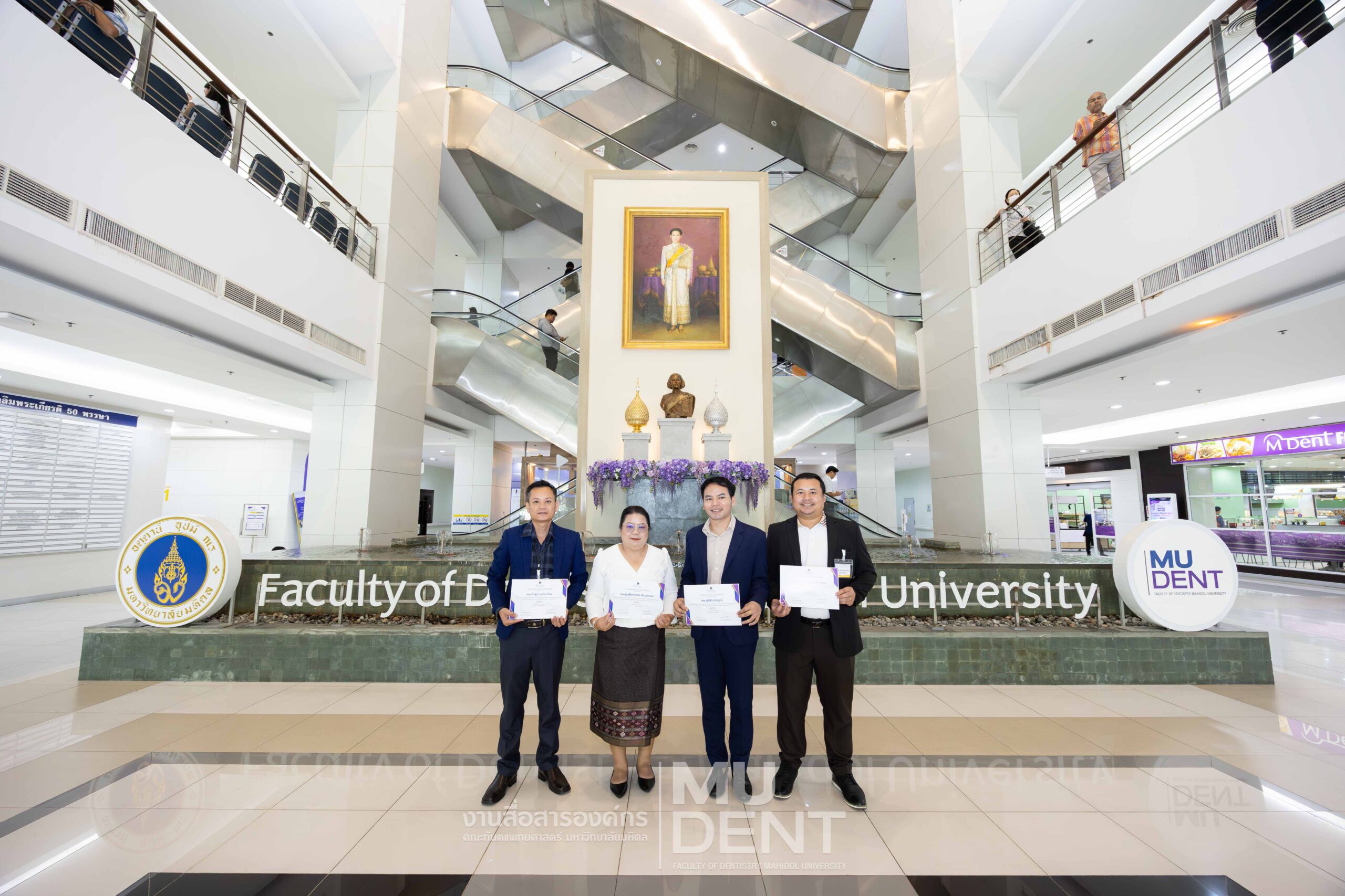 On March 5, 2026, Associate Professor Bundhit Jirajariyavej, Dean of Faculty of Dentistry Mahidol University (DTMU), along with Associate Professor Dr. Tippanart Vichayanrat, Deputy Dean for International Relations and Organizational Communication, executives, and committee members, presented certificates to four dentists from the Lao People’s Democratic Republic (Lao PDR). The delegates successfully completed the Community Dentistry training program held from February 2 – March 5, 2026, at DTMU.