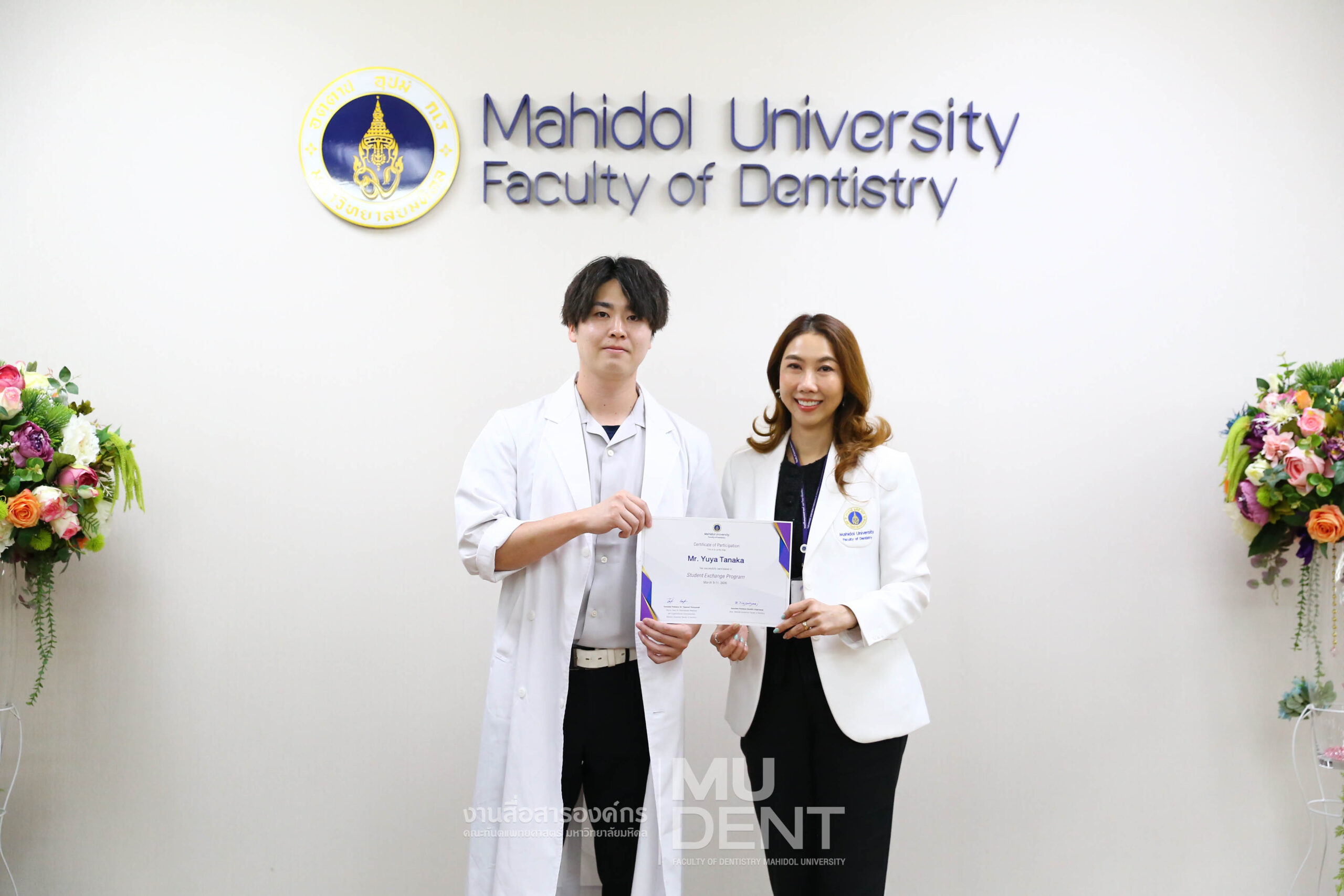 On this occasion, Associate Professor Dr. Tippanart Vichayanrat, Deputy Dean for International Relations and Organizational Communication, DTMU, presented certificates to the students for their participation. The activity was conducted under the Memorandum of Understanding (MoU) on student exchange between the two institutions, reflecting the strong relationship and the continued promotion of internationalization in dental education.