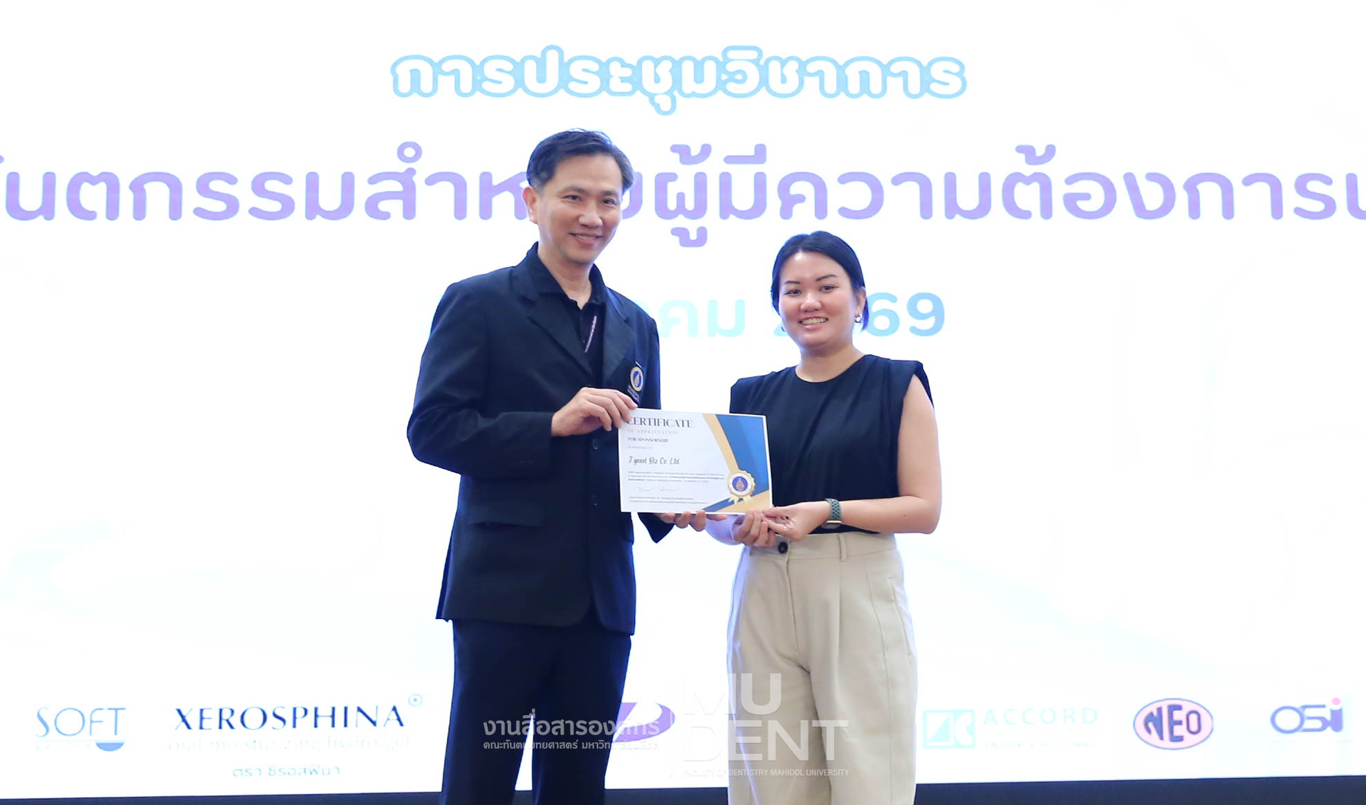 On March 27, 2026, Associate Professor Bundhit Jirajariyavej, Dean of Faculty of Dentistry, Mahidol University (DTMU), presided over the opening ceremony of the academic conference on “Dentistry for Special Needs” at the Debaratana Auditorium on the 4th floor on the 50th Anniversary of H.R.H. Princess Maha Chakri Sirindhorn Building, Faculty of Dentistry, Mahidol University. The event was also broadcasted via a closed Facebook Live group.