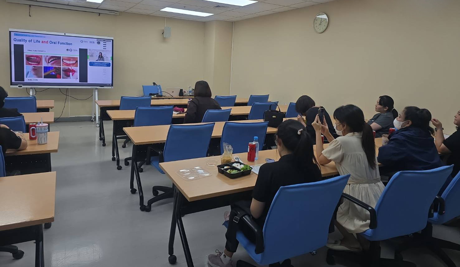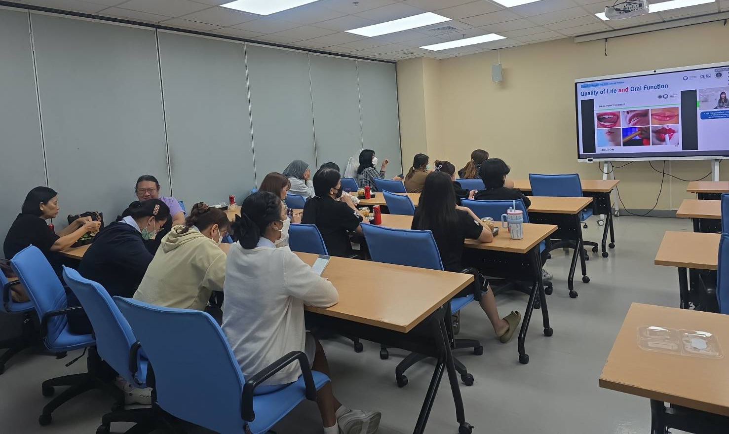 The lecture featured distinguished expert speakers: Lecturer Dr. Raksanan Karawekpanyawong and Lecturer Dr. Sirinthip Amornsuradech. They shared their knowledge and experiences regarding the role of oral healthcare and its impact on daily life, encompassing physical health, mental health, and overall quality of life.