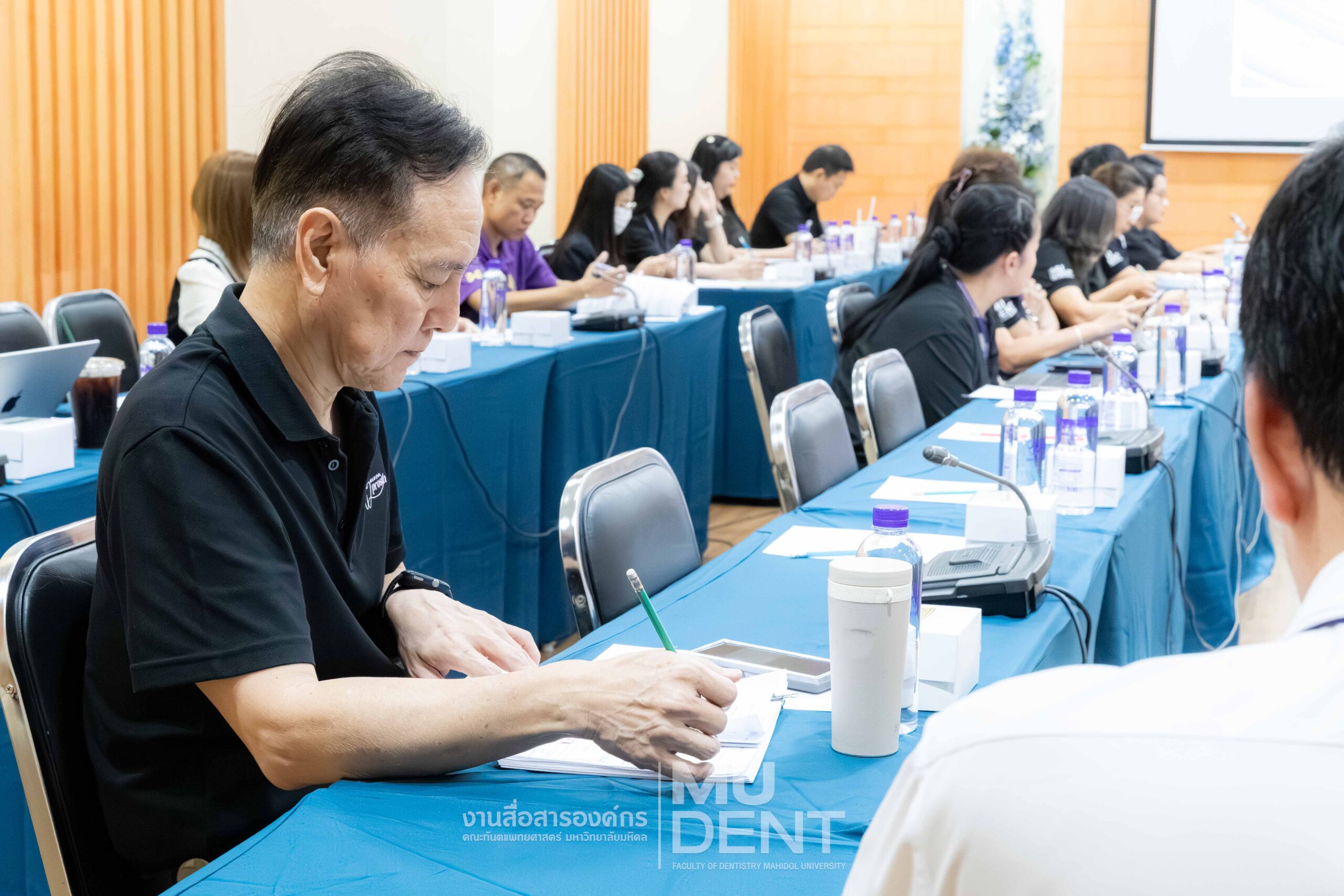 On April 20, 2026, Faculty of Dentistry, Mahidol University (DTMU), held the Risk Management Committee Meeting No. 1/2026 at Meeting Room 301, 3rd Floor, 50th Anniversary of H.R.H. Princess Maha Chakri Sirindhorn Building. Associate Professor Bundhit Jirajariyavej, Dean, presided over the meeting.