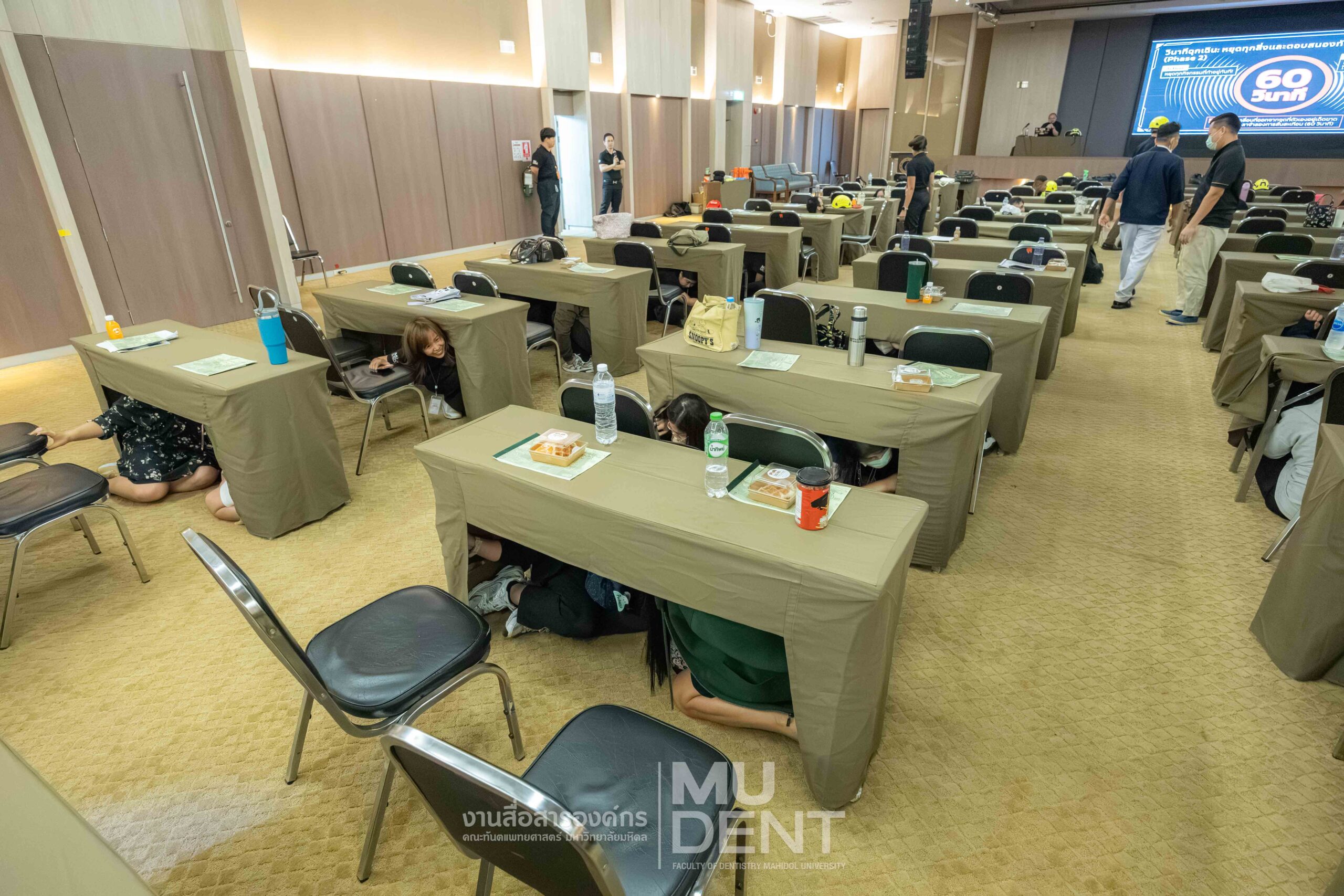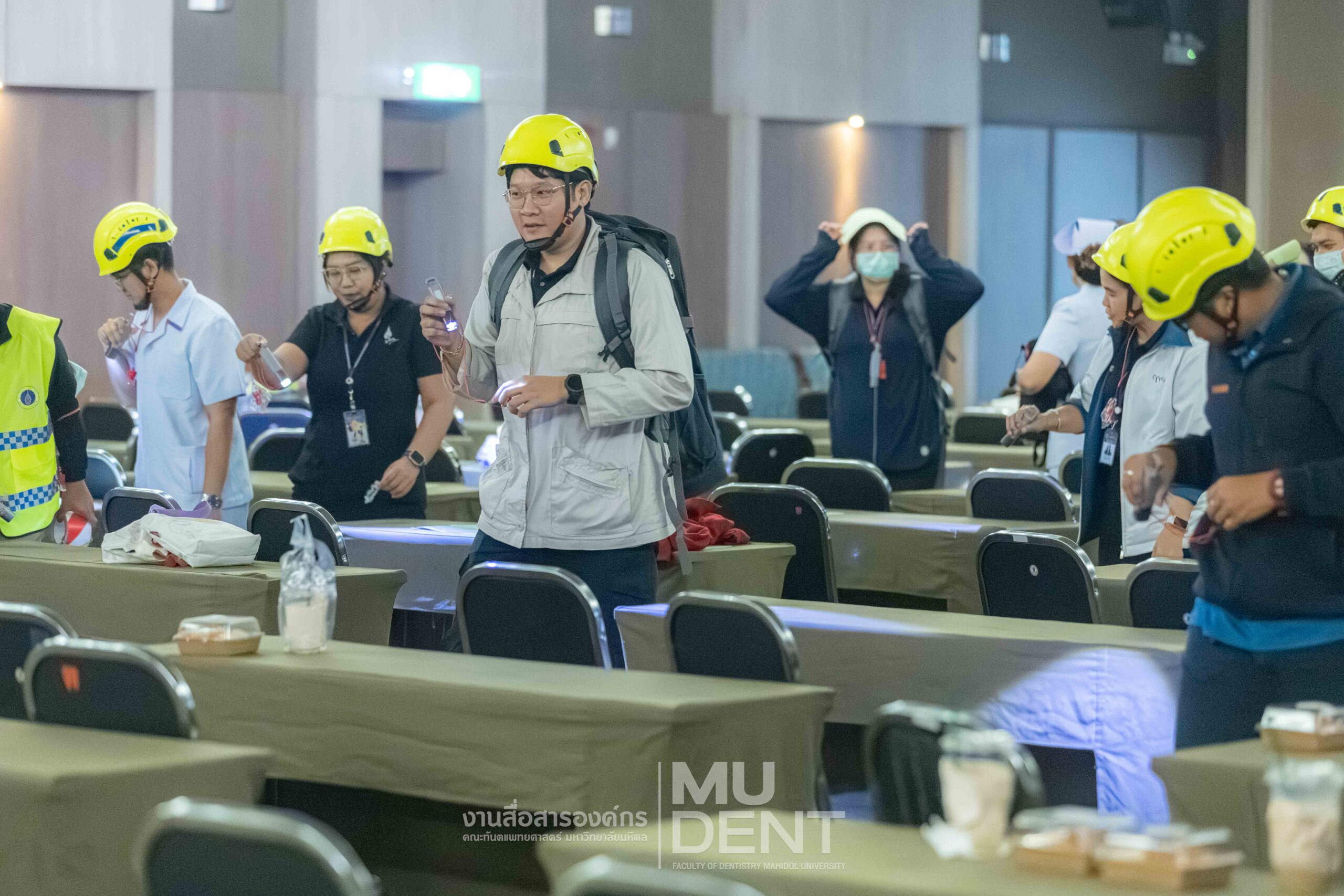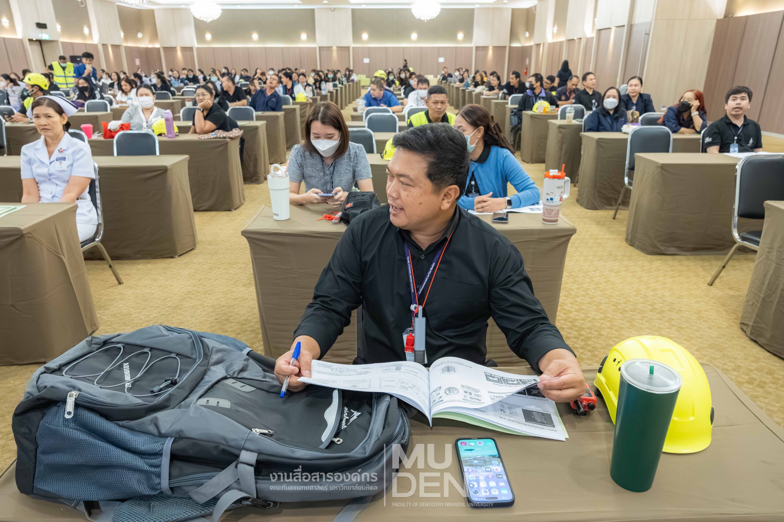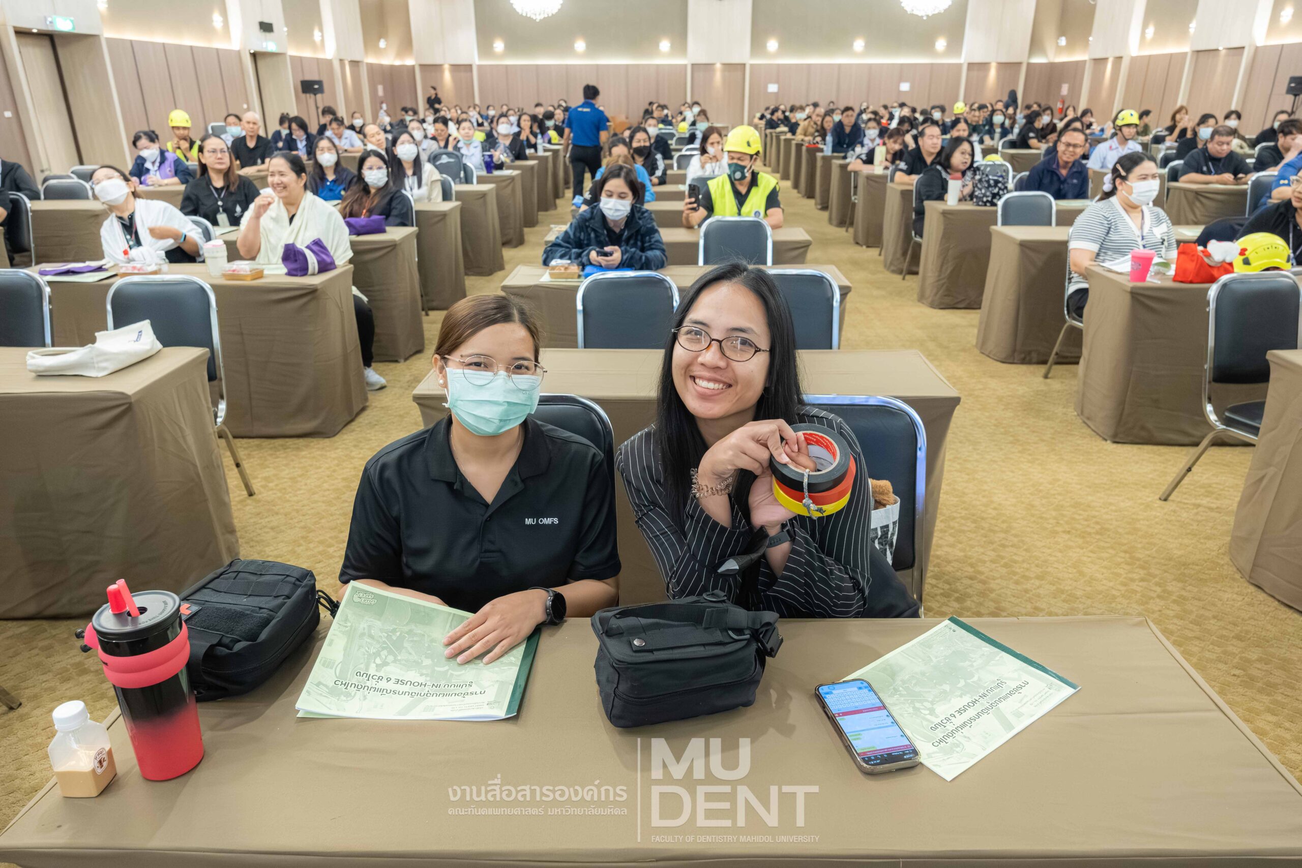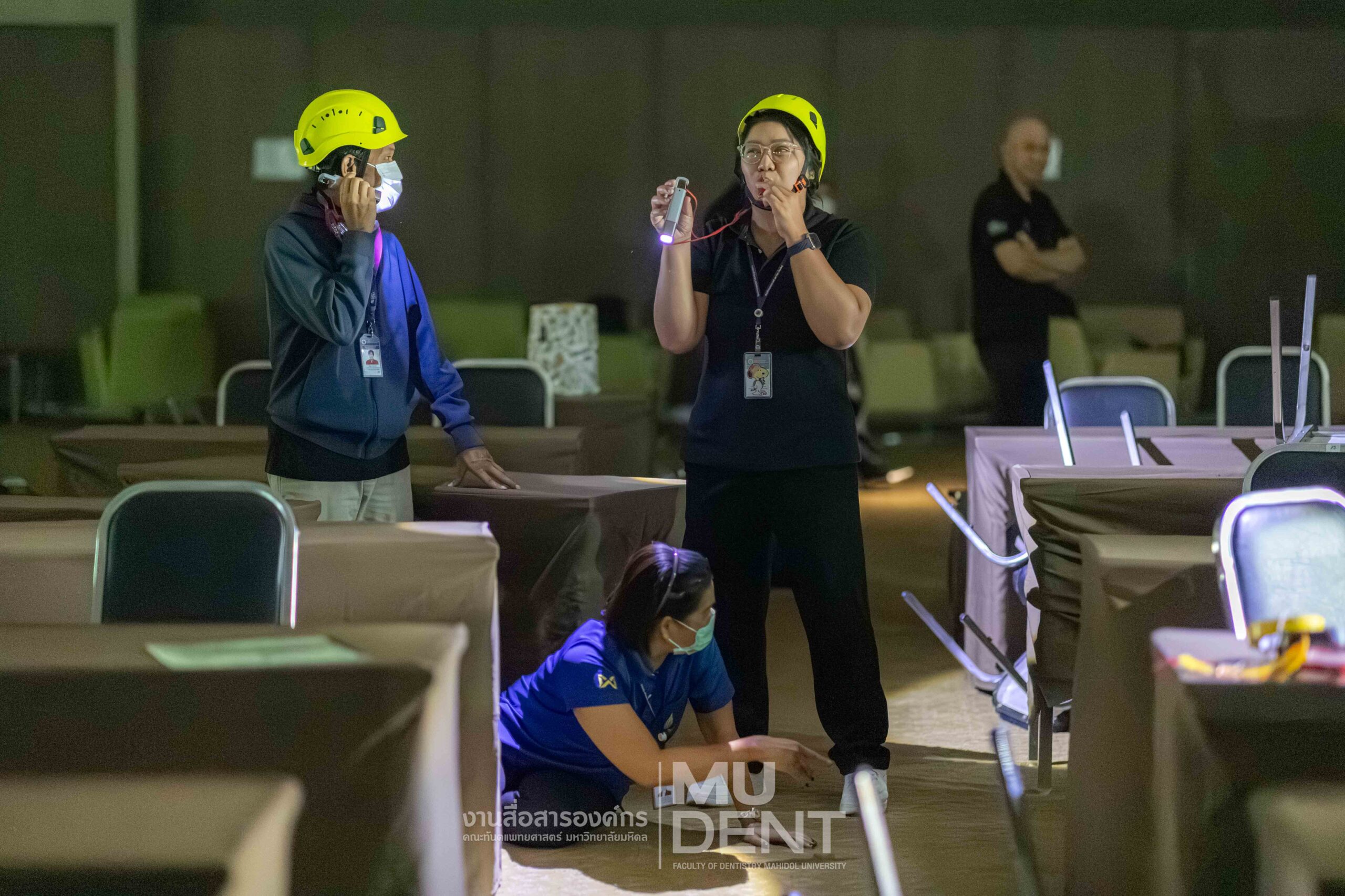 On April 22, 2026, Faculty of Dentistry, Mahidol University (DTMU), organized a practical workshop titled “Earthquake Emergency Drill 2026” at the Debaratana Auditorium, 4th Floor, 50th Anniversary of H.R.H. Princess Maha Chakri Sirindhorn Building. Associate Professor Dr. Pisol Senawongse, Deputy Dean for Research, Facilities and Environment, presided over the opening ceremony.