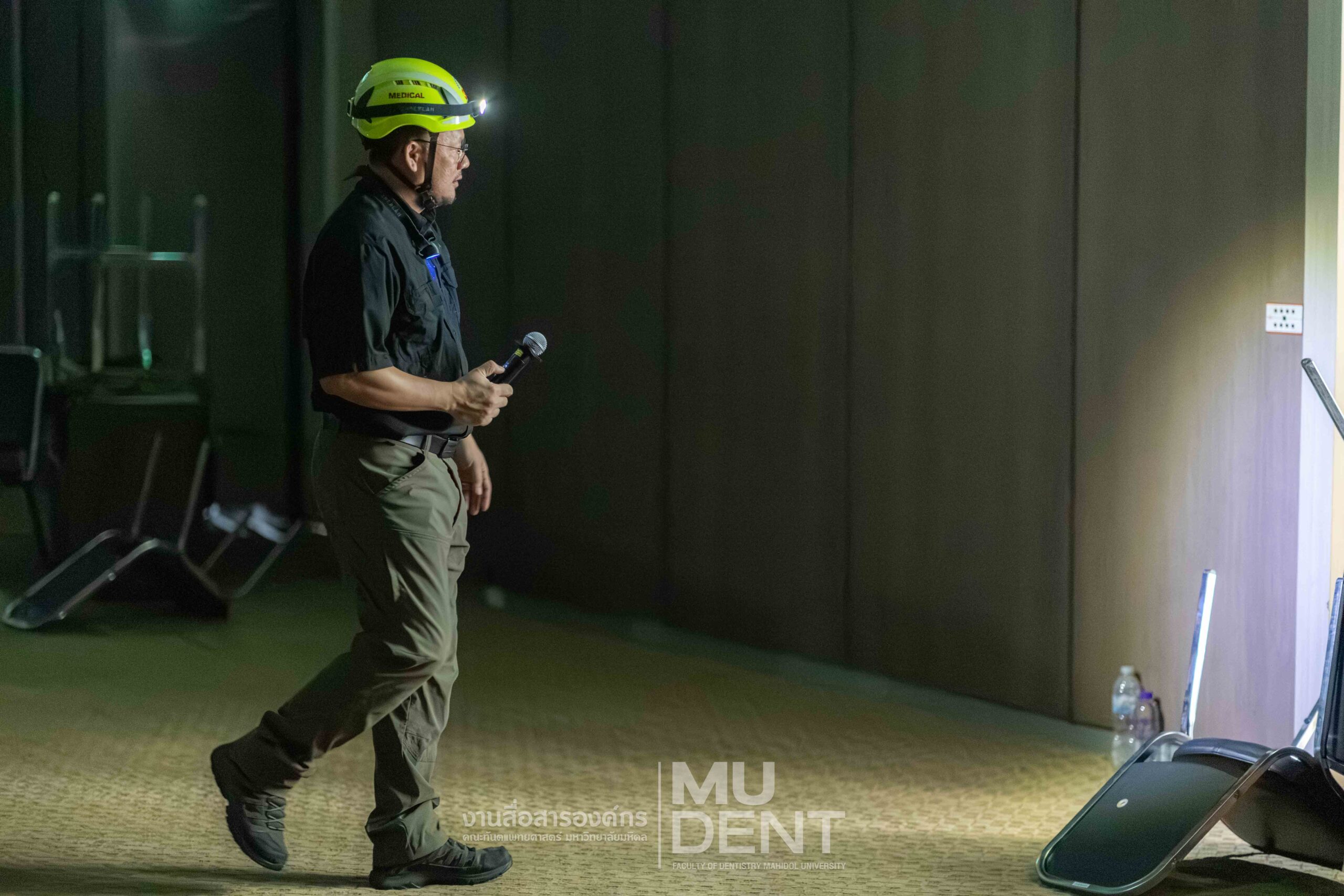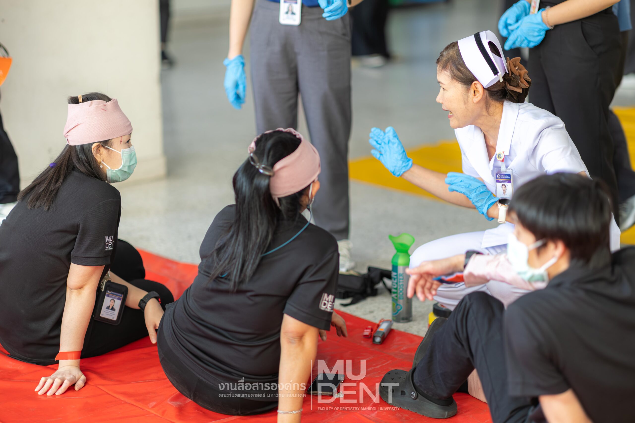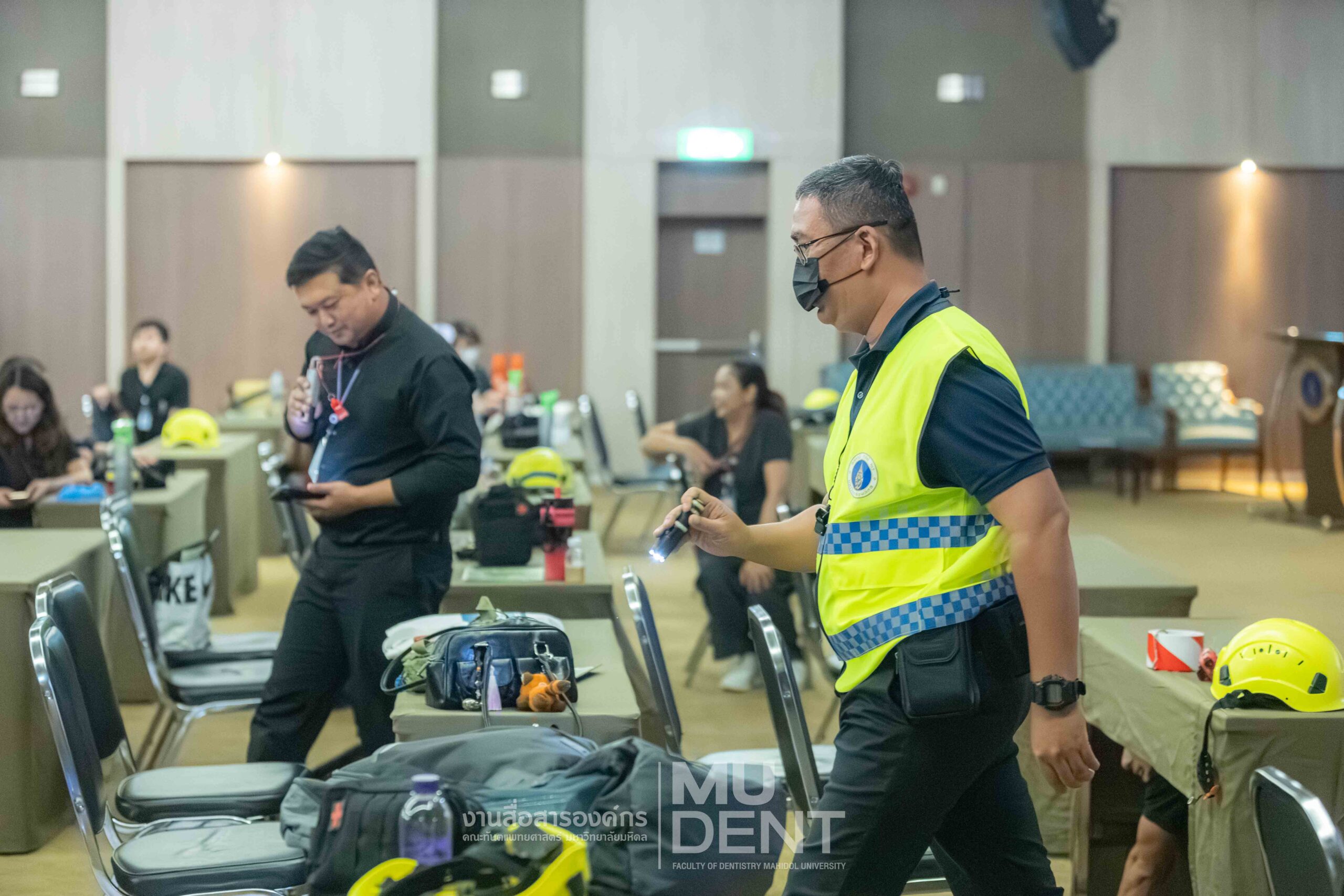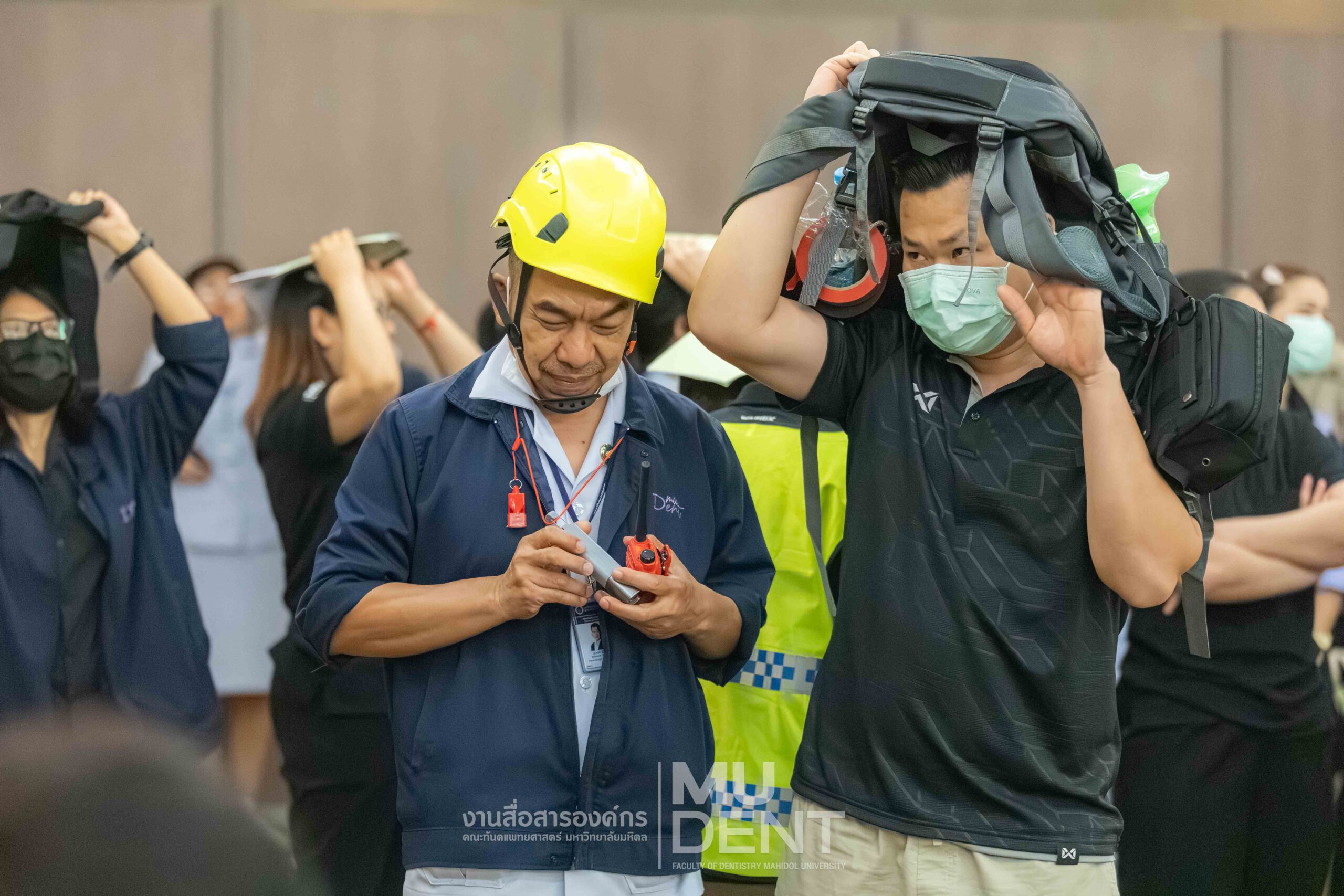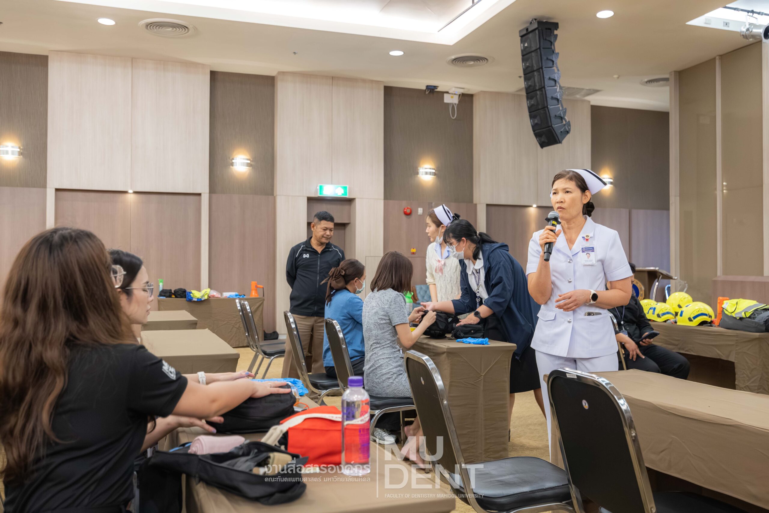 On April 22, 2026, Faculty of Dentistry, Mahidol University (DTMU), organized a practical workshop titled “Earthquake Emergency Drill 2026” at the Debaratana Auditorium, 4th Floor, 50th Anniversary of H.R.H. Princess Maha Chakri Sirindhorn Building. Associate Professor Dr. Pisol Senawongse, Deputy Dean for Research, Facilities and Environment, presided over the opening ceremony.