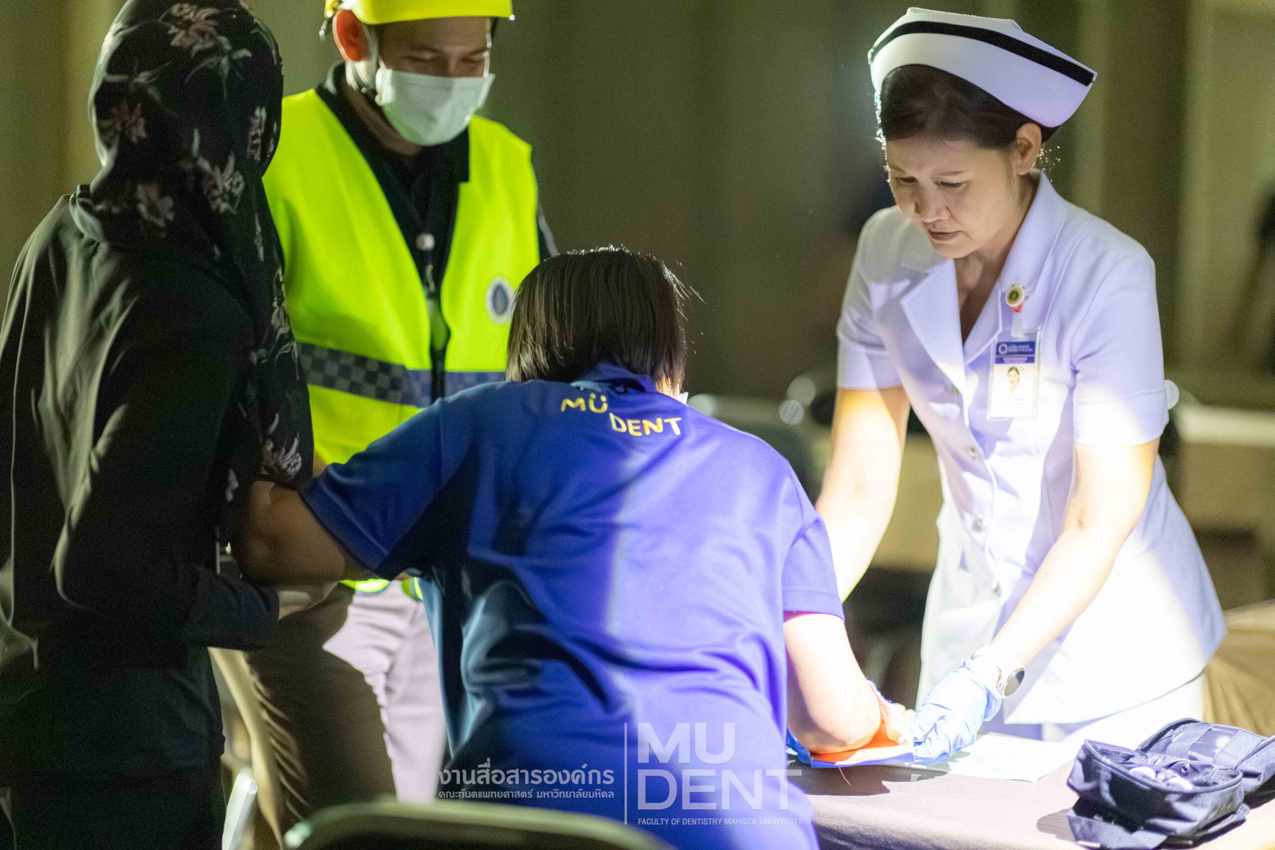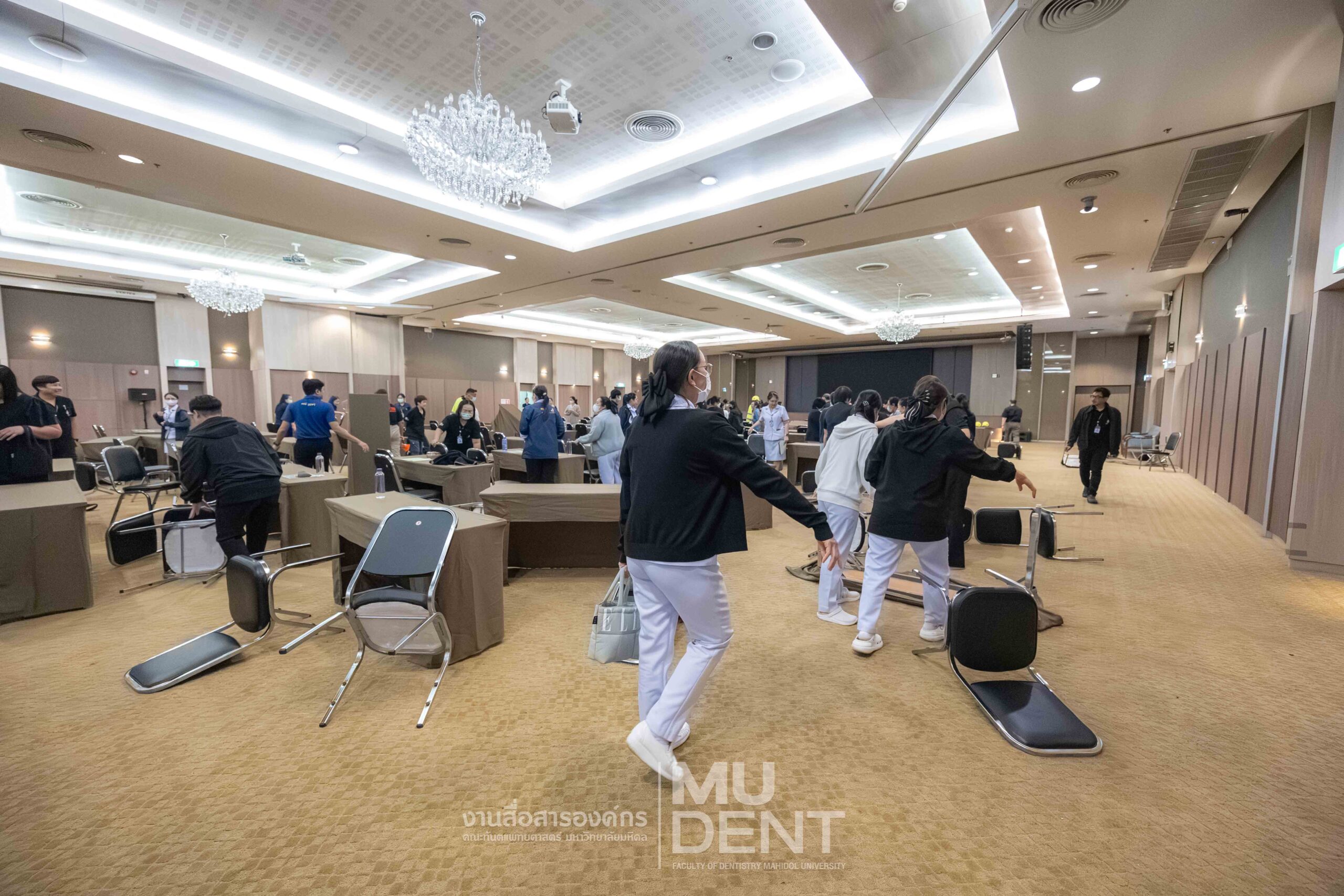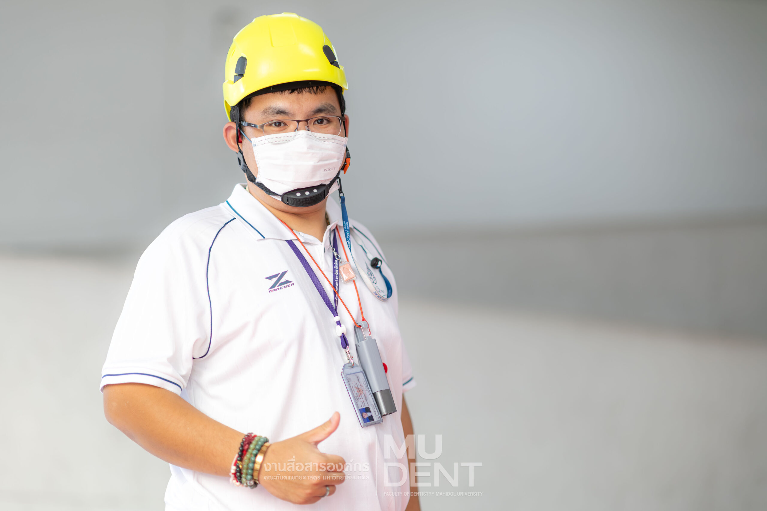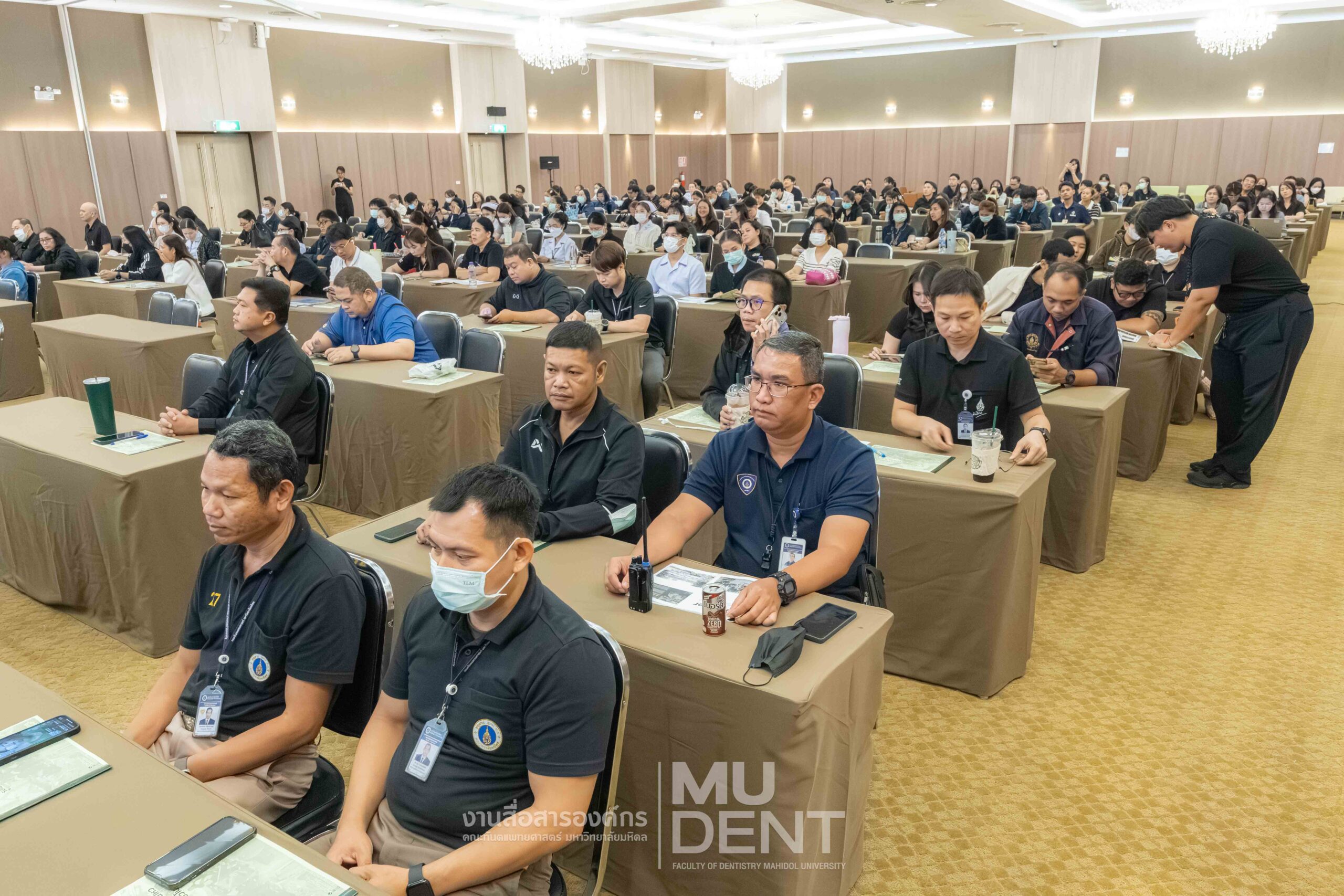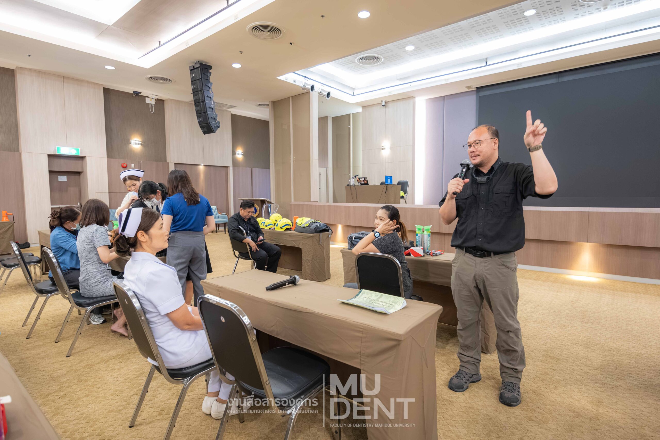 On April 22, 2026, Faculty of Dentistry, Mahidol University (DTMU), organized a practical workshop titled “Earthquake Emergency Drill 2026” at the Debaratana Auditorium, 4th Floor, 50th Anniversary of H.R.H. Princess Maha Chakri Sirindhorn Building. Associate Professor Dr. Pisol Senawongse, Deputy Dean for Research, Facilities and Environment, presided over the opening ceremony.