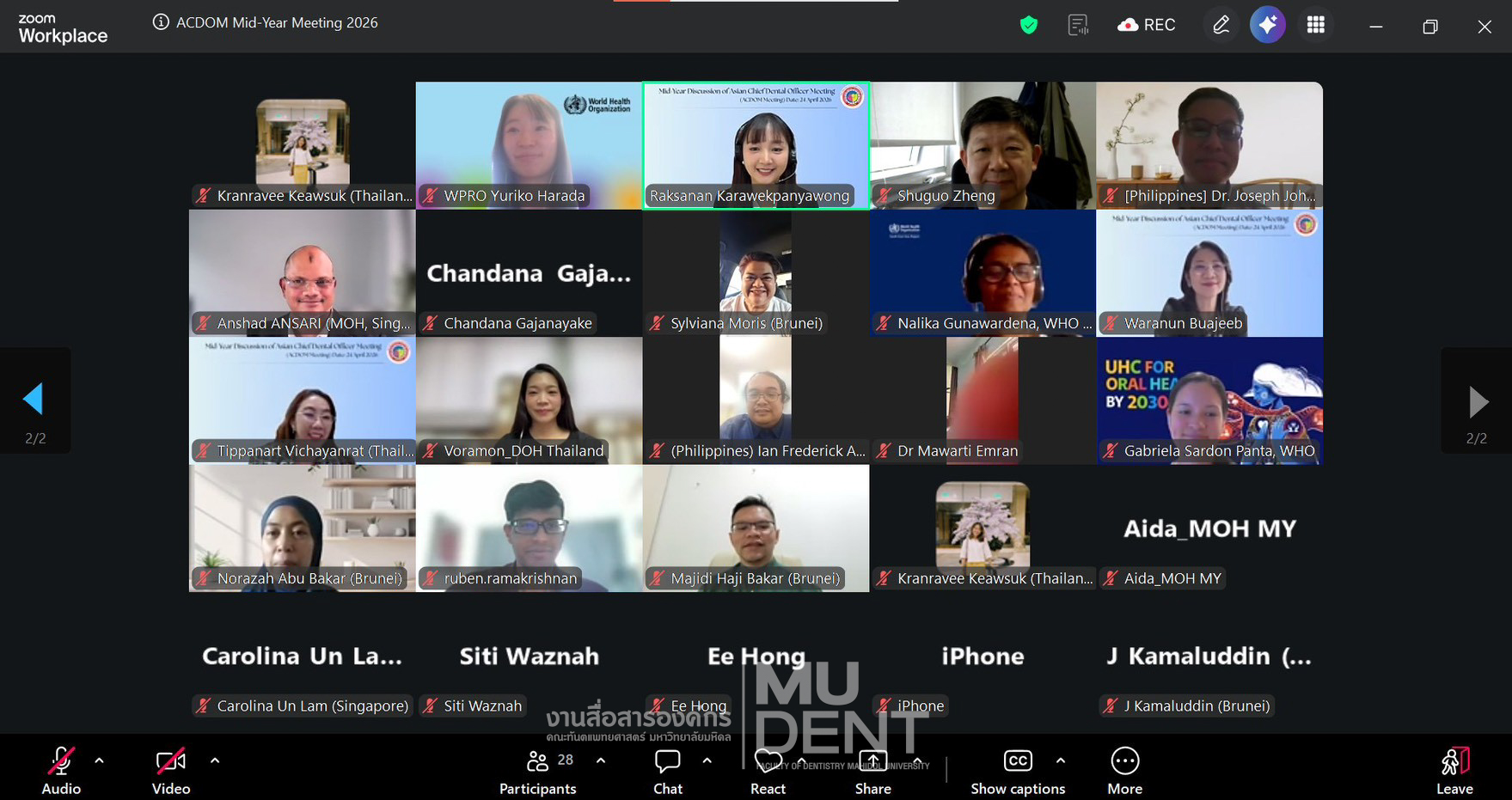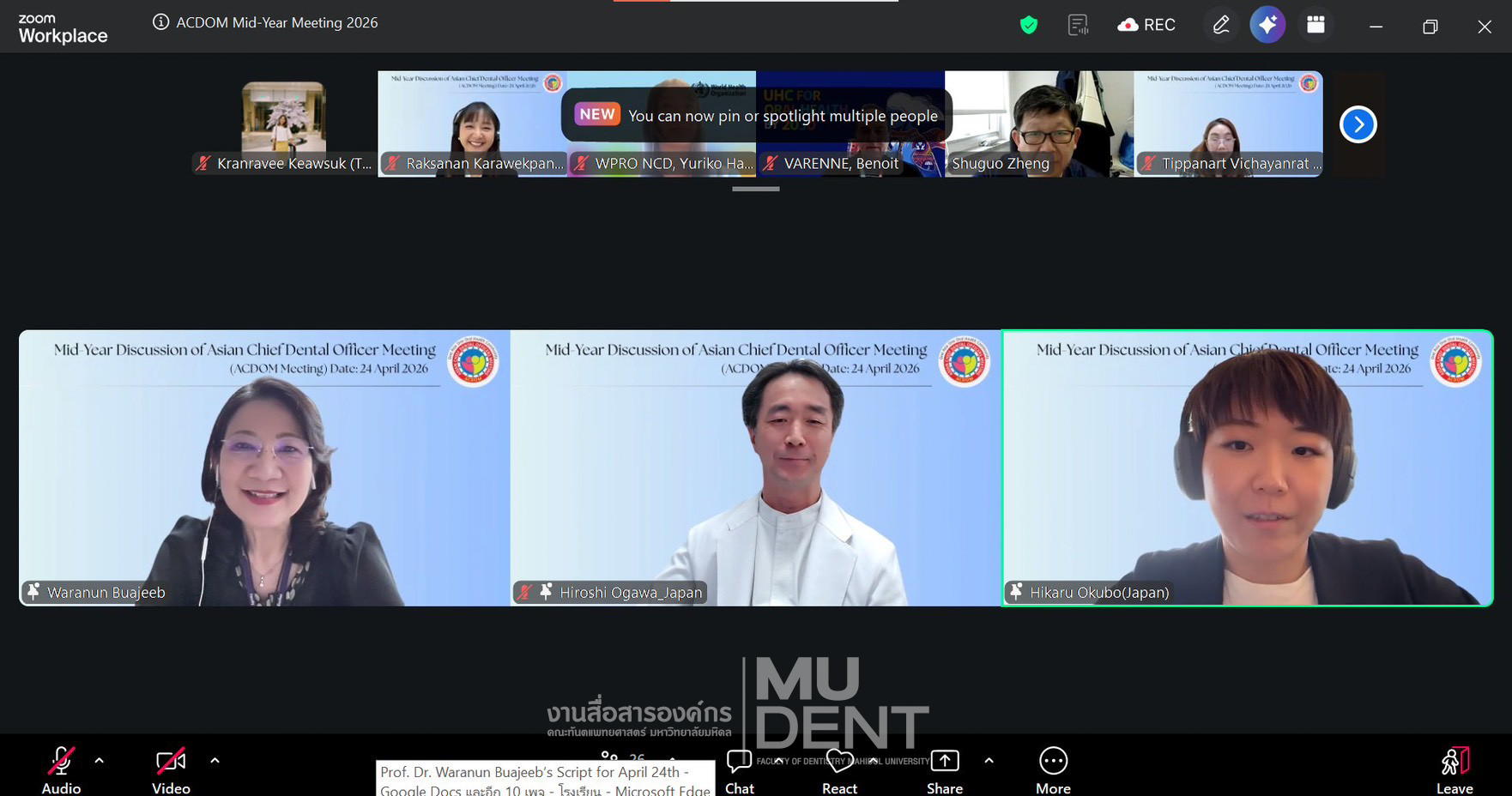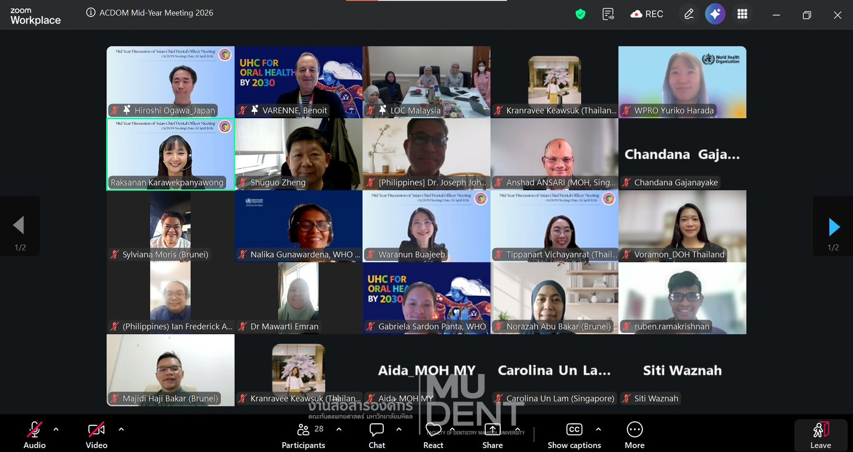 On April 24, 2026, Faculty of Dentistry, Mahidol University (DTMU), co-organized “Mid-Year Discussion of Asian Chief Dental Officers Meeting 2026” via Zoom. The delegation was led by Professor Dr. Waranun Buajeeb, Dean’s Advisor and Director of the WHO Collaborating Centre for Oral Health Education and Research at Faculty of Dentistry, Mahidol University, along with Associate Professor Dr. Tippanart Vichayanrat, Deputy Dean for International Relations and Organizational Communication and Lecturer Dr. Raksanan Karawekpanyawong from the Department of Community Dentistry, both of whom serve as WHO CC Committee Members and Co-Secretariats of ACDOM.