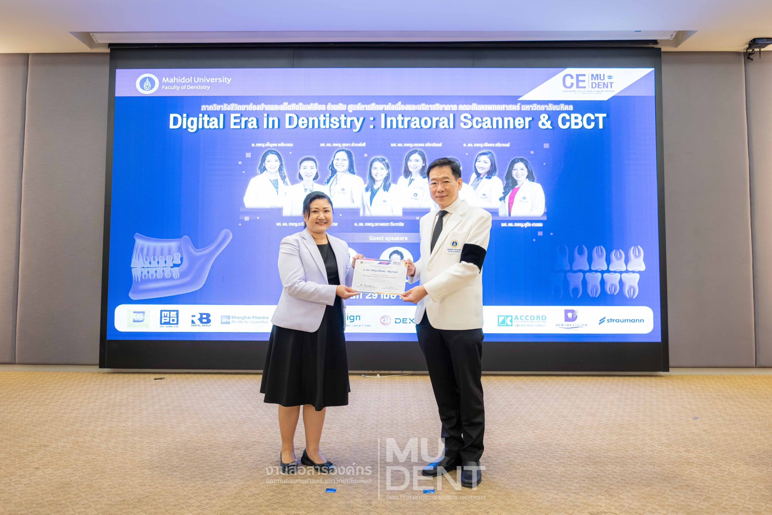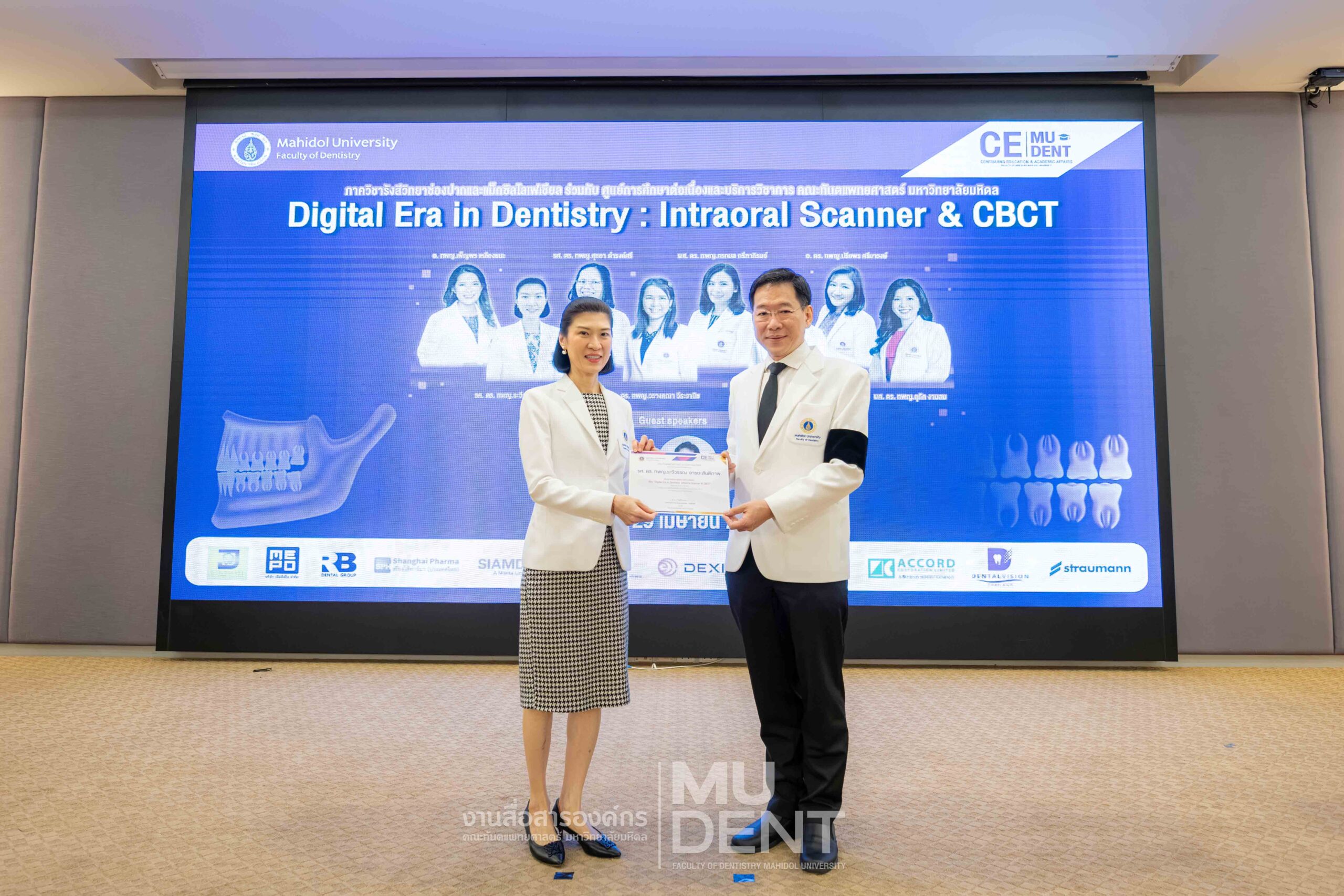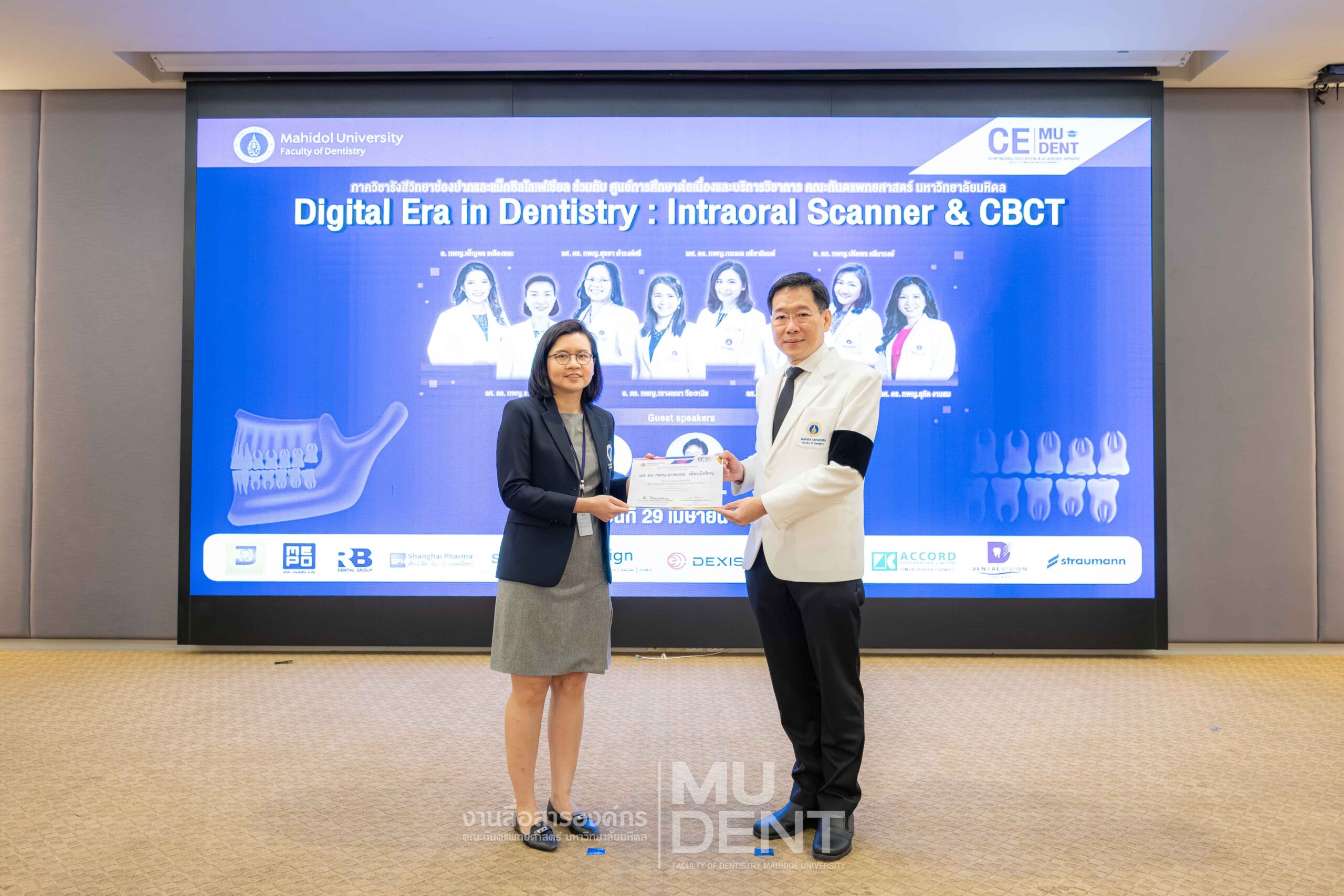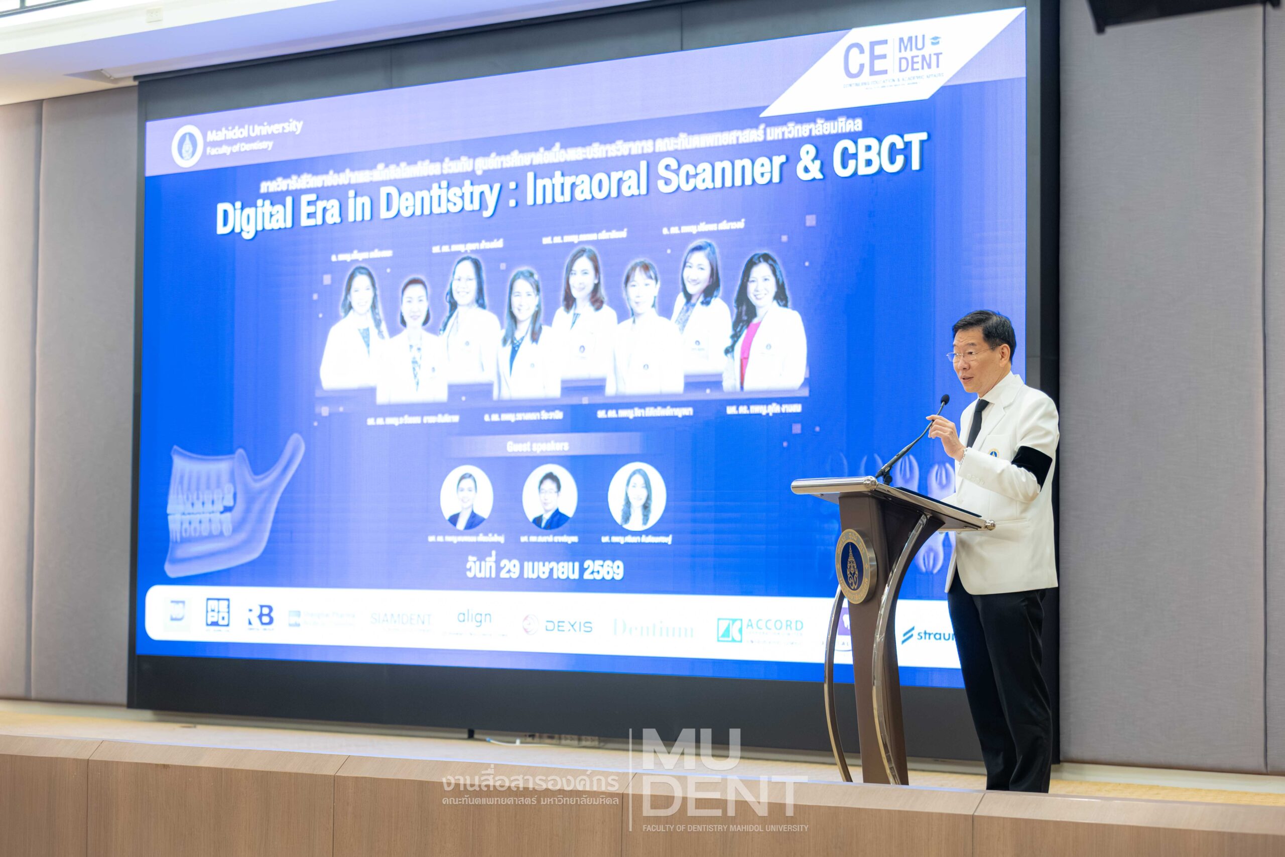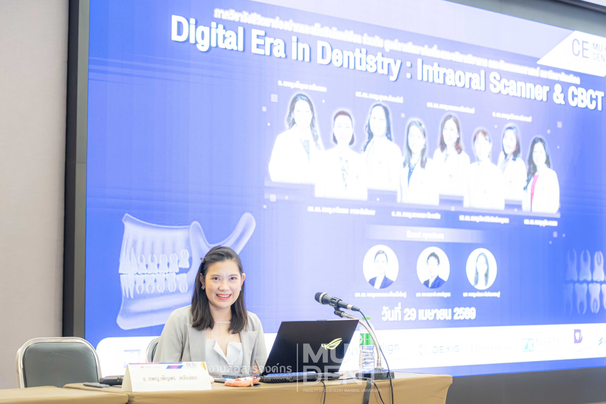 On April 29, 2026, Department of Oral and Maxillofacial Radiology, in collaboration with The Continuing Dental Education Center and Academic Affairs section, Faculty of Dentistry, Mahidol University (DTMU), organized an academic event titled “Digital Era in Dentistry: Intraoral Scanner & CBCT.” The event was held at the Debaratana Auditorium, 4th Floor, 50th Anniversary of H.R.H. Princess Maha Chakri Sirindhorn Building, aiming to promote learning and enhance digital technology skills in modern dental practices.