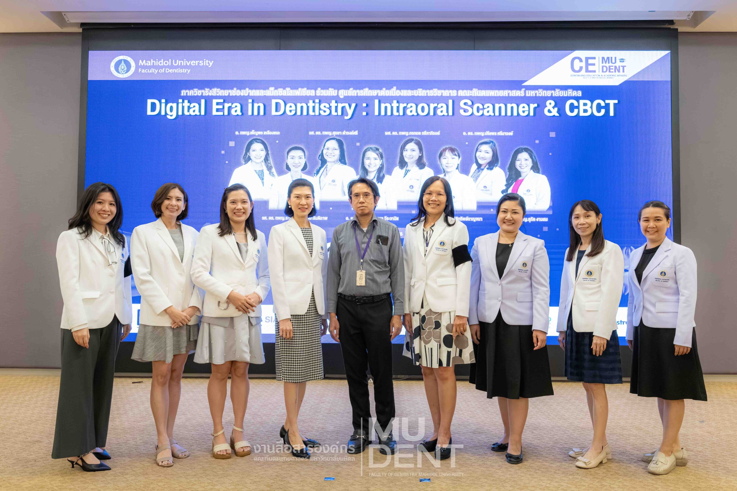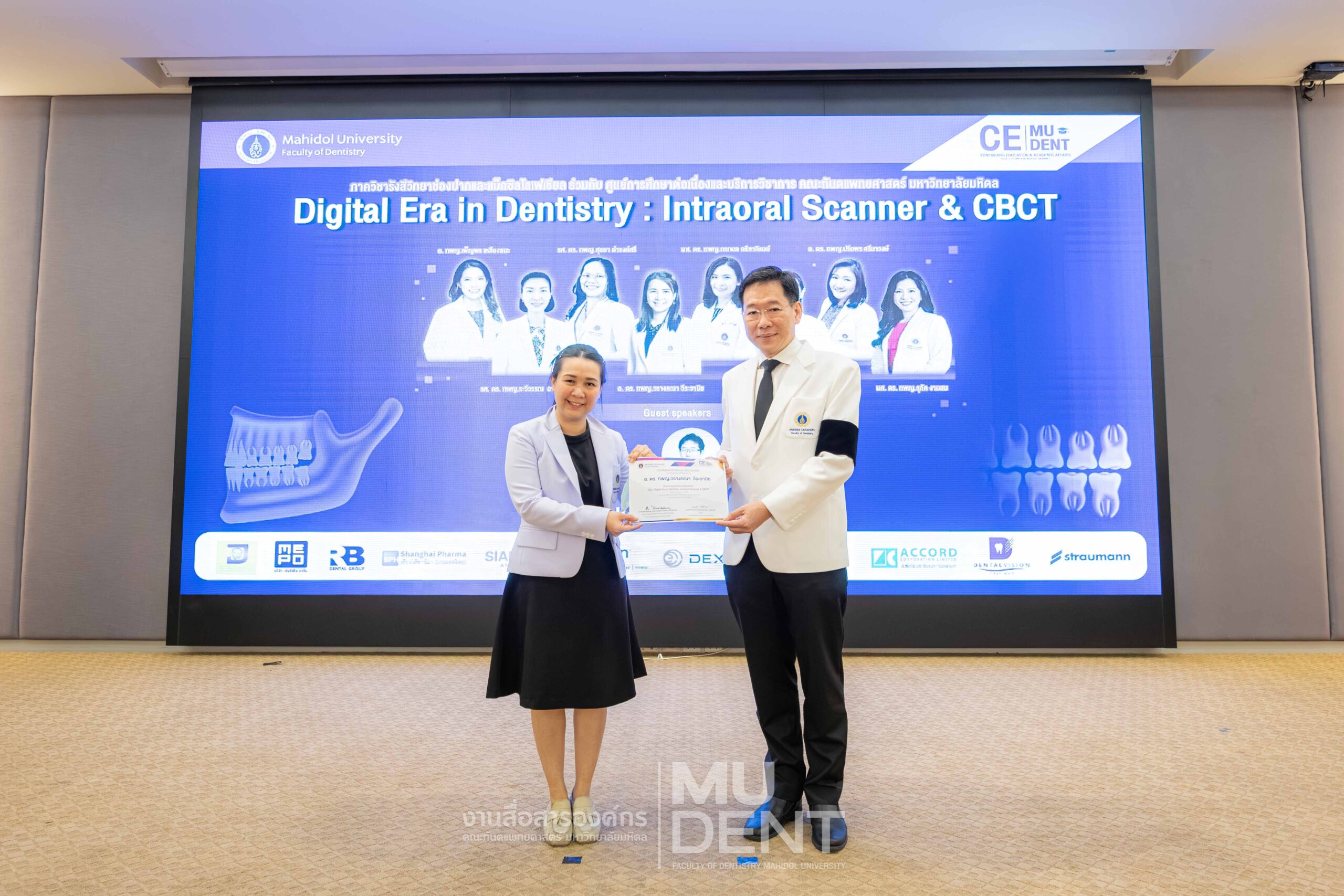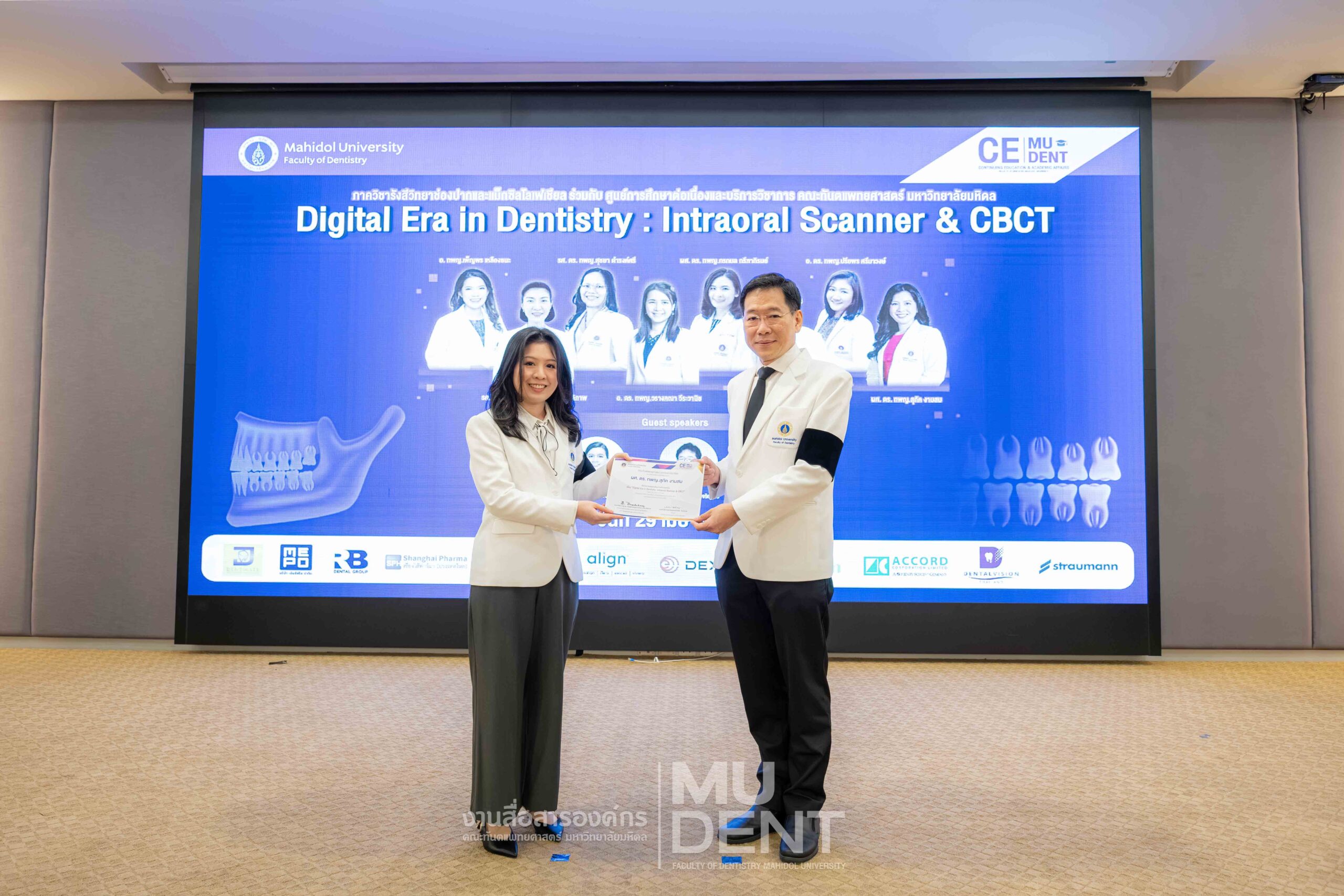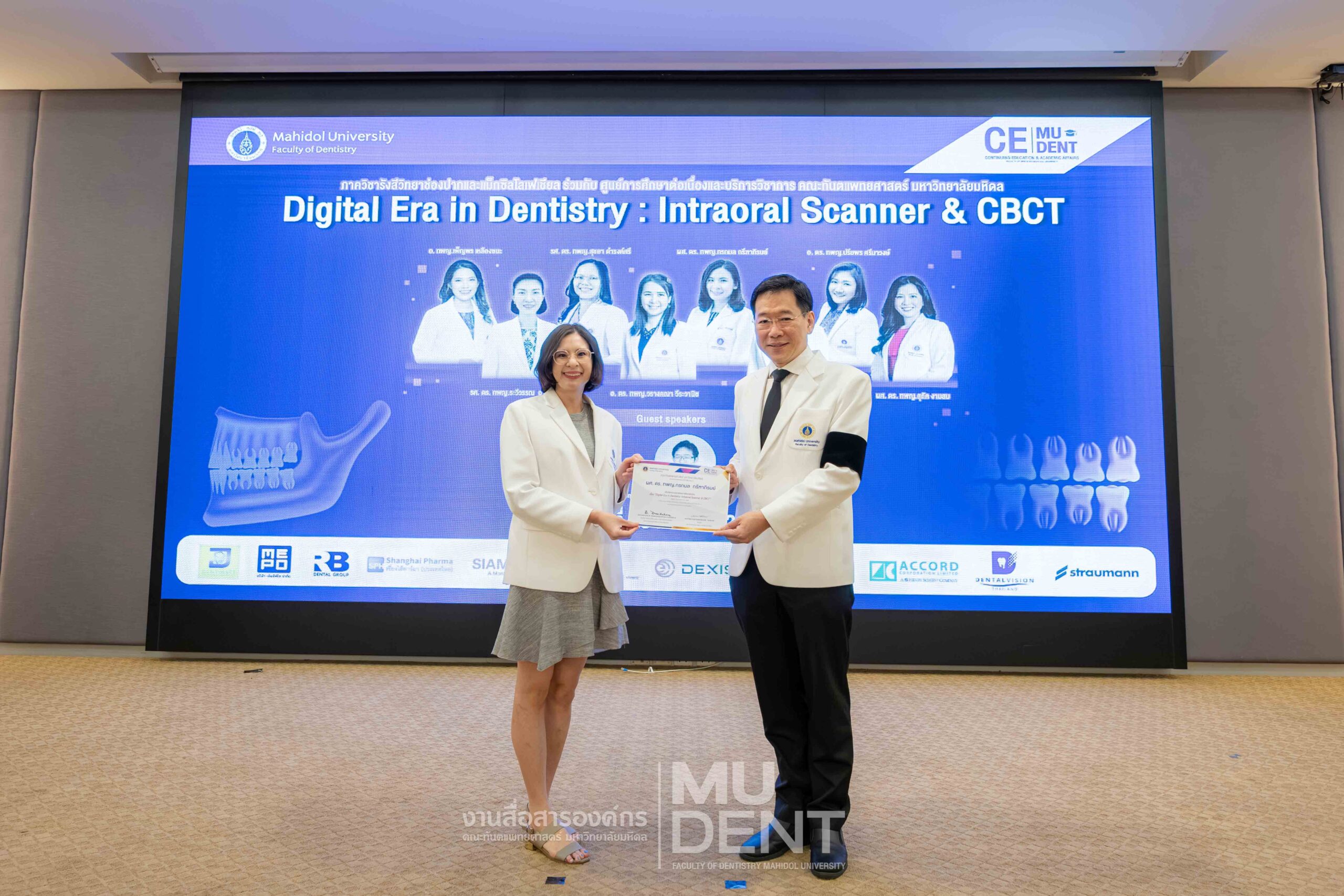 On April 29, 2026, Department of Oral and Maxillofacial Radiology, in collaboration with The Continuing Dental Education Center and Academic Affairs section, Faculty of Dentistry, Mahidol University (DTMU), organized an academic event titled “Digital Era in Dentistry: Intraoral Scanner & CBCT.” The event was held at the Debaratana Auditorium, 4th Floor, 50th Anniversary of H.R.H. Princess Maha Chakri Sirindhorn Building, aiming to promote learning and enhance digital technology skills in modern dental practices.