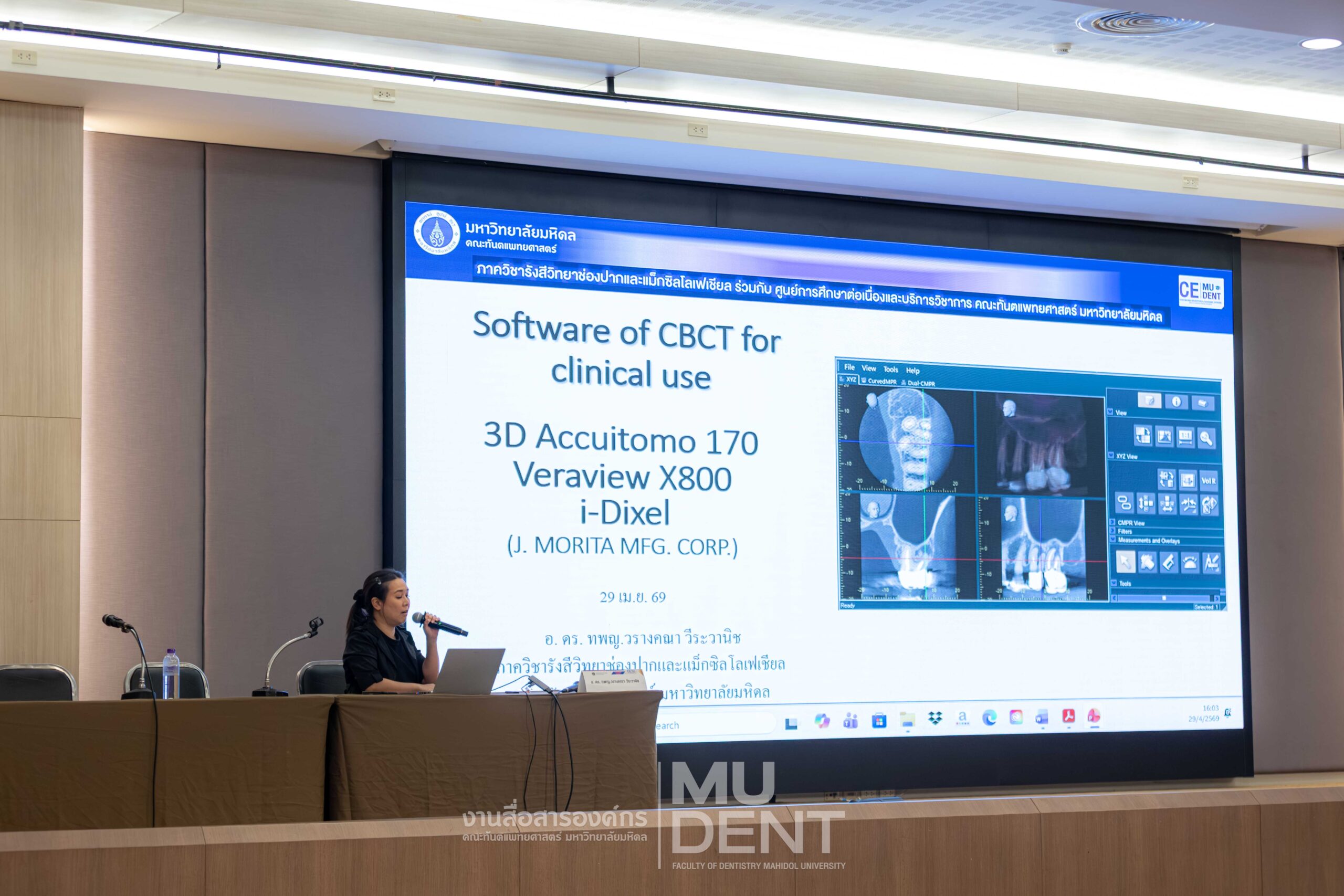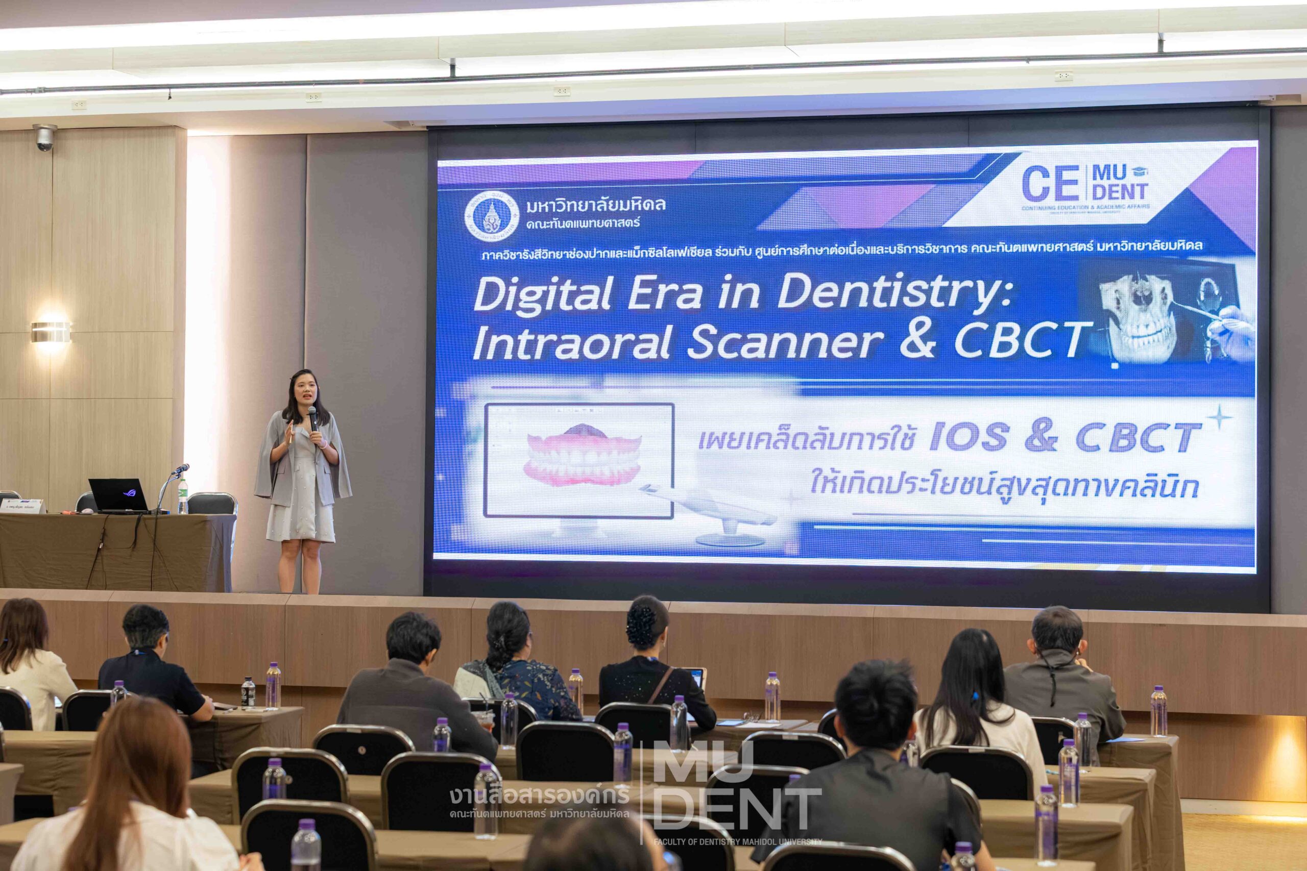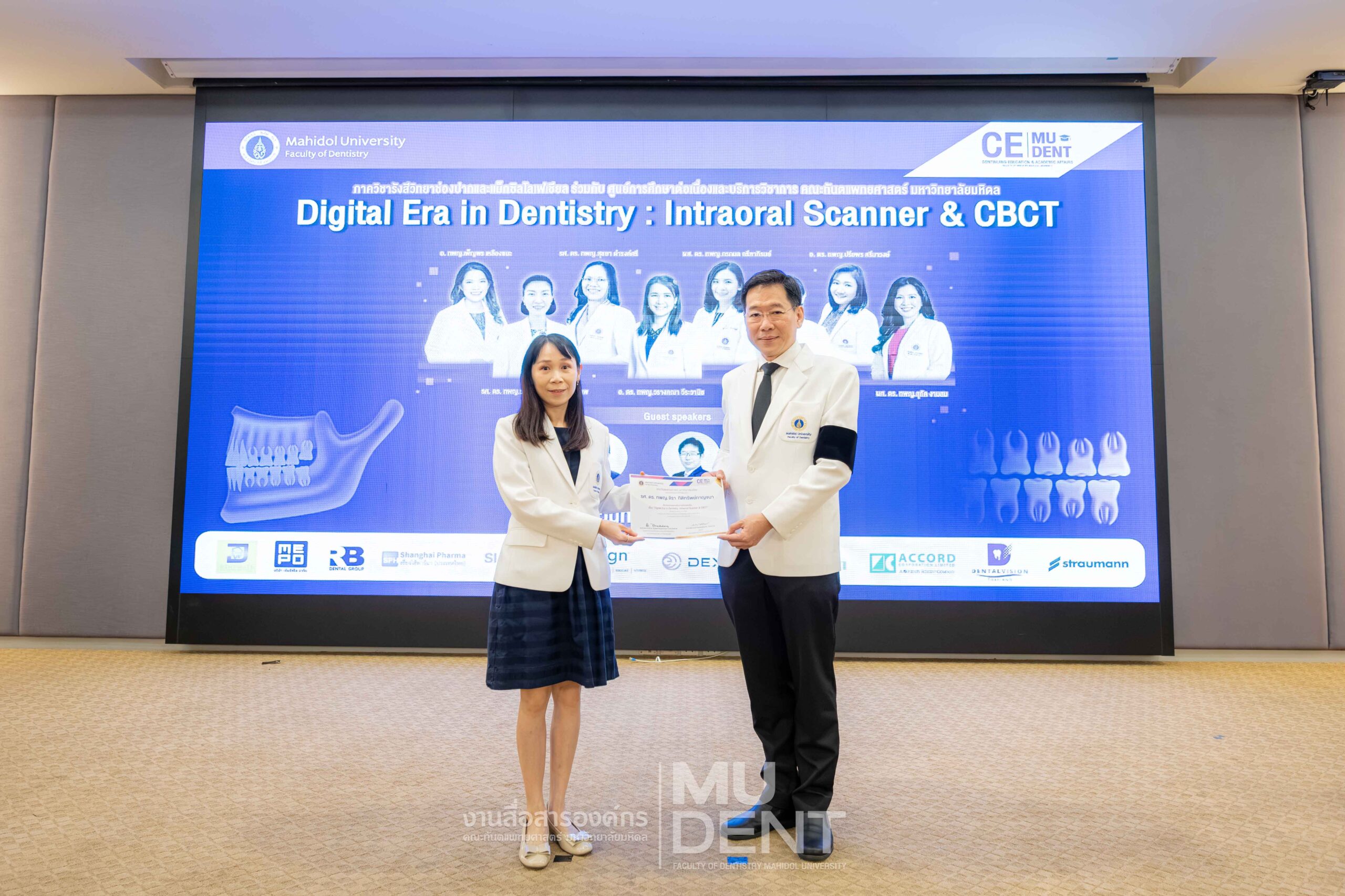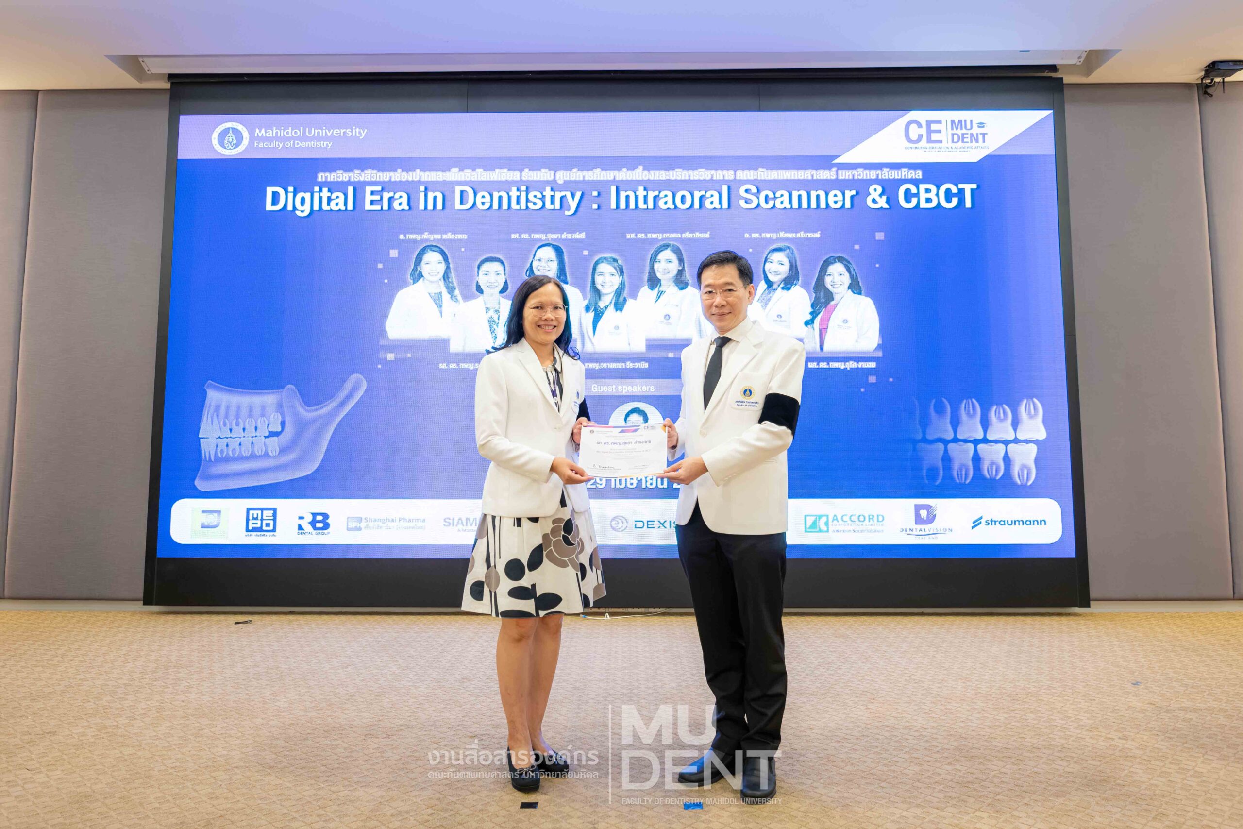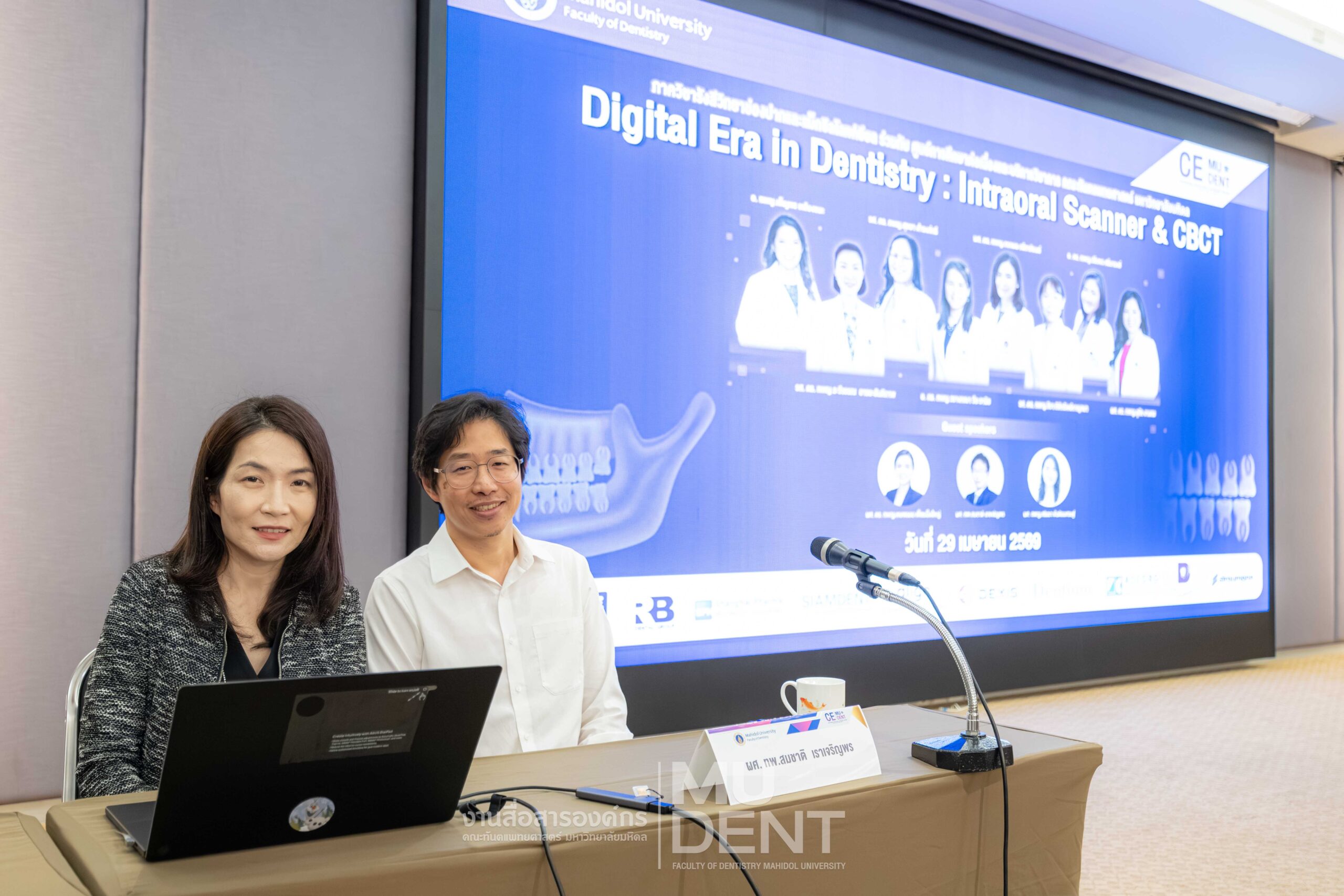 On April 29, 2026, Department of Oral and Maxillofacial Radiology, in collaboration with The Continuing Dental Education Center and Academic Affairs section, Faculty of Dentistry, Mahidol University (DTMU), organized an academic event titled “Digital Era in Dentistry: Intraoral Scanner & CBCT.” The event was held at the Debaratana Auditorium, 4th Floor, 50th Anniversary of H.R.H. Princess Maha Chakri Sirindhorn Building, aiming to promote learning and enhance digital technology skills in modern dental practices.