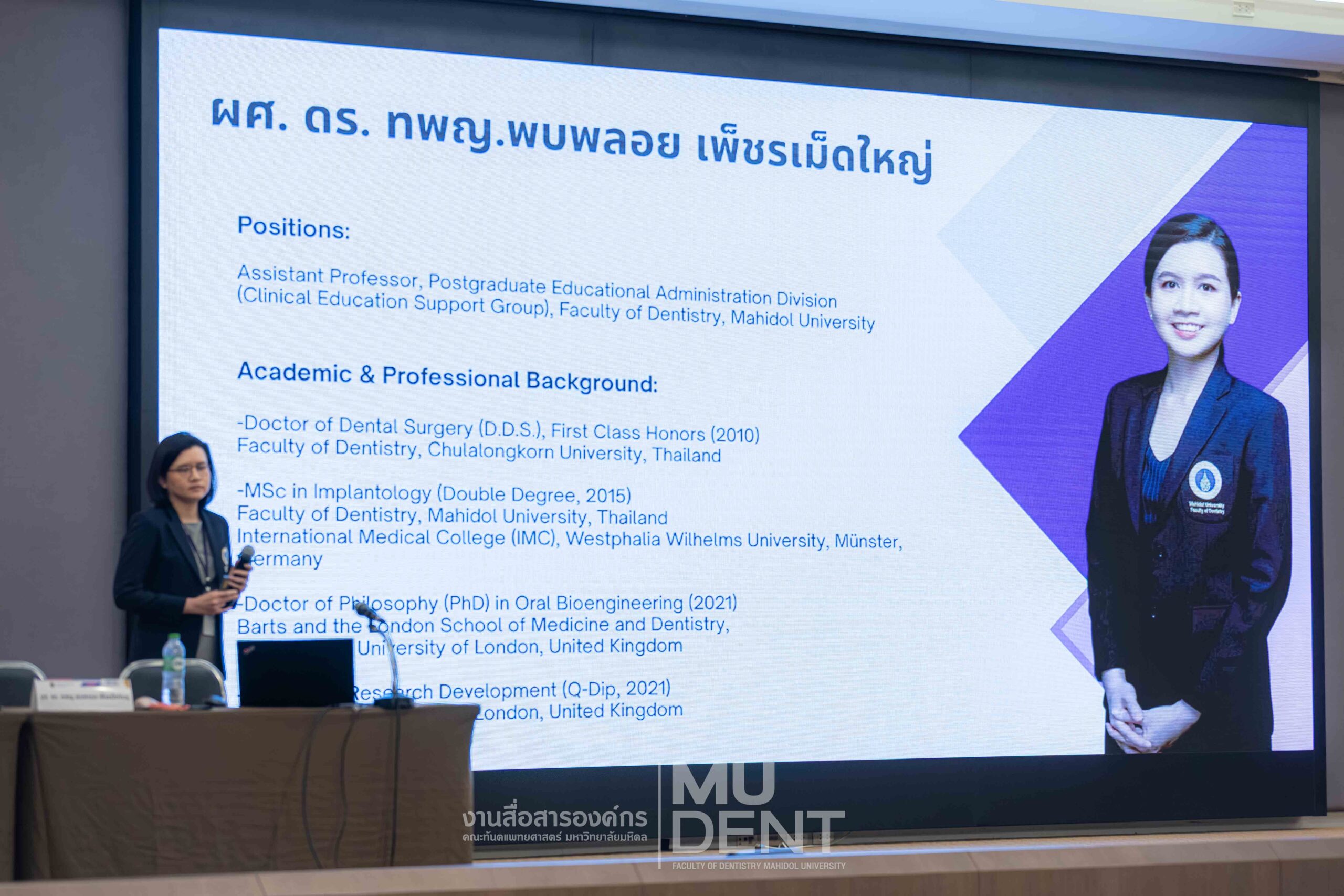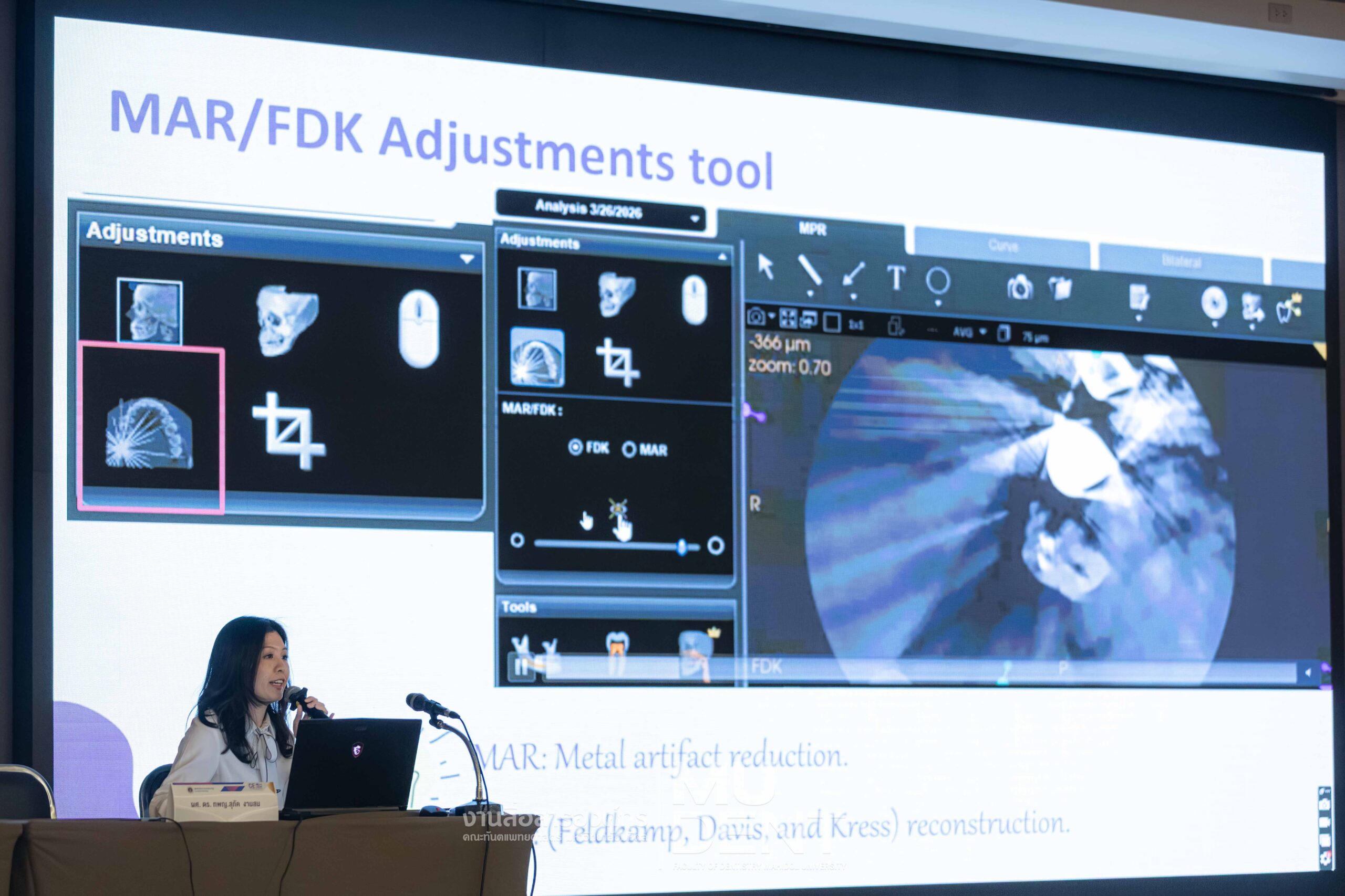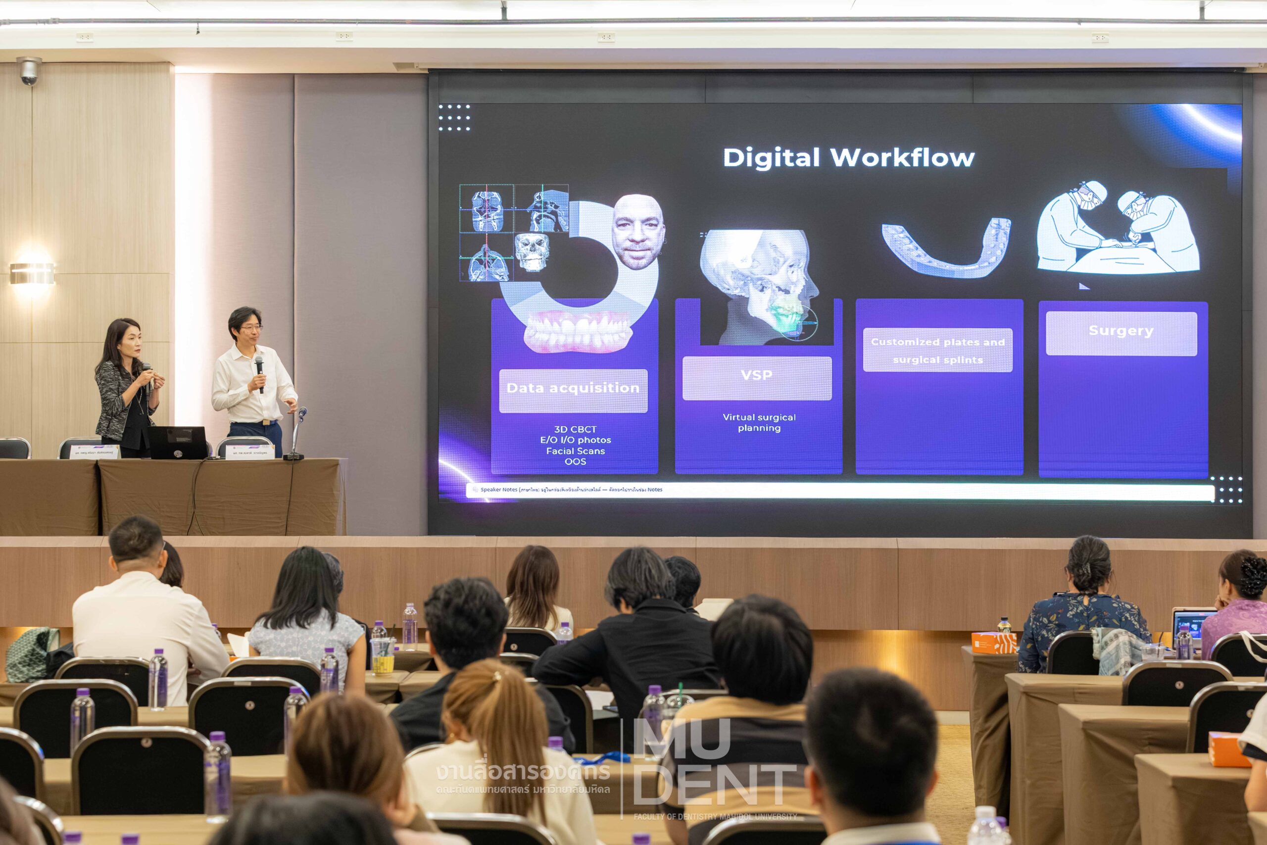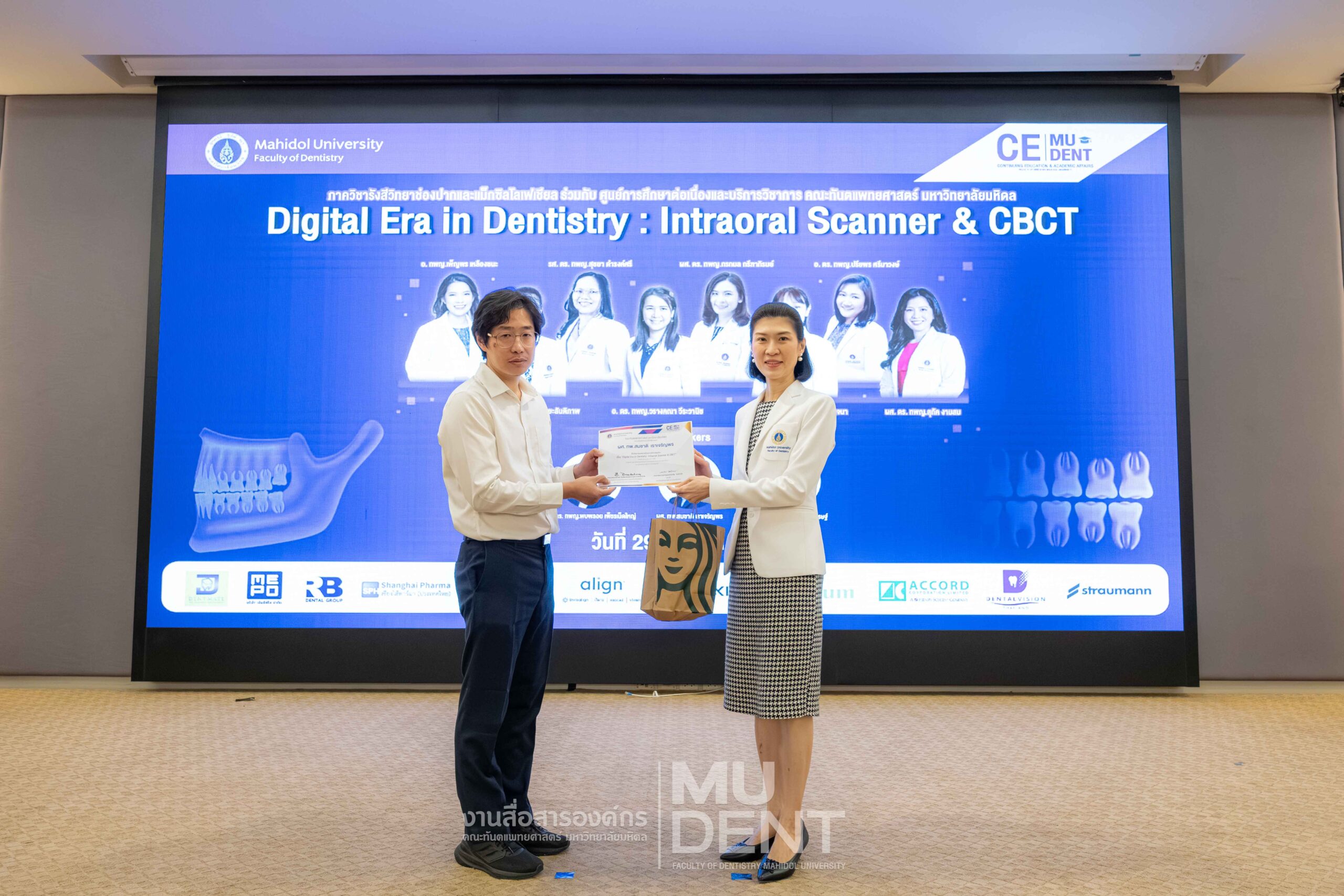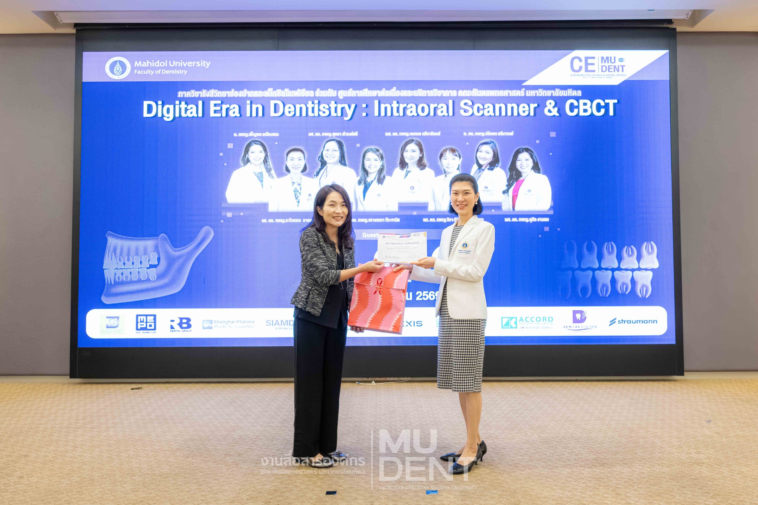 On April 29, 2026, Department of Oral and Maxillofacial Radiology, in collaboration with The Continuing Dental Education Center and Academic Affairs section, Faculty of Dentistry, Mahidol University (DTMU), organized an academic event titled “Digital Era in Dentistry: Intraoral Scanner & CBCT.” The event was held at the Debaratana Auditorium, 4th Floor, 50th Anniversary of H.R.H. Princess Maha Chakri Sirindhorn Building, aiming to promote learning and enhance digital technology skills in modern dental practices.