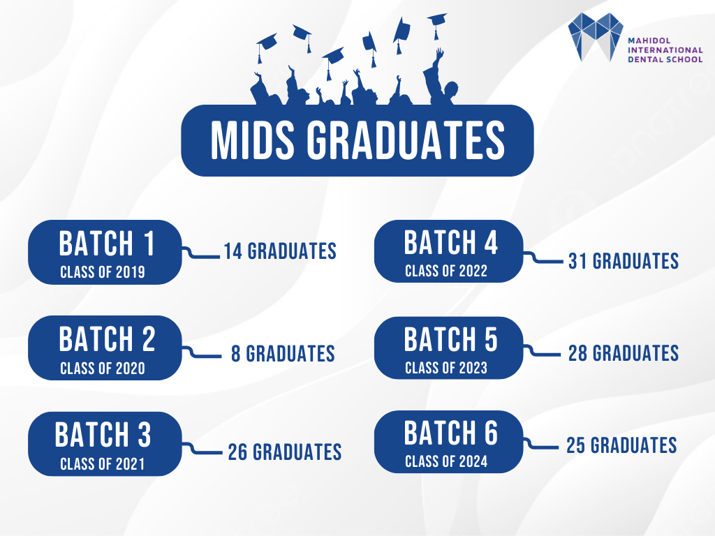 Remarks: The Doctor of Dental Surgery Program (International Program) of Mahidol International Dental School is a six-year program. Each academic year consists of two semesters.