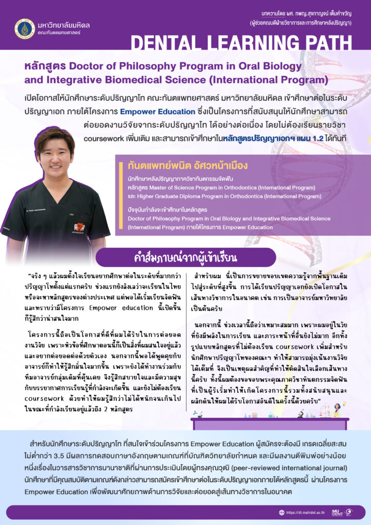 นักศึกษาปัจจุบัน (ทันตแพทยศาสตรบัณฑิต หลักสูตรนานาชาติ)