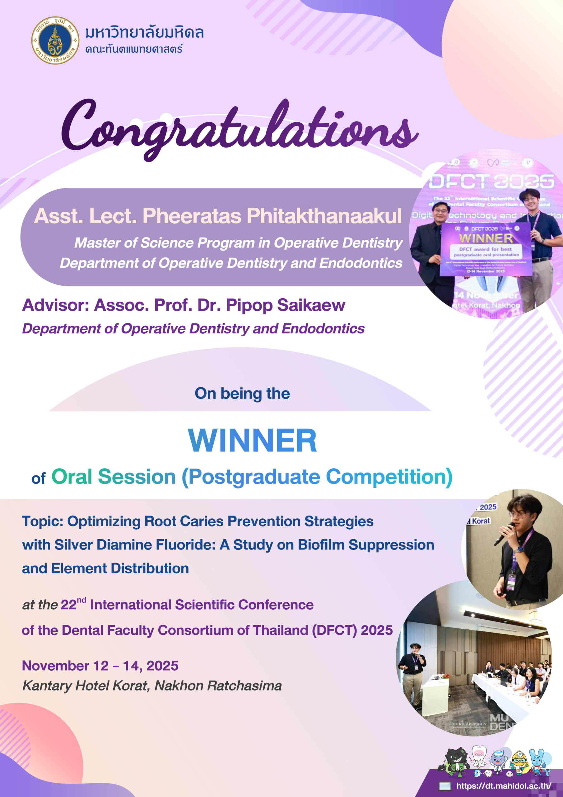 at the 22ⁿᵈ International Scientific Conference of the Dental Faculty Consortium of Thailand (DFCT) 2025