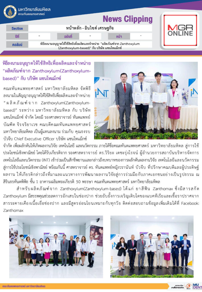 ข่าวประชาสัมพันธ์จาก : คณะทันตแพทยศาสตร์ มหาวิทยาลัยมหิดล