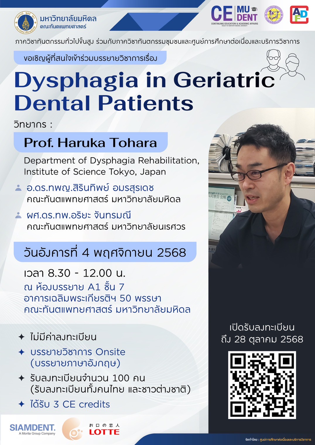 และ ศูนย์การศึกษาต่อเนื่องและบริการวิชาการ คณะทันตแพทยศาสตร์ มหาวิทยาลัยมหิดล