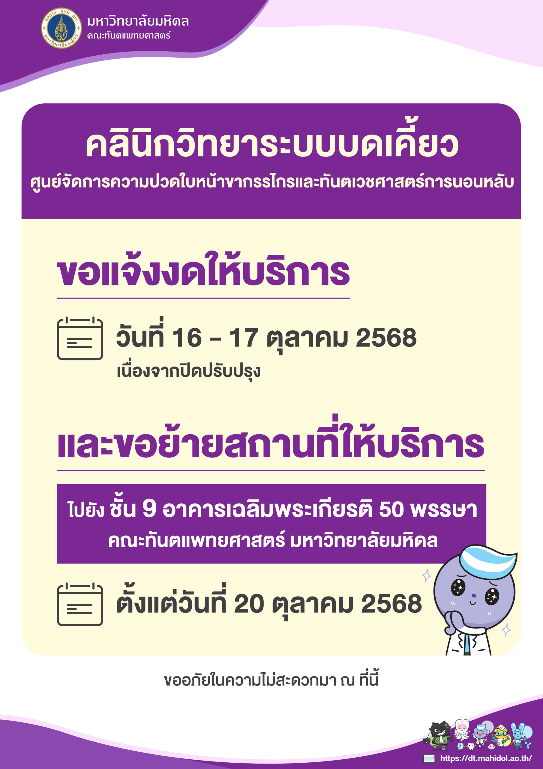 ข่าวประชาสัมพันธ์จาก : คลินิกวิทยาระบบบดเคี้ยว