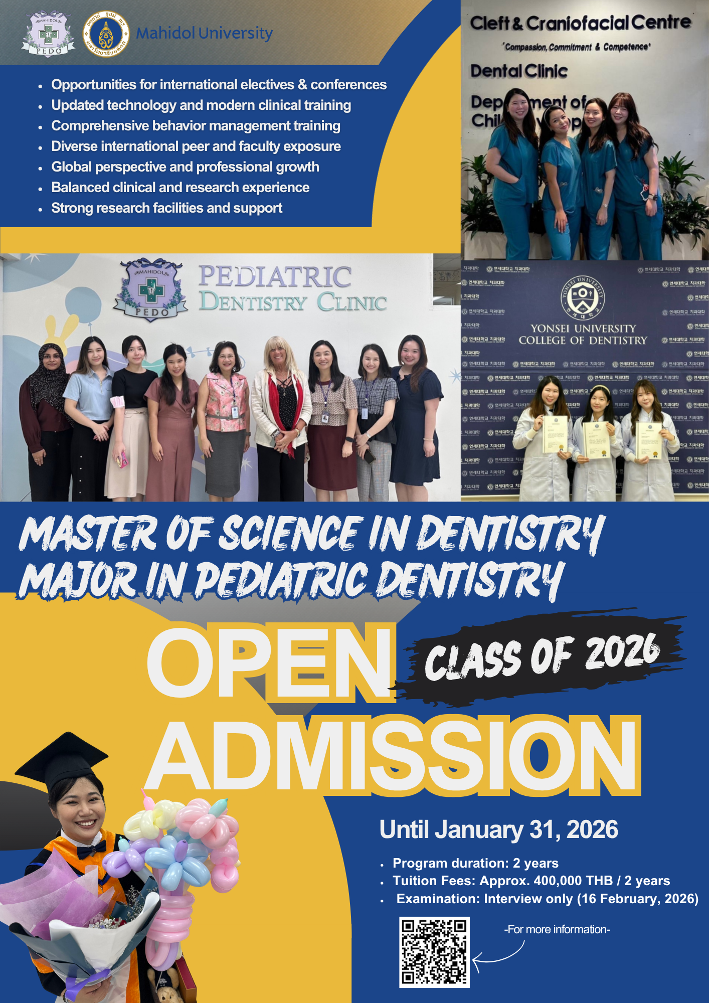 OPEN ADMISSION MASTER OF SCIENCE IN DENTISTRY MAJOR IN PEDIATRIC DENTISTRY CLASS OF 2026 Until January 31, 2026