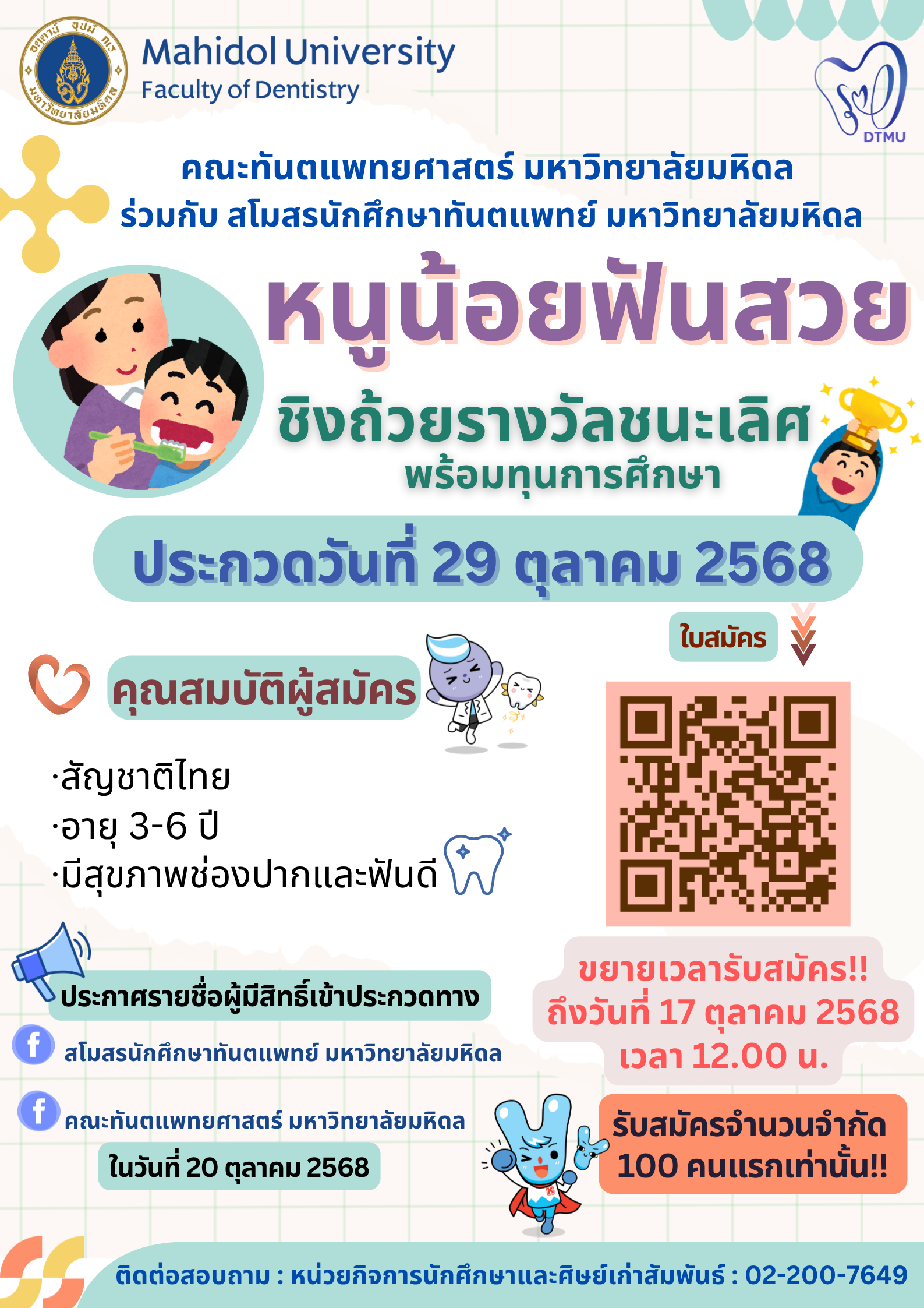 ร่วมกับ สโมสรนักศึกษาทันตแพทย์ มหาวิทยาลัยมหิดล