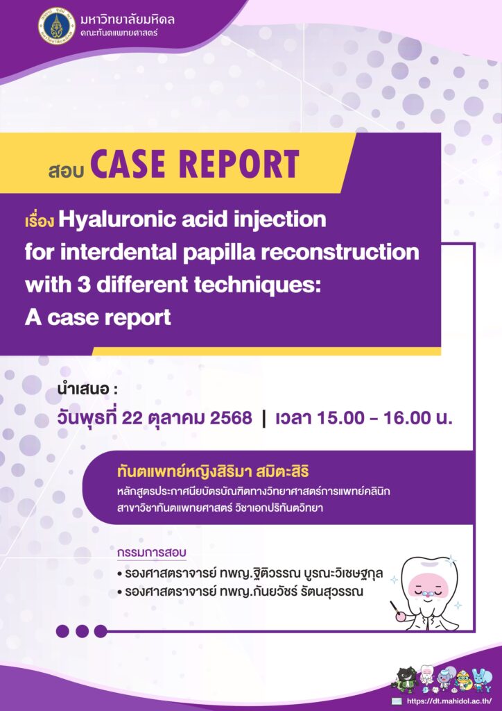 ข่าวประชาสัมพันธ์จาก : ภาควิชาเวชศาสตร์ช่องปากและปริทันตวิทยา