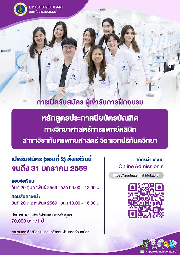 การเปิดรับสมัคร ผู้เข้ารับการฝึกอบรม หลักสูตรประกาศนียบัตรบัณฑิต ทางวิทยาศาสตร์การแพทย์คลินิก สาขาวิชาทันตแพทยศาสตร์ วิชาเอกปริทันตวิทยา