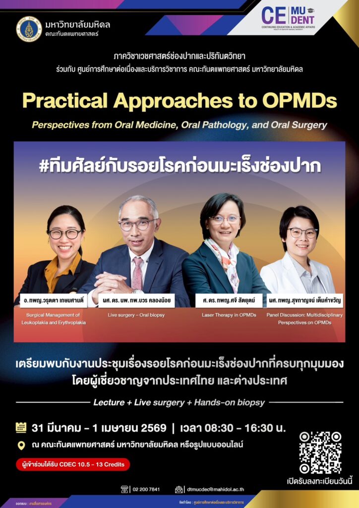 ร่วมกับ ศูนย์การศึกษาต่อเนื่องและบริการวิชาการ คณะทันตแพทยศาสตร์ มหาวิทยาลัยมหิดล