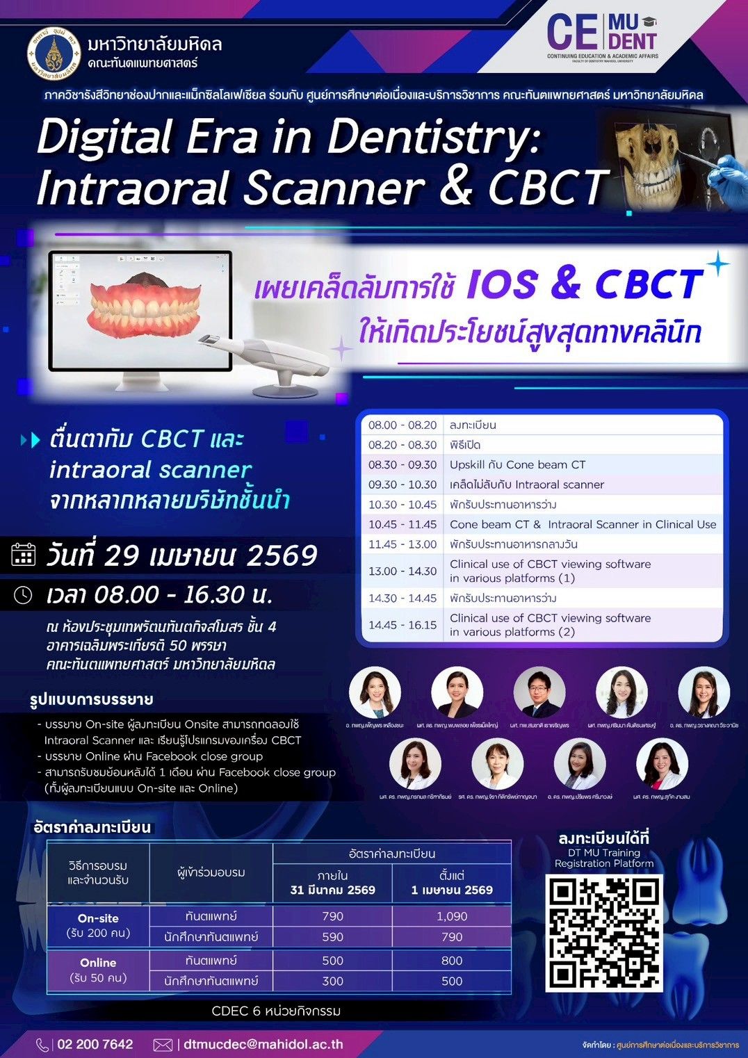 ขอเชิญร่วมรับฟัง แลกเปลี่ยนประสบการณ์ เรียนรู้โปรแกรมของเครื่อง CBCT และทดลองใช้ Intraoral Scanner
